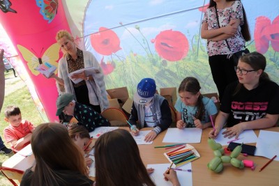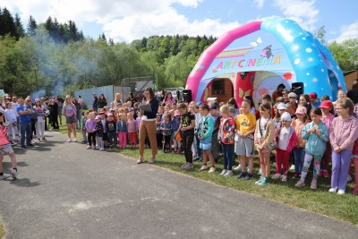 Boisko sportowe w Starej Wsi przemienił się w fantastyczną krainę zabaw. Dużym zainteresowaniem wśród najmłodszych cieszyły się pokazy prowadzone przez animatorów zabaw (bańki mydlane, baloniki), a wśród starszych wychowanków – przeciąganie liny i wiele innych atrakcjii.