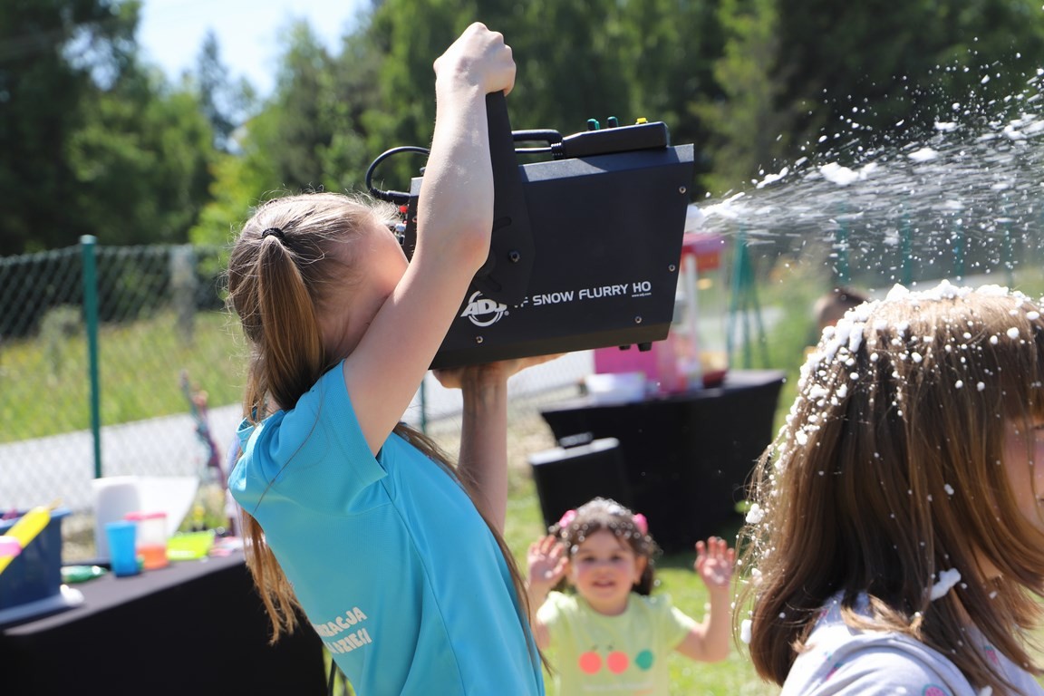 Wśród przewidzianych rozrywek nie zabrakło oczywiście tych najbardziej uwielbianych przez najmłodszych tj. dmuchanych zjeżdżalni, oraz zabaw z animatorami.Dzień dziecka,dobra zabawa udzieliła się nie tylko najmłodszym również rodzicom jak i nauczycielom.