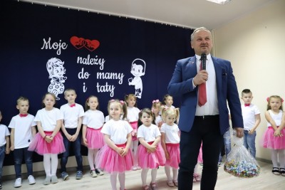 Uroczystość prowadziła Dyrektor Niepublicznej Szkoły Podstawowej w Starym Rybiu Lucyna Szołdrowska-Bieda zapowiadając występy dzieci z okazju dnia matki i ojca, które miały okazję zaprezentować się przed zaproszonymi władzami jak i rodzicami.