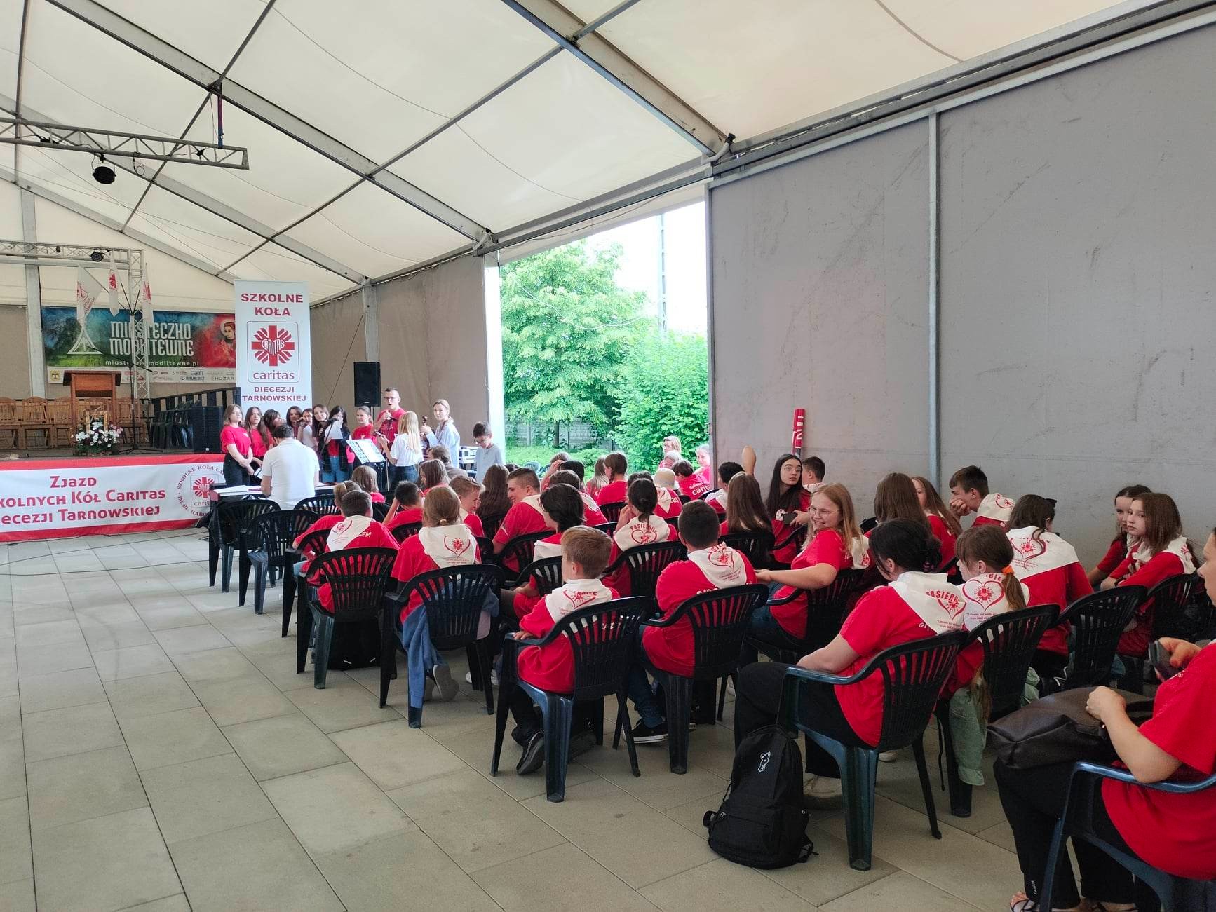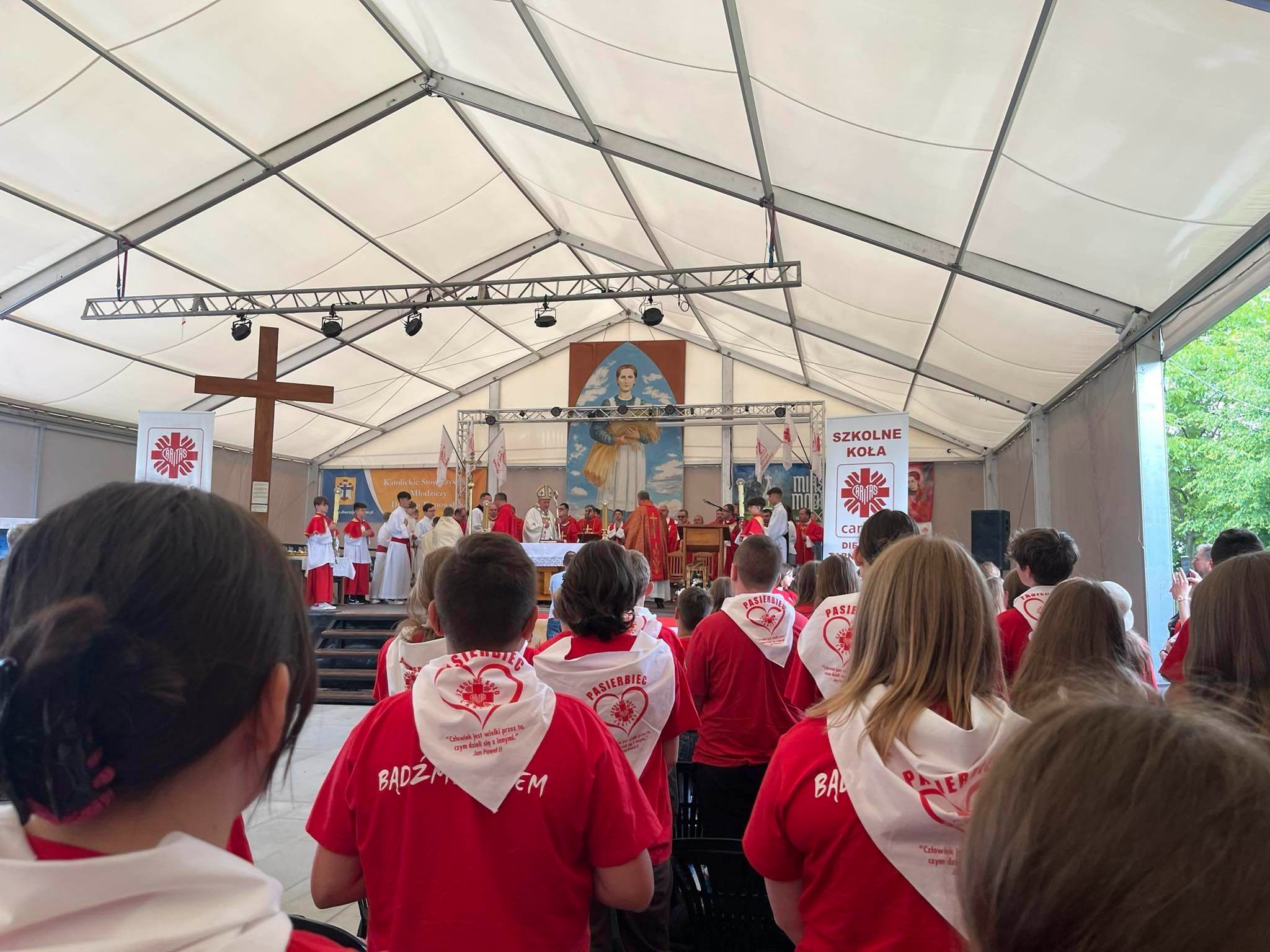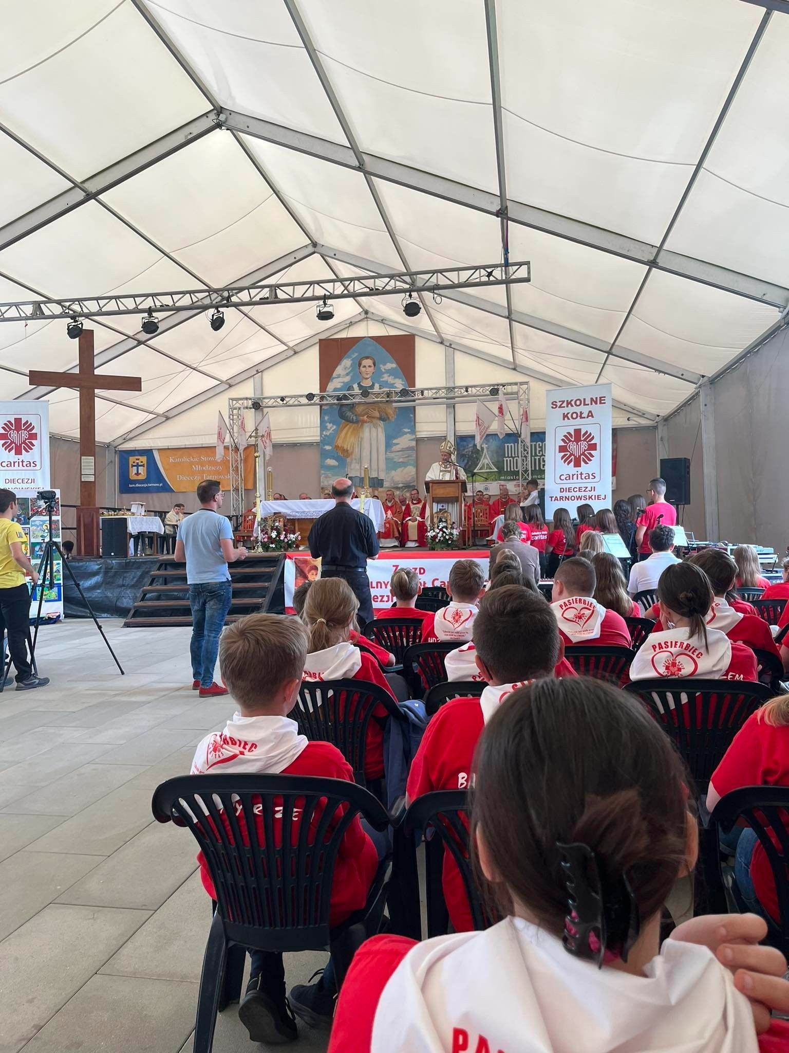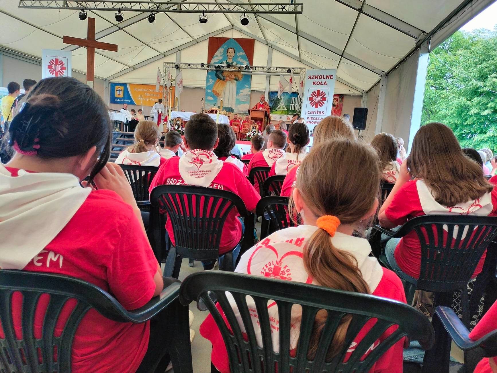 6 czerwca 2023r. Szkolne Koło Caritas im. Świętego Jana Pawła II działające przy Szkole Podstawowej w Pasierbcu wzięło udział w XV Zjeździe Szkolnych Kół Caritas, który w tym roku odbył się w Wał Rudzie i Zabawie.