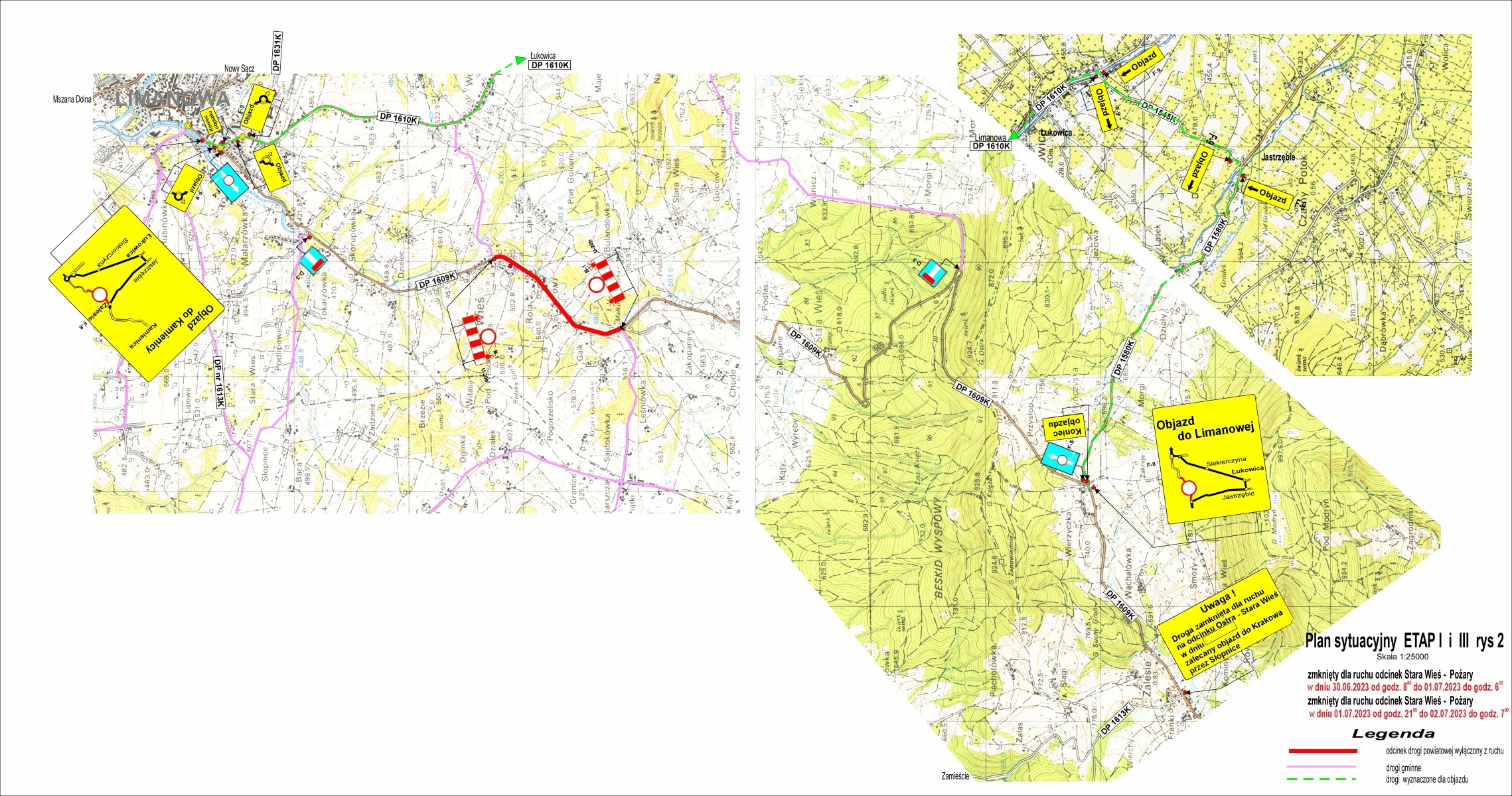 Droga zostanie zamknięta na odcinku Limanowa skrzyżowanie drogi „Limanowa-Kamienica” – „Stara Wieś-Stara Wieś Wola” do na skrzyżowania dróg K1609 Limanowa-Kamienica z K1610 Wierzyczka-Jastrzębie.