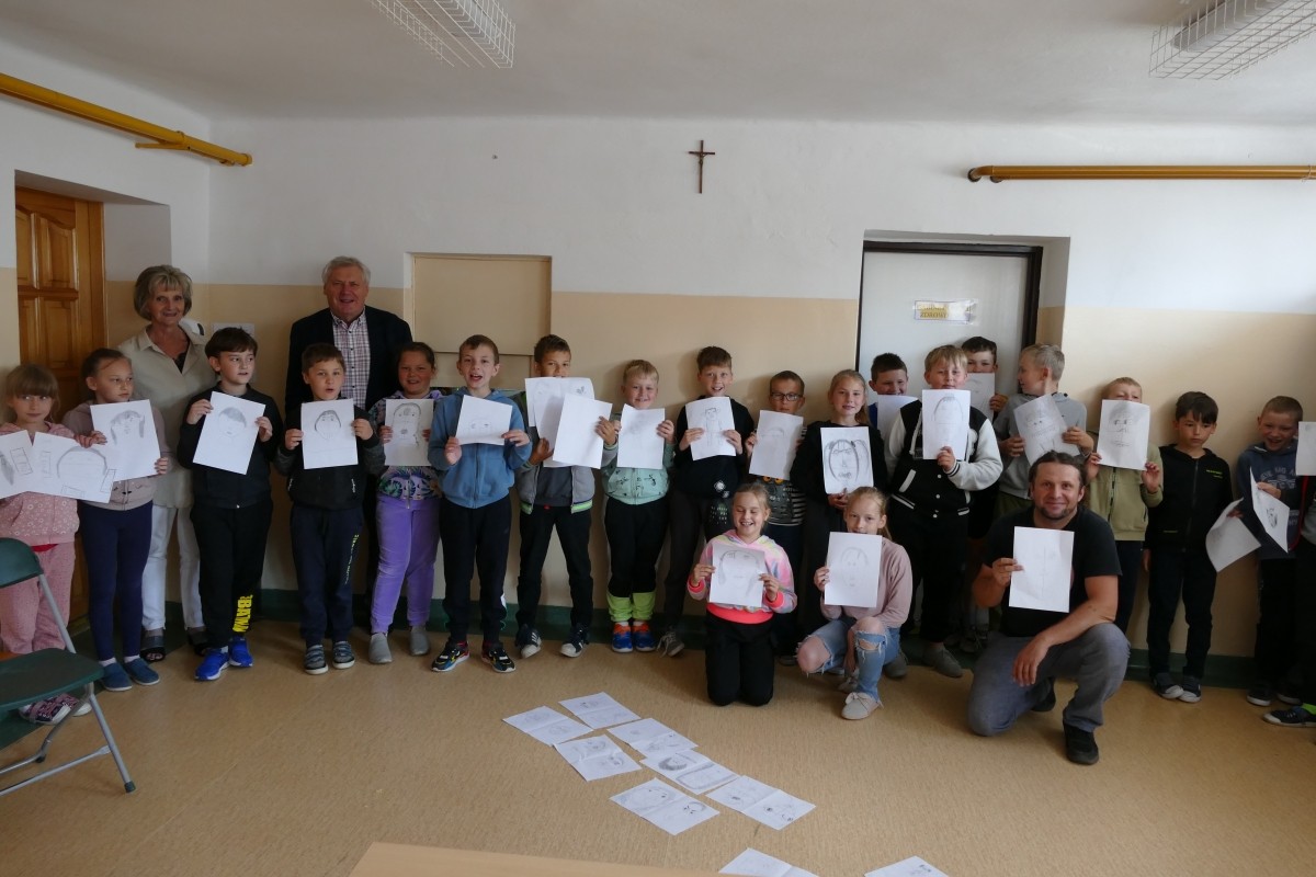 Szymon Teluk. W zajęciach udział wzięły dzieci i młodzież ze szkół podstawowych ze Starej Wsi, Kaniny, Siekierczyny, Męciny, Pisarzowej, Rupniowa i Nowego Rybia.