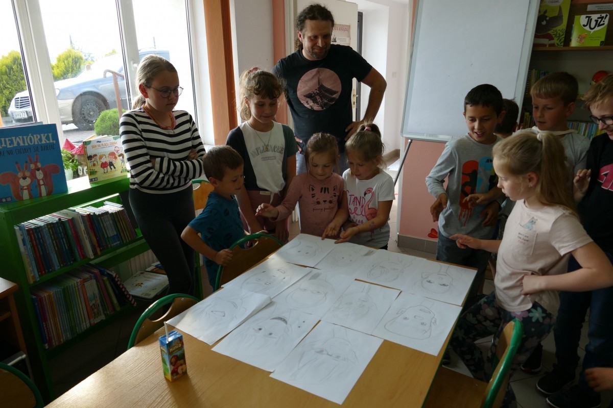 15-16 czerwca odbyły się w Gminnej Bibliotece Publicznej i wszystkich jej Filiach warsztaty rysowania karykatury, które poprowadził ceniony w kraju rysownik
