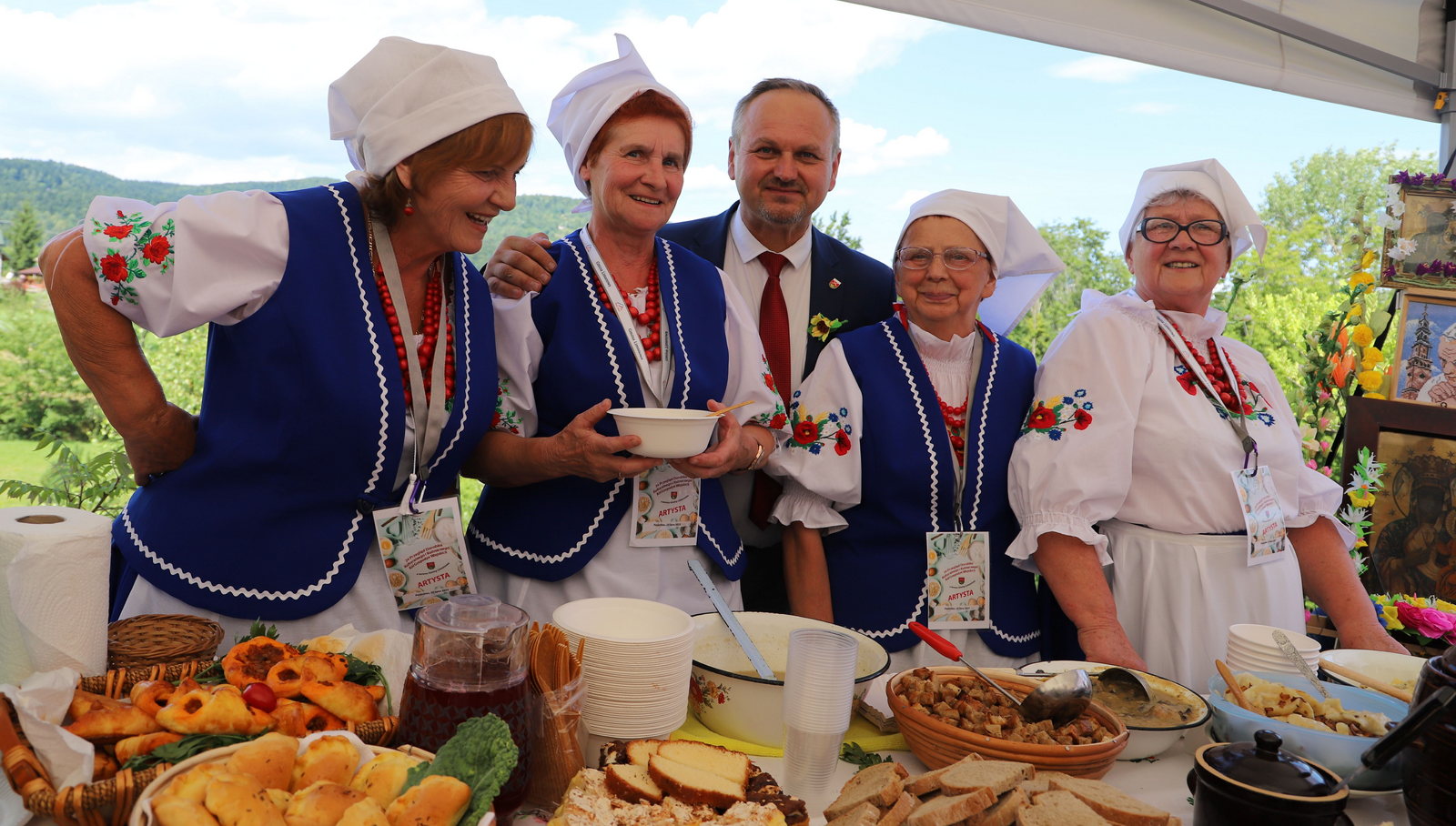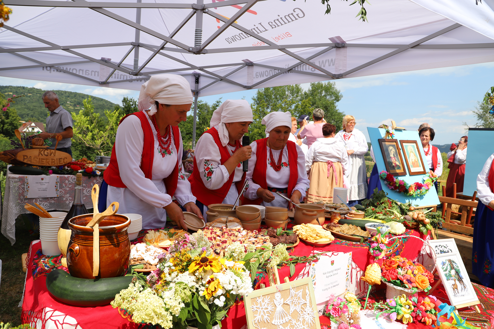 W ramach Przeglądu, aż 10 Kół Gospodyń Wiejskich z terenu gminy Limanowa zaprezentowało swój dorobek artystyczny oraz serwowało potrawy kuchni regionalnej. Niedzielna uroczystość rozpoczęła się konkursem potraw regionalnych prezentowanych i wydawanych przez gospodynie biorące udział w konkursie. Na pięknie ozdobionych stoiskach degustować można było m.in. takich potraw konkursowych jak: Gołąbki z kaszy gryczanej z leśnymi grzybami okraszone słoninką, źimnioki z kwaśnom mlykiom, pierogi z bobem, kluski kudłote na mlyku, kiszony żur ze skwarkami, kasza z śliwkami, zupa kminkowa, łazanki z boczkiem i kapustą, kapusta z bobem i ze śmietaną, żur na kwaśnicy.