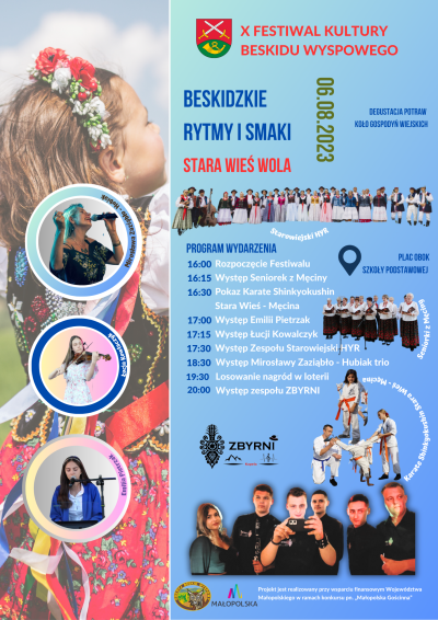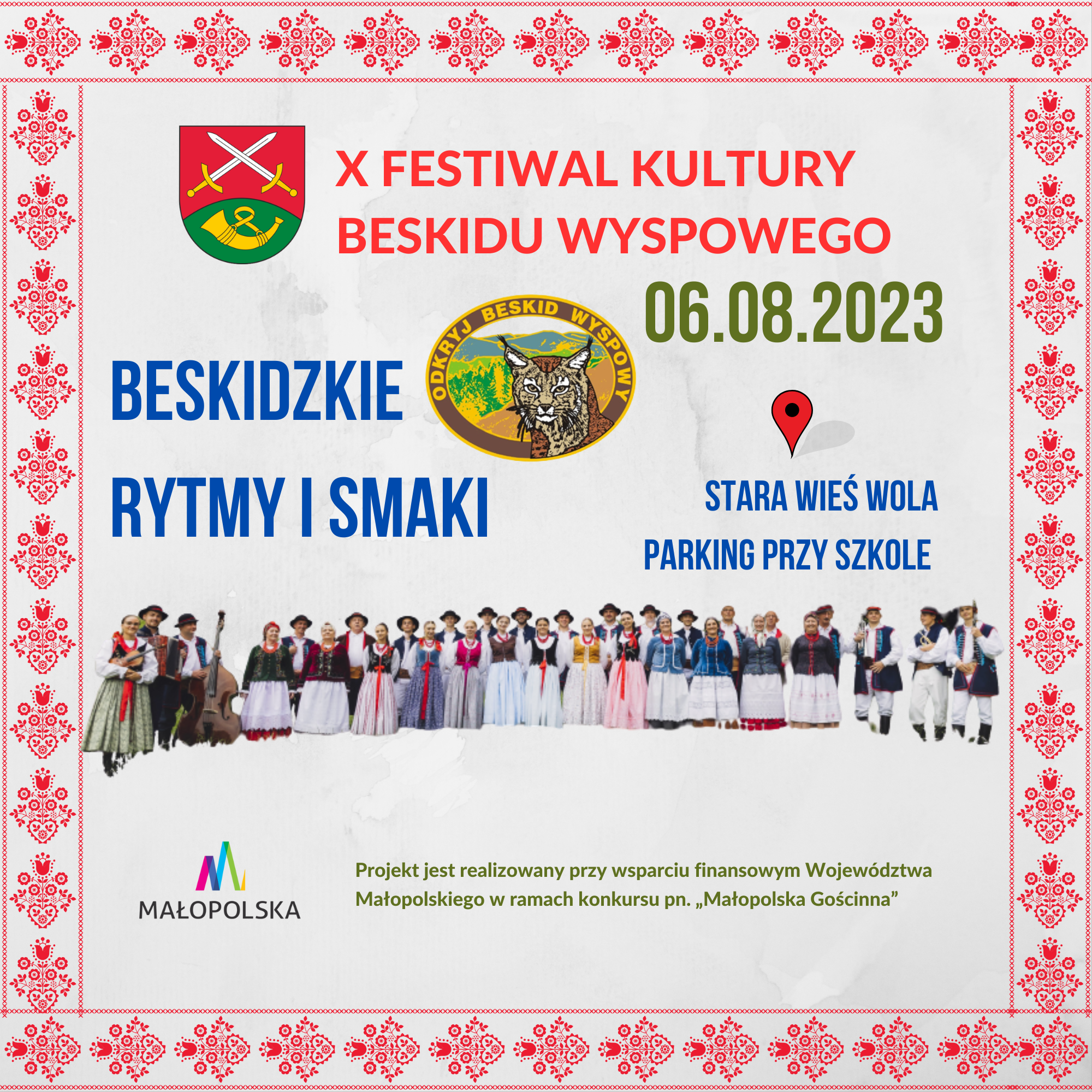 Już 6 sierpnia br. X Festiwal Kultury Beskidu Wyspowego „Beskidzkie Rytmy i Smaki” zawita ponownie do Starej Wsi Woli. Miejscem imprezy będzie parking obok Szkoły Podstawowej nr 2.