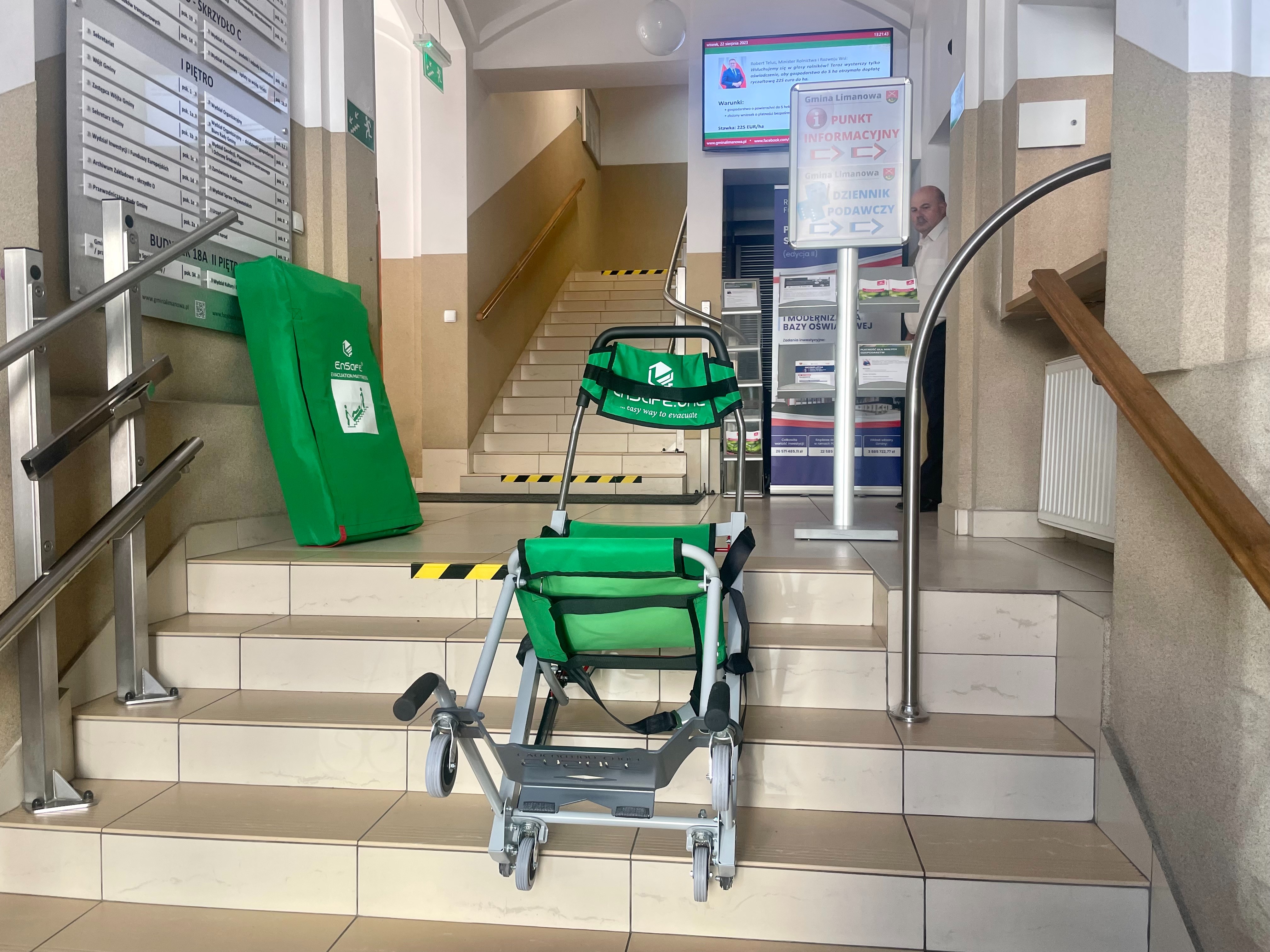 - w zakresie dostępności komunikacyjno-informacyjnej: dostawa, montaż i kalibracja systemu indukcyjnego: pętla indukcyjna przenośna (7 szt.) oraz pętla indukcyjna stanowiskowa (1 szt.), zakup sprzętu do ewakuacji oraz wykonanie planu tyflograficznego budynku UG Limanowa oraz poprawa dostępności przestrzennej budynku UG Limanowa.