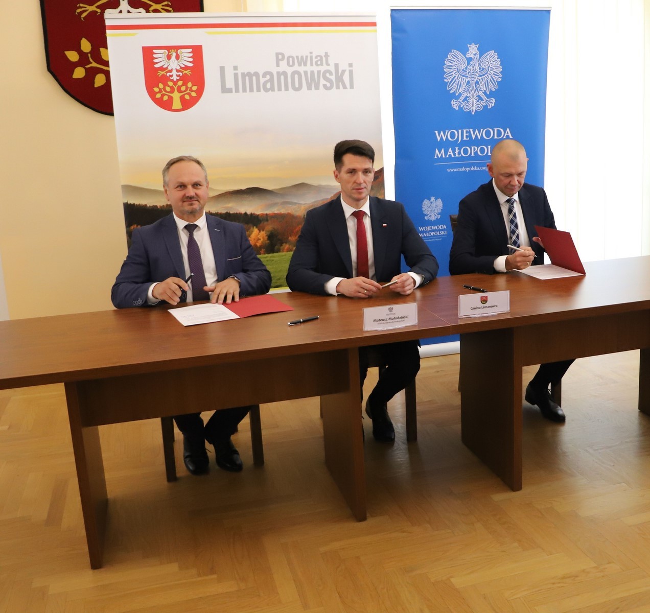 Uroczyste podpisanie umów z Wicewojewodą odbyło się w Sali Konferencyjnej Starostwa Powiatowego w Limanowej. W wydarzeniu wzięli udział: Wicemarszałek Ryszard Terlecki, Senator RP Jan Hamerski, Posłowie RP: Barbara Bartuś, Arkadiusz Mularczyk, Patryk Wicher oraz Włodarze Samorządów wraz ze skarbnikami.
