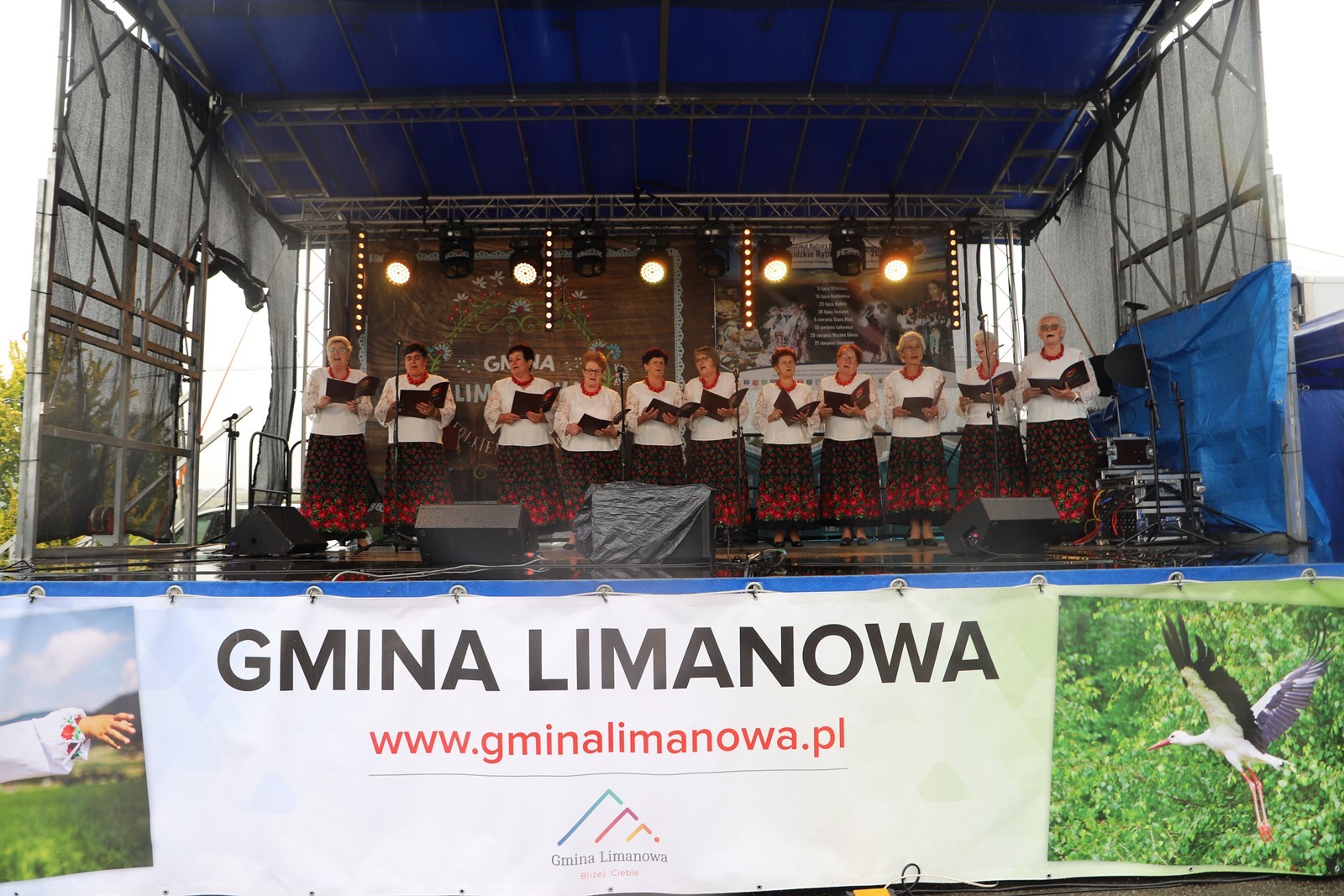 „STAROWIEJSKI HYR” z Starej Wsi. Ich żywiołowy śpiew, muzyka i taniec, podczas obszernego programu, niezwykle przypadł do gustu zgromadzonej publiczności, której nie przeszkadzał nawet deszcz.