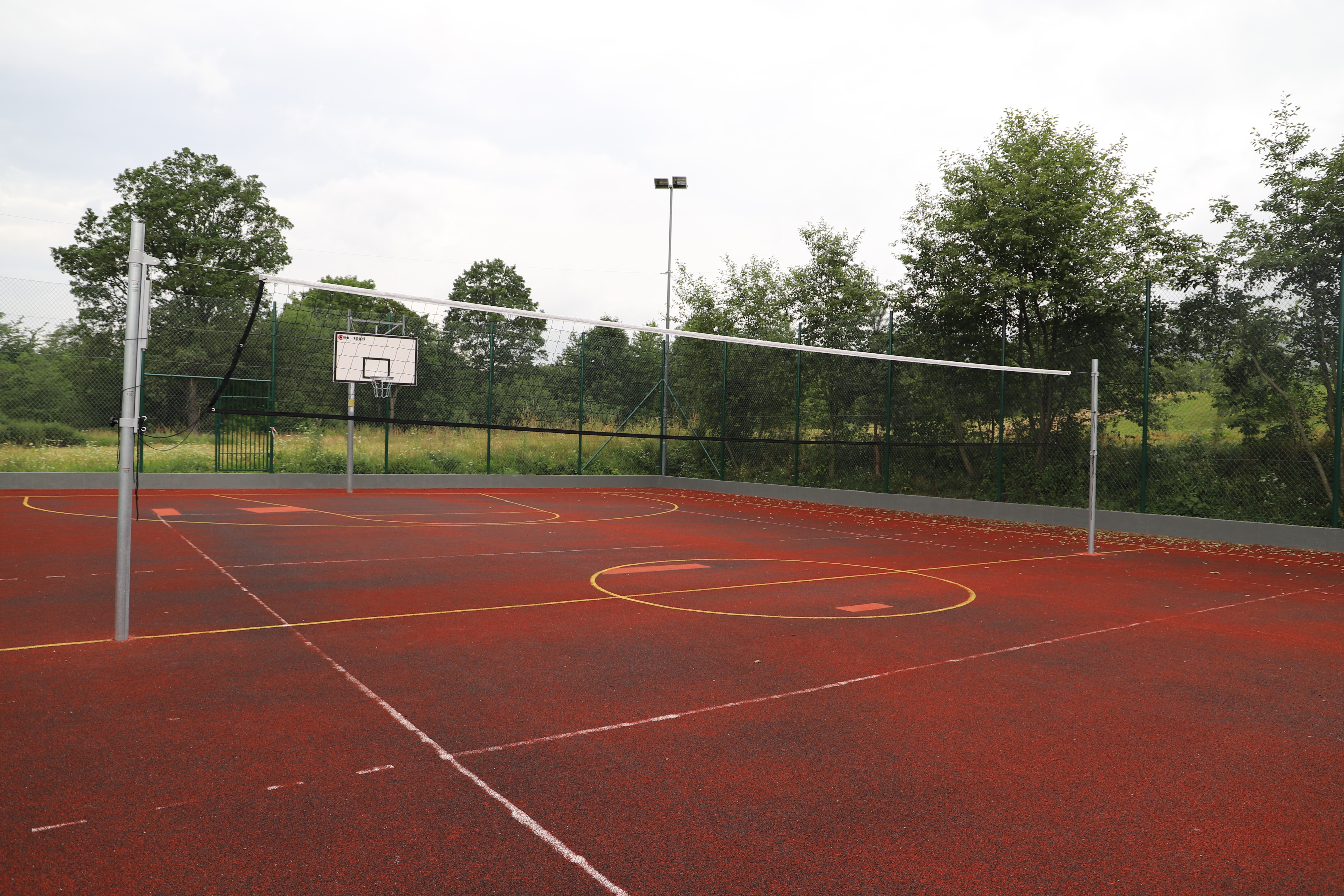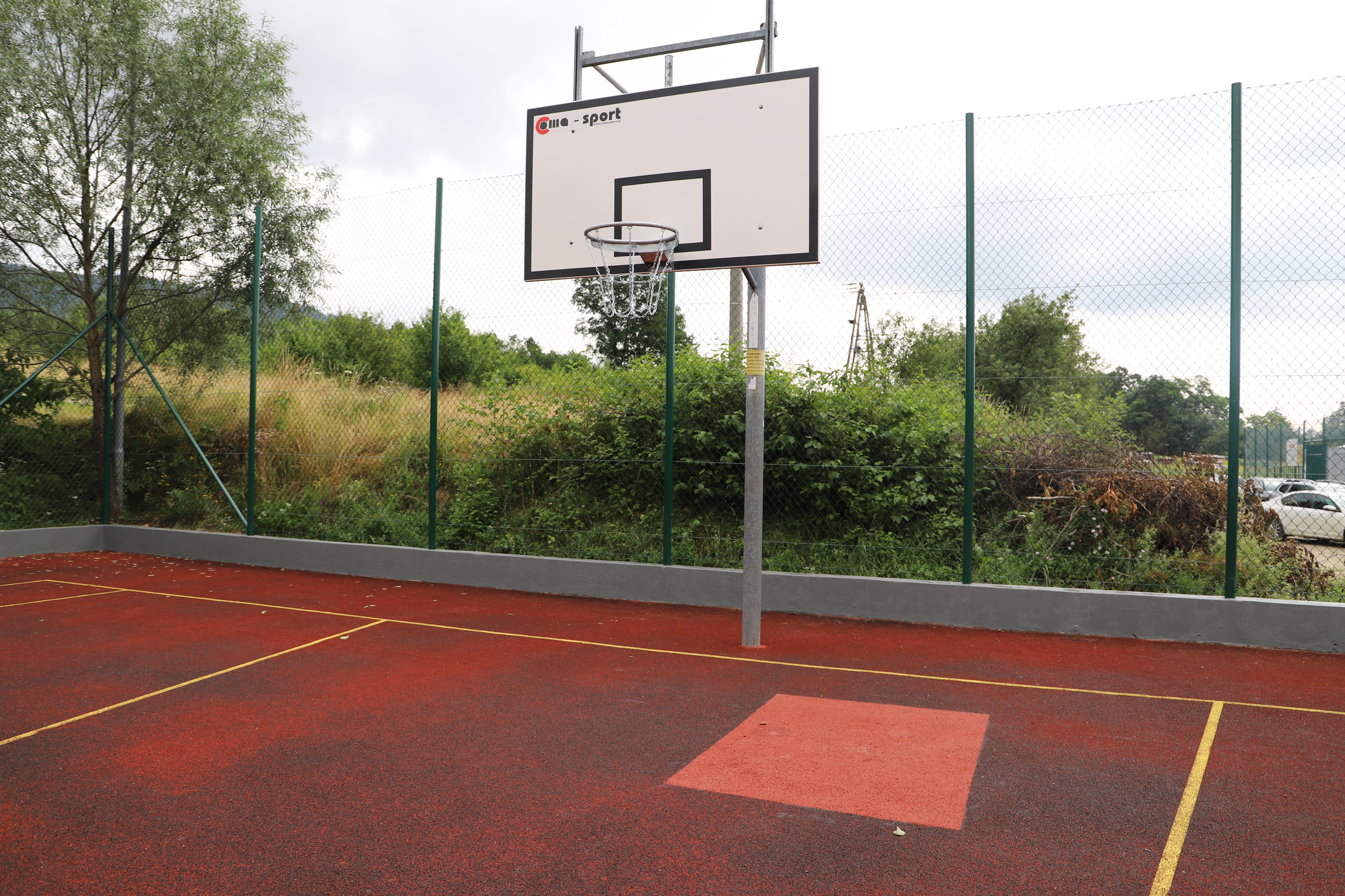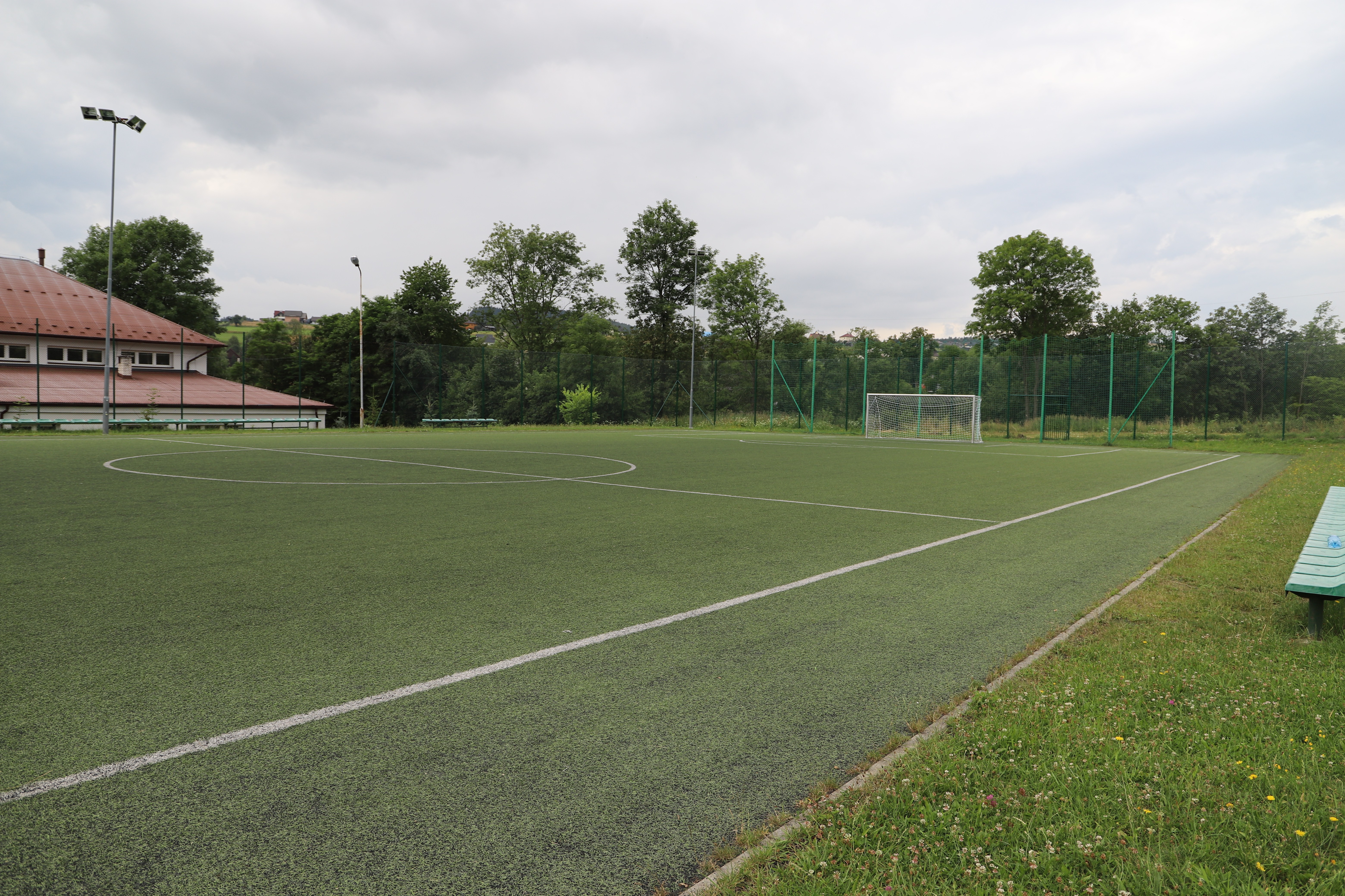 Zakres robót na Orliku w Męcinie obejmował m.in. : wymianę nawierzchni ze sztucznej trawy na boisku piłkarskim, wymianę sprzętu sportowego trwale mocowanego do podłoża, wymianę siatek piłkochwytów oraz konserwację elementów ogrodzenia.