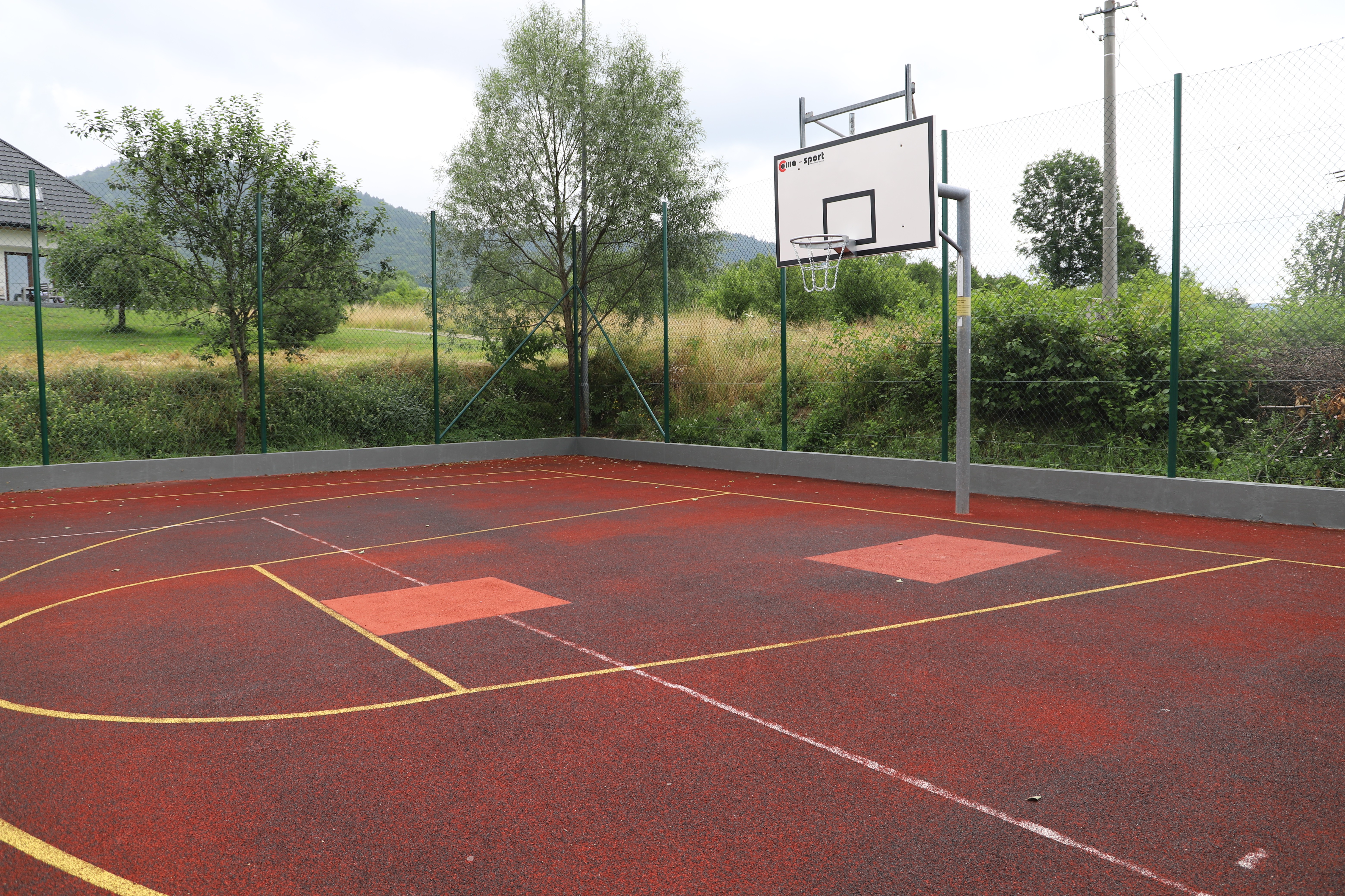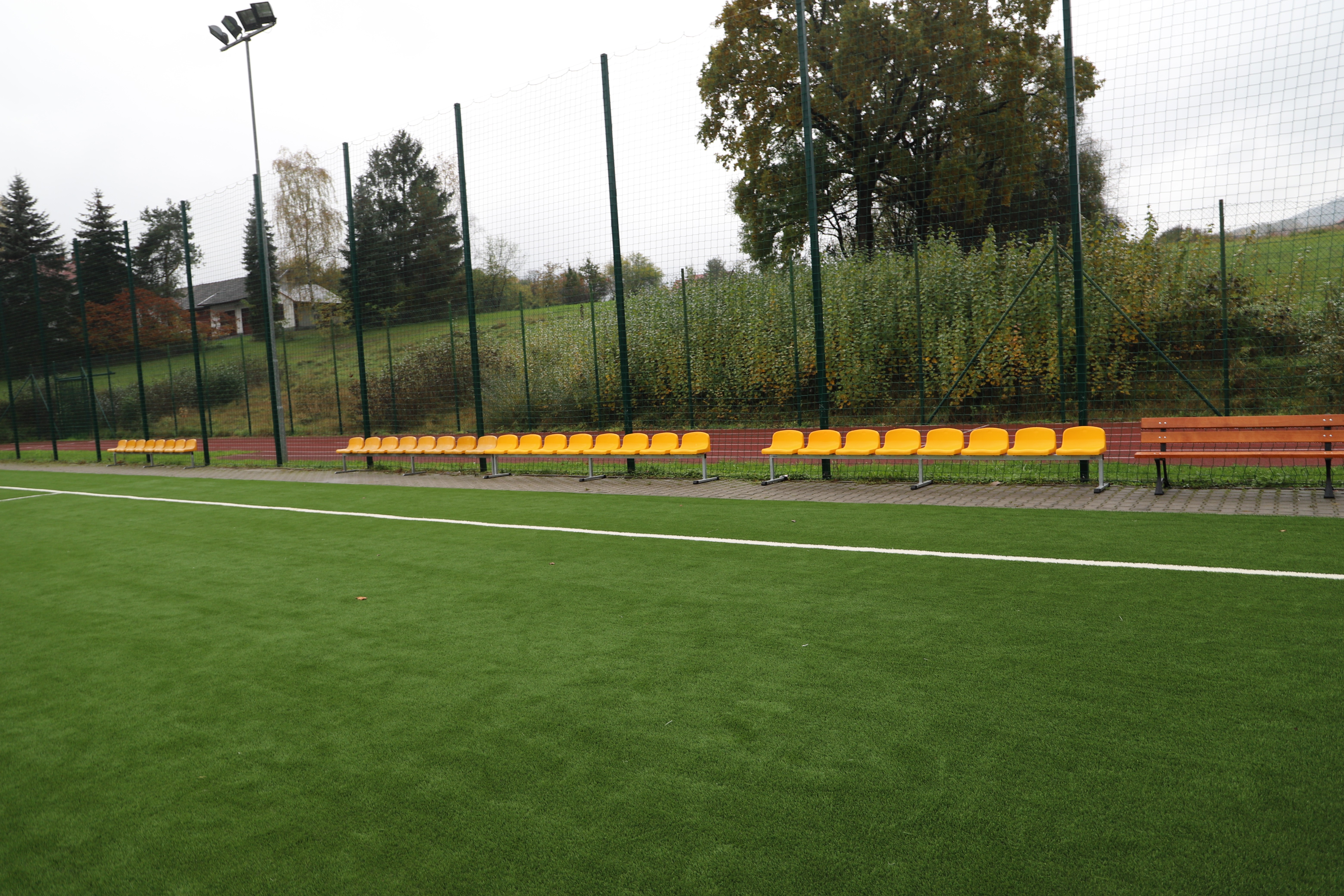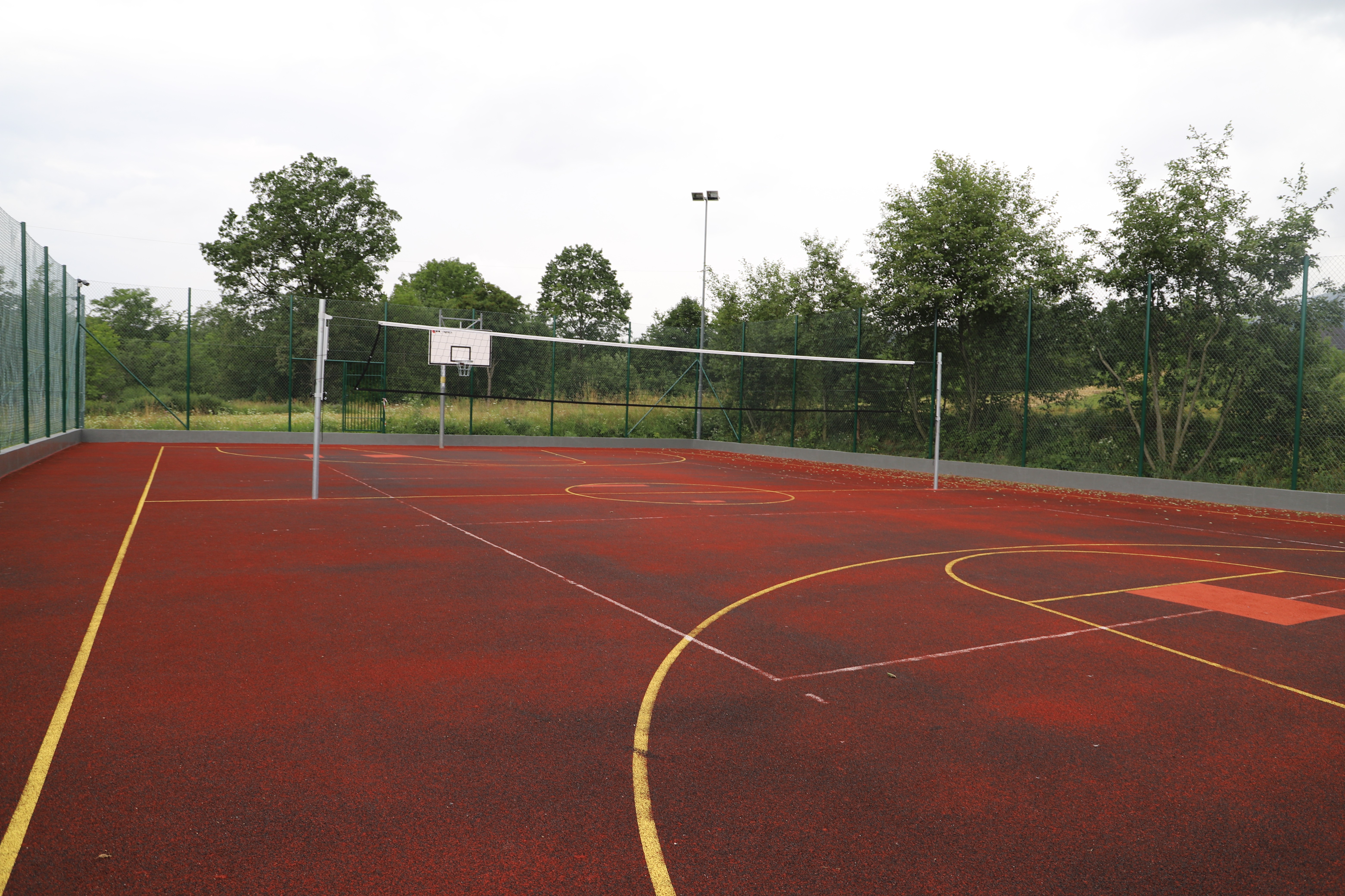 Zakres robót na Orliku w Męcinie obejmował m.in. : wymianę nawierzchni ze sztucznej trawy na boisku piłkarskim, wymianę sprzętu sportowego trwale mocowanego do podłoża, wymianę siatek piłkochwytów oraz konserwację elementów ogrodzenia.