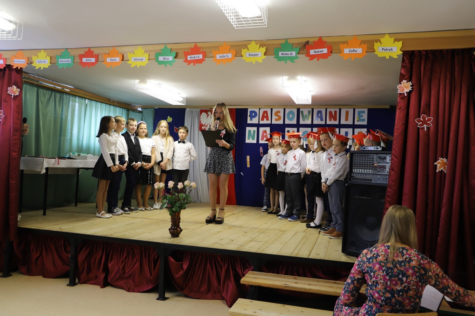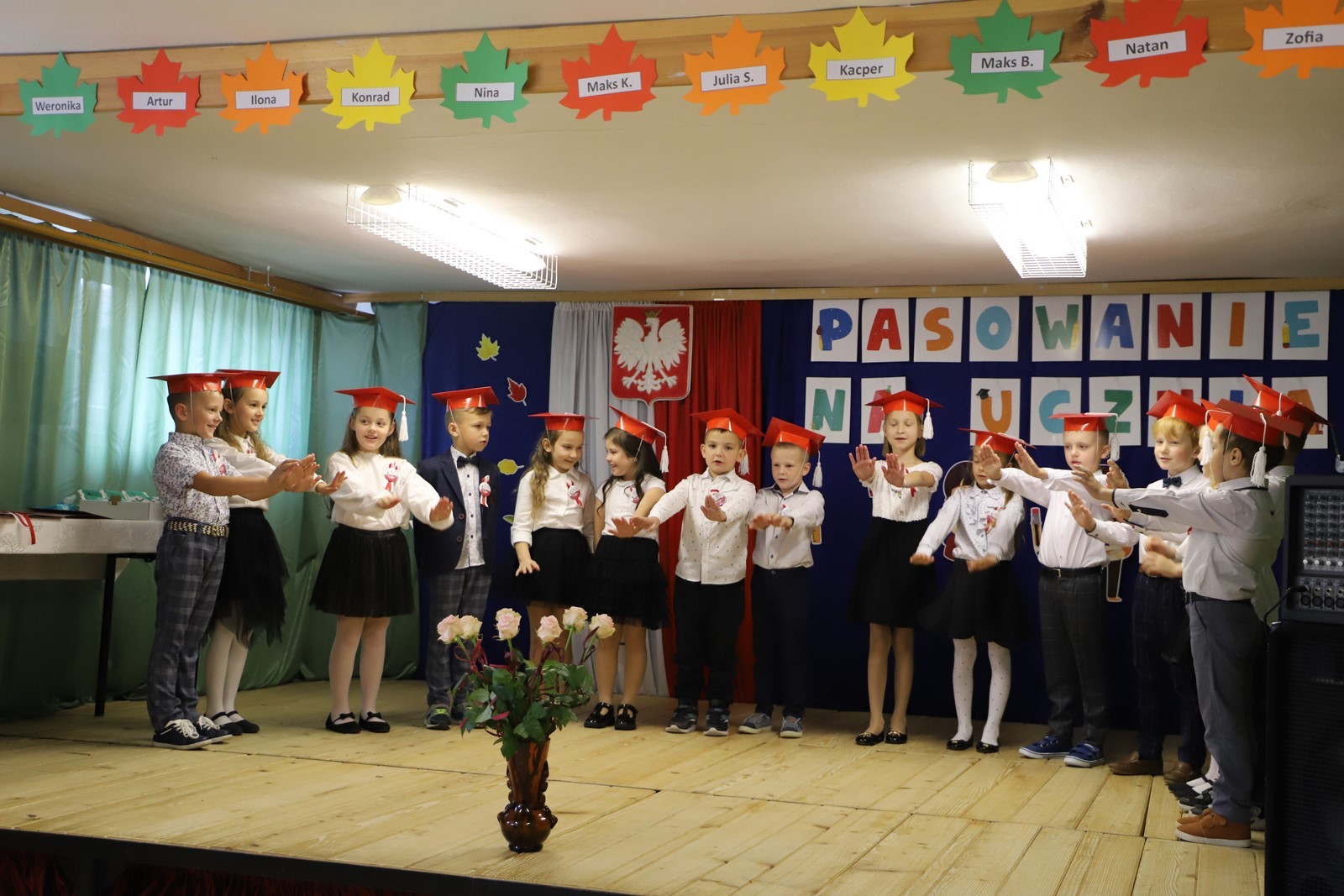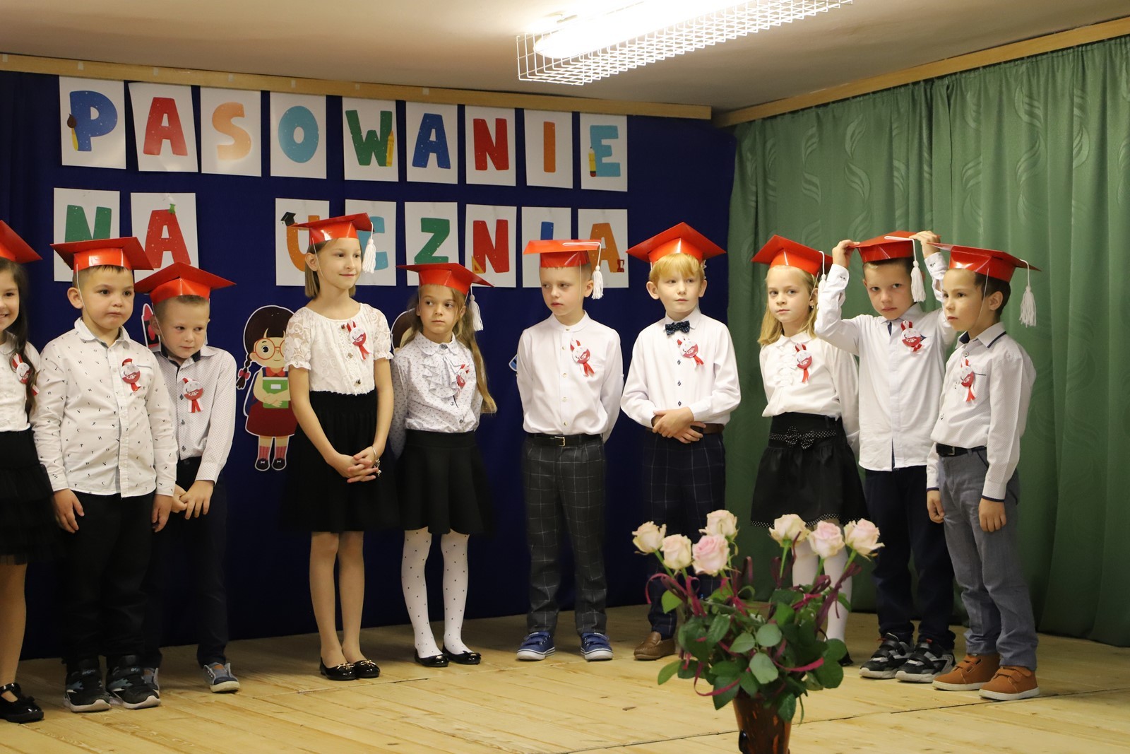 Gotowi, odświętnie ubrani i bardzo przejęci przystąpili do zaprezentowania swoich umiejętności. Po zakończonej prezentacji nastąpiło ślubowanie pierwszoklasistów, które wzbudziło wiele emocji. W niezwykle podniosłej atmosferze uczniowie klasy pierwszej ślubowali być dobrymi Polakami, godnie reprezentować swoją szkołę, swoim zachowaniem i nauką sprawiać radość rodzicom i nauczycielom, pomagać każdemu potrzebującemu pomocy.