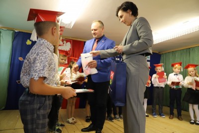 Na zakończenie dzieci otrzymały wiele podarunków od przedstawicieli Gminy Limanowa, Rodziców, Rady Rodziców, Dyrektora i Wychowawcy klasy.Uwieńczeniem uroczystości była wspólna fotografia i słodki poczęstunek przygotowany przez rodziców.