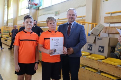 Wręczenie nagród oraz pucharów uczestnikom rozgrywek piłkarskich dokonała