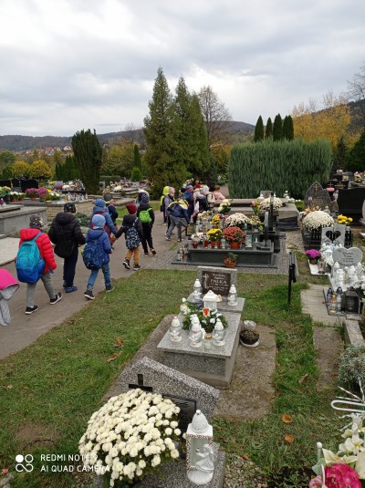 Święto Zmarłych, to czas, w którym odwiedzamy groby i wspominamy tych, którzy od nas odeszli. Kultywując polską tradycję, a tym samym realizując działania akcji „Szkoła pamięta”, 3 listopada, tuż po Święcie Zmarłych uczniowie klas II Szkoły Podstawowej w Mordarce wraz z  wychowawcami udali się na cmentarz wojenny w Limanowej, celem uczczenia pamięci poległych tam żołnierzy. Dzieci zabrały ze sobą znicze, które zapaliły na grobach żołnierzy i minutą ciszy uczciły ich pamięć. Poznały także historię związaną z odwiedzonym miejscem. Pobyt na cmentarzu zakończył się cichą modlitwą, refleksją i pytaniami uczniów. Była to niecodzienna lekcja historii, która pozostanie w pamięci uczniów.