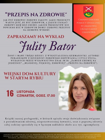 Zapraszamy do Męciny i Starego Rybia na wykład Julity Bator
