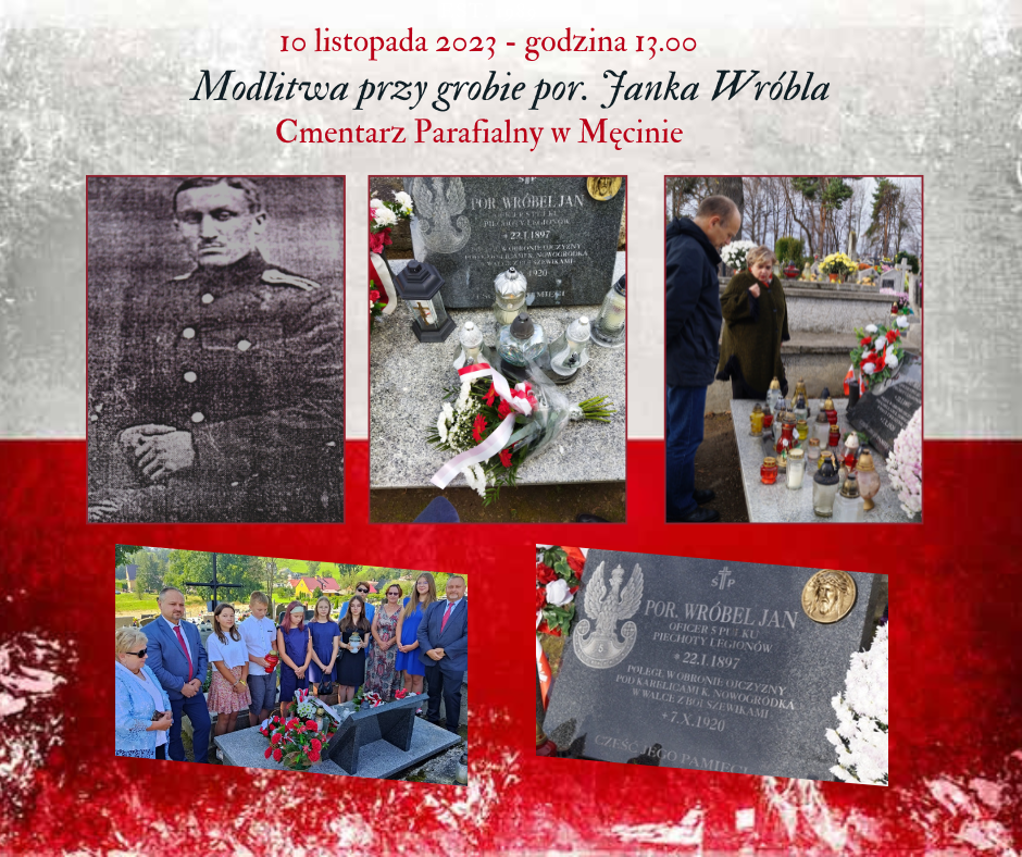 Serdecznie zapraszamy mieszkańców oraz wszystkich zainteresowanych do złożenia kwiatów oraz zniczy na grobie porucznika Janka Wróbla na cmentarzu parafialnym w Męcinie w piątek 10 listopada o godzinie 13.00