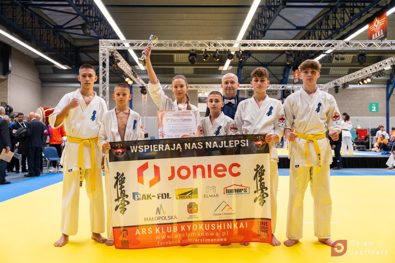 Szóstka młodych limanowskich wojowników zaprezentowała się w Holandii bardzo dobrze. Warto podkreślić, że kategorie wiekowe i wagowe, w których rywalizowali limanowscy karatecy były licznie obsadzone, a poziom rywalizacji sportowej był naprawdę wysoki. Aby wywalczyć miejsce w strefie medalowej, w zależności od kategorii zawodnicy musieli stoczyć 3-6 pojedynków. Dlatego fakt, że Nikola Kądziołka wywalczyła brązowy medal w kumite juniorek -50 kg, a jej trzech klubowych kolegów, po bardzo dobrych walkach w swoich kategoriach uplasowało się w ósemce najlepszych karateka świata należy uznać za naprawdę dobry wynik i duży sukces. Podopieczni shihan Arkadiusza Sukiennika (5 Dan) swoją postawą potwierdzili wysoki poziom umiejętności i przynależność do światowej czołówki młodych zawodników. Możemy być dumni z ich postawy i uzyskanych wyników sportowych podczas tegorocznych Mistrzostw Świata Karate Kyokushin oraz z optymizmem patrzeć w przyszłość. Gratulujemy i trzymamy kciuki za kolejne sukcesy!