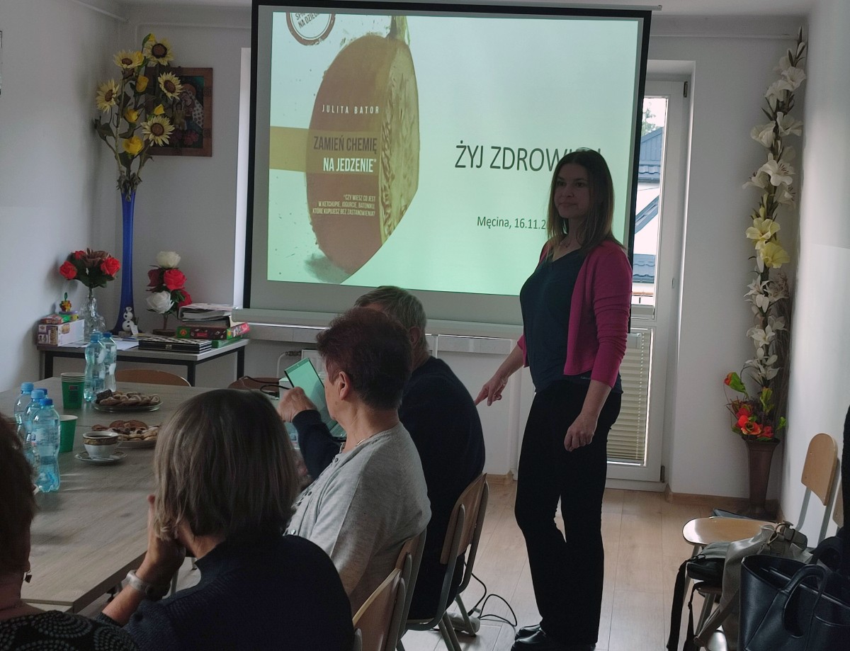 W czwartek, w dniu 16 listopada 2023 r., odbyły się wykłady Julity Bator, pn.: „Jak zamieniać chemię na jedzenie” (Świetlica Wiejska w Męcinie) oraz "Przepis na Zdrowie" (Wiejski Dom Kultury w Starym Rybiu).