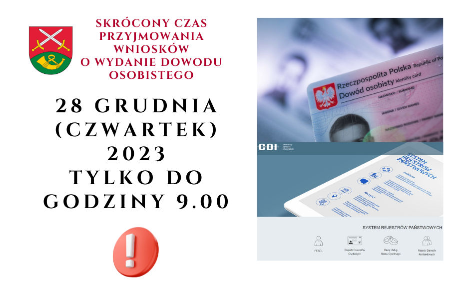 28 grudnia 2023 wnioski o wydanie dowodów osobistych przyjmowane do godziny 9.00!