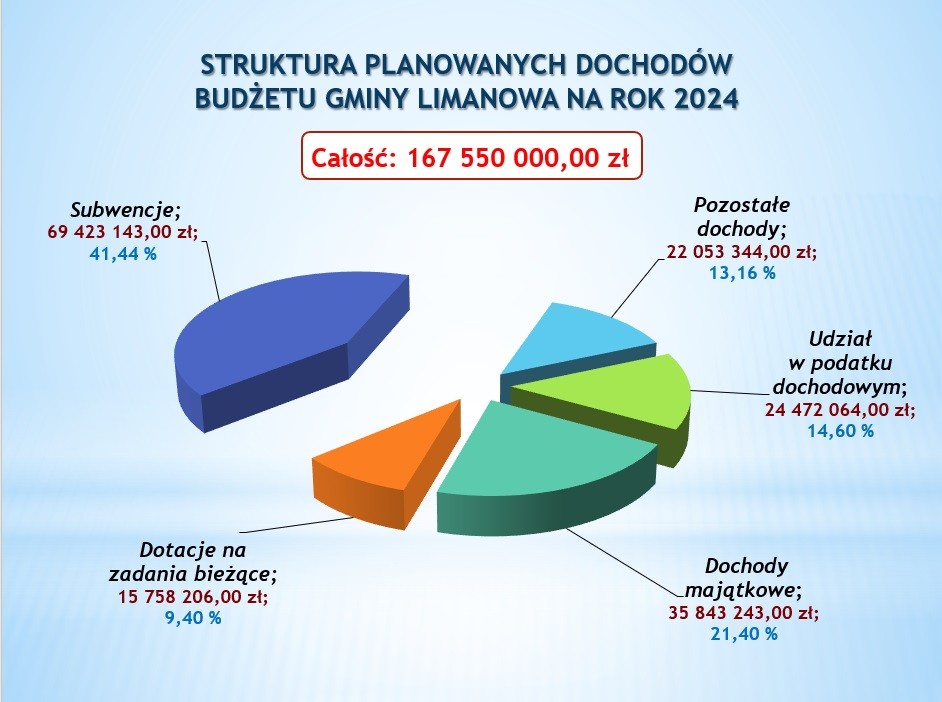 Poniżej budżet Gminy Limanowa przedstawiony graficznie.