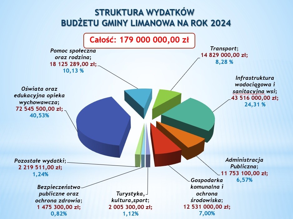 - na zadania oświatowe 12 175 800 zł (co daje 18,57%),