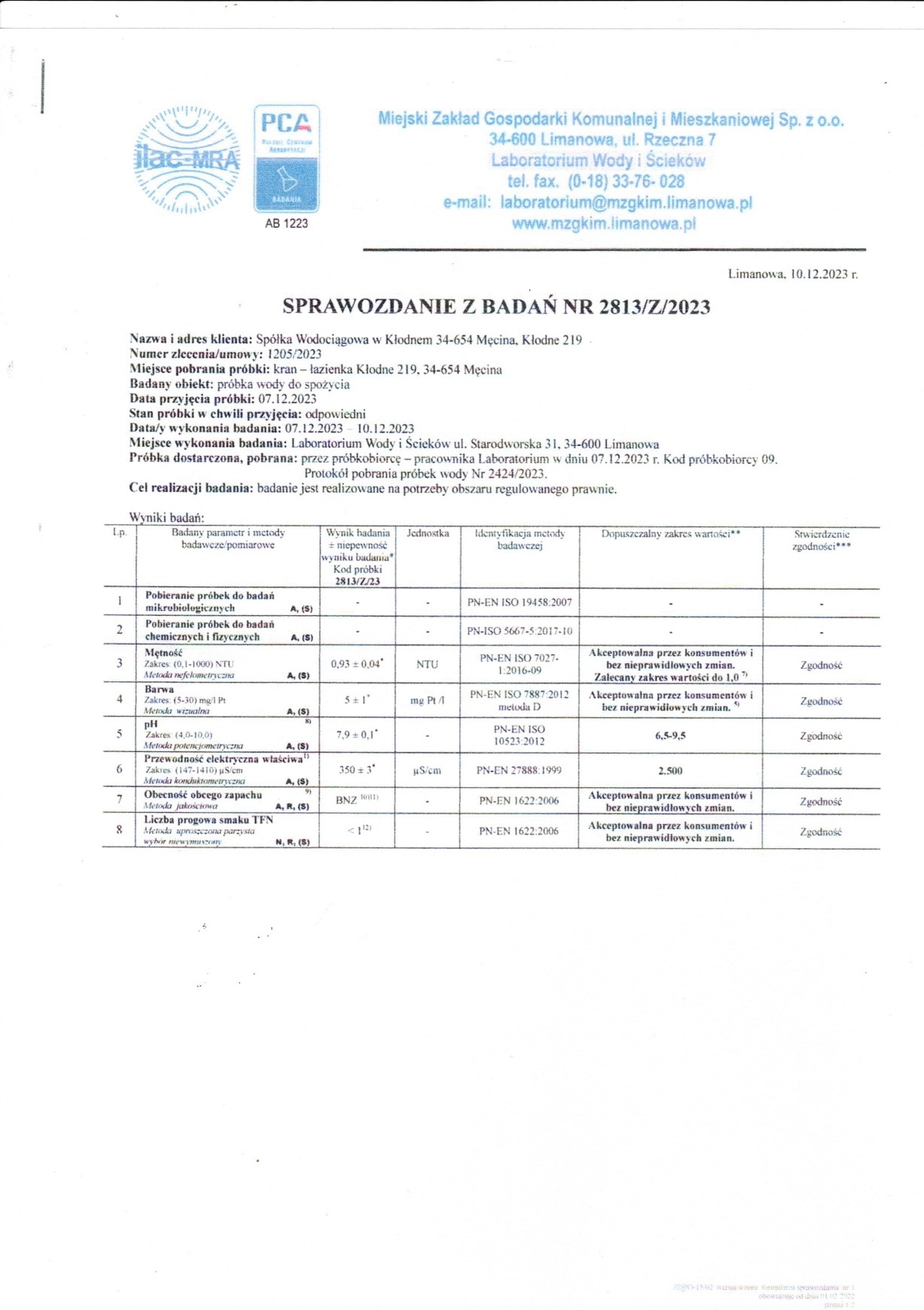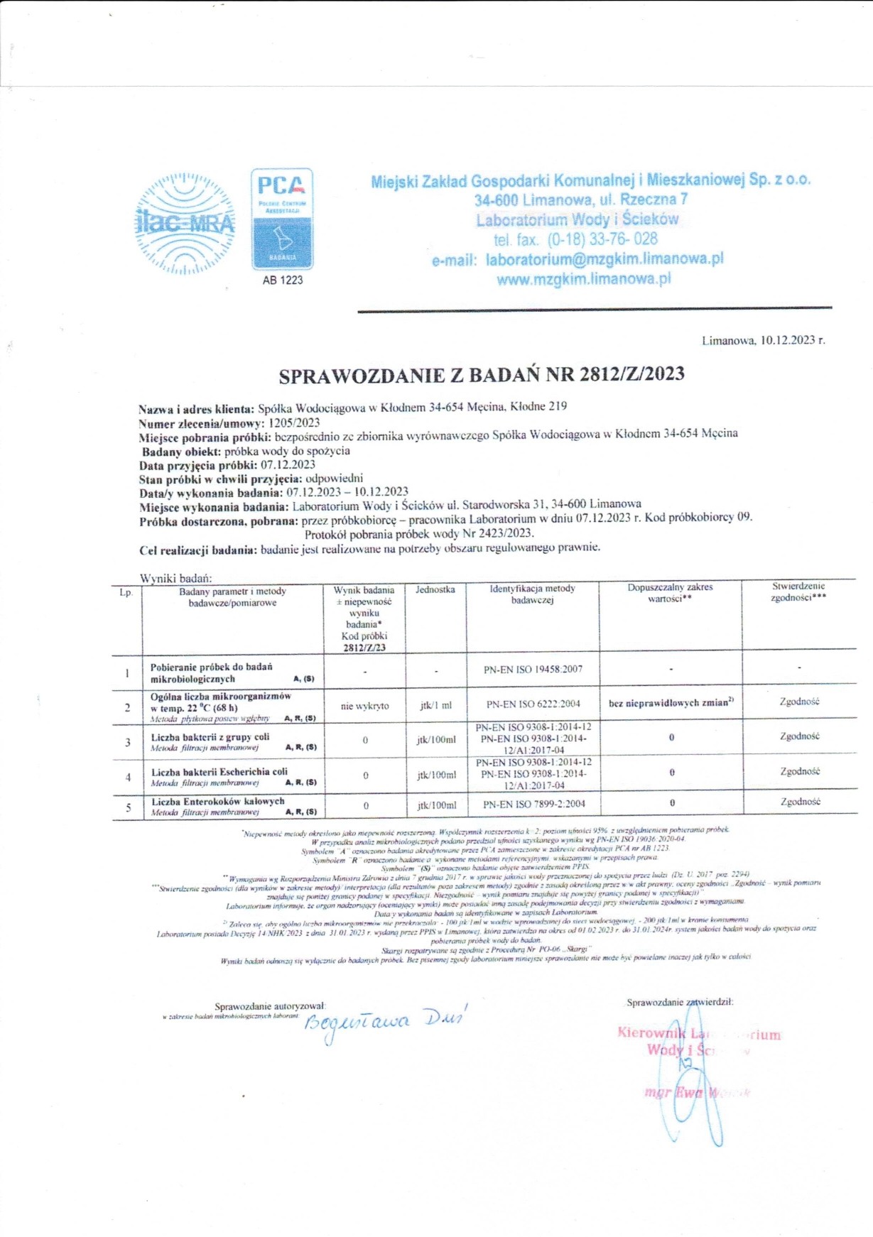 Zarząd Spółki Wodociągowej w Kłodnem informuje, że wyniki badańwody z dnia 07.12.2023r. mają wynik pozytywny wobec tego woda nadaje się do spożycia i nie ma żadnych zagrożeń dla zdrowia. Jeszcze raz przepraszamy za zaistniałą sytuację.