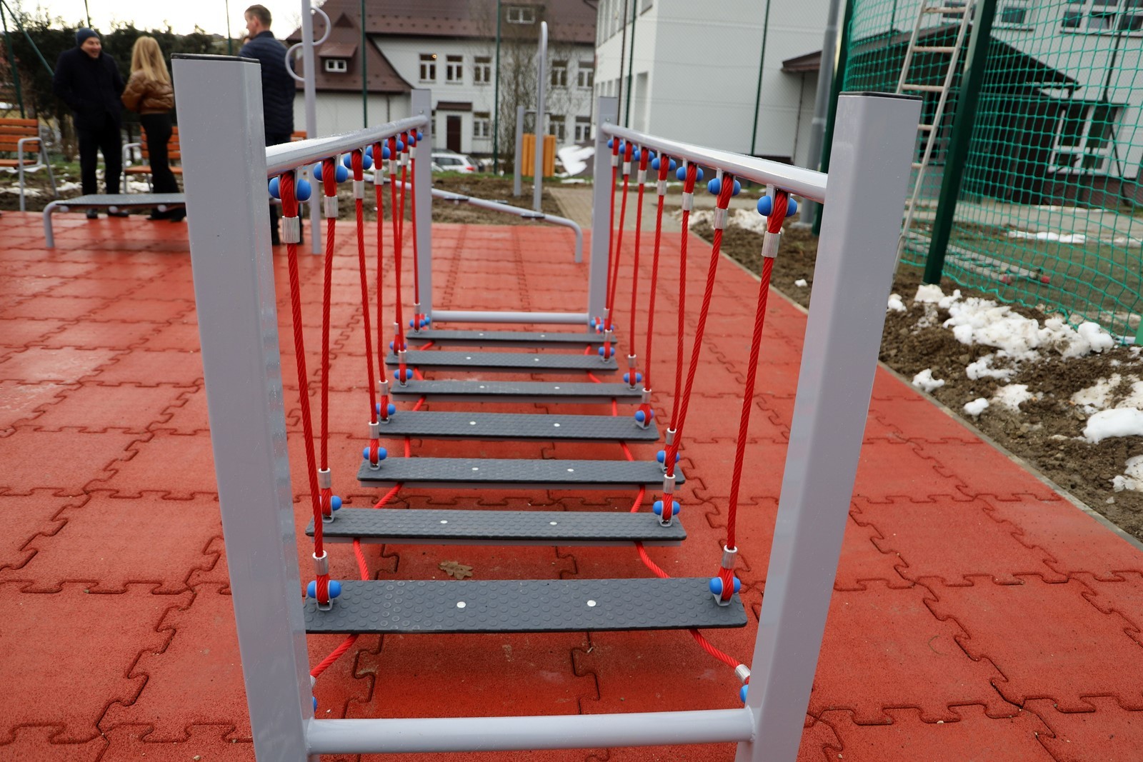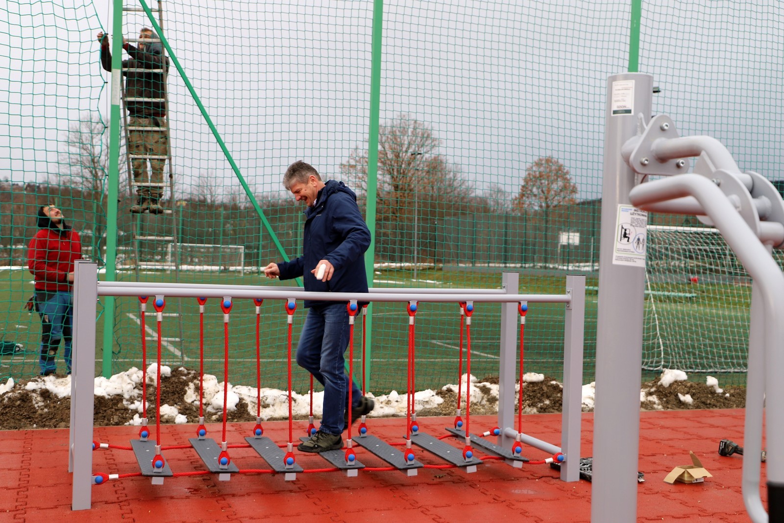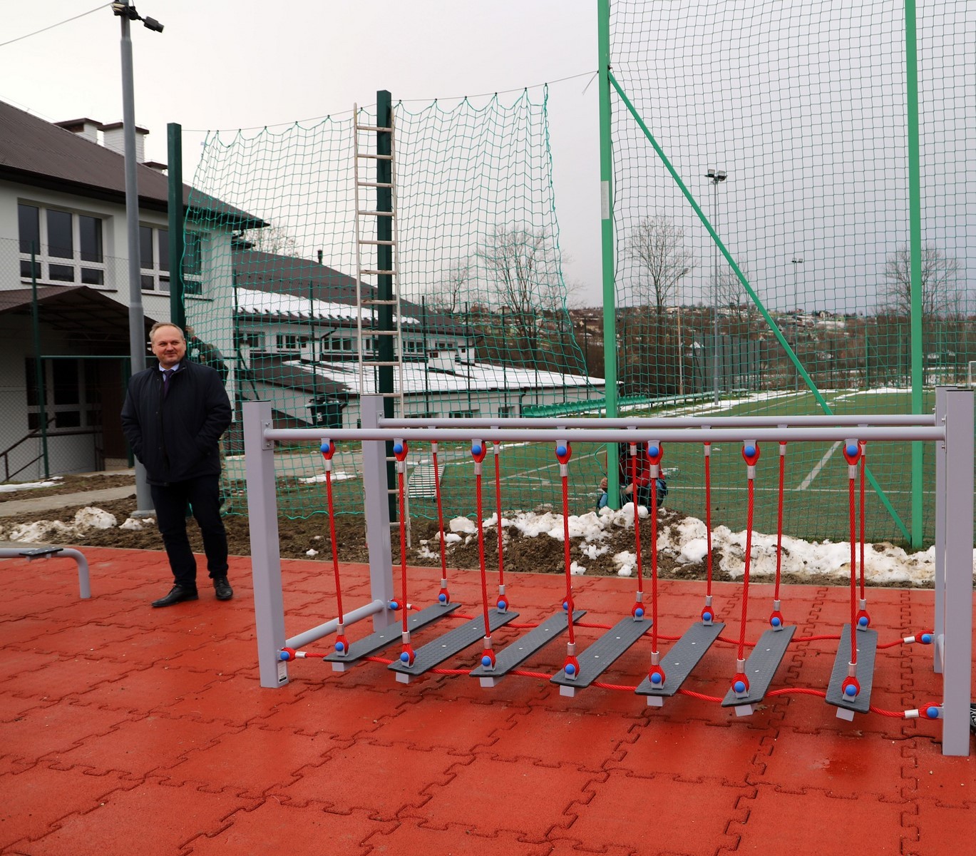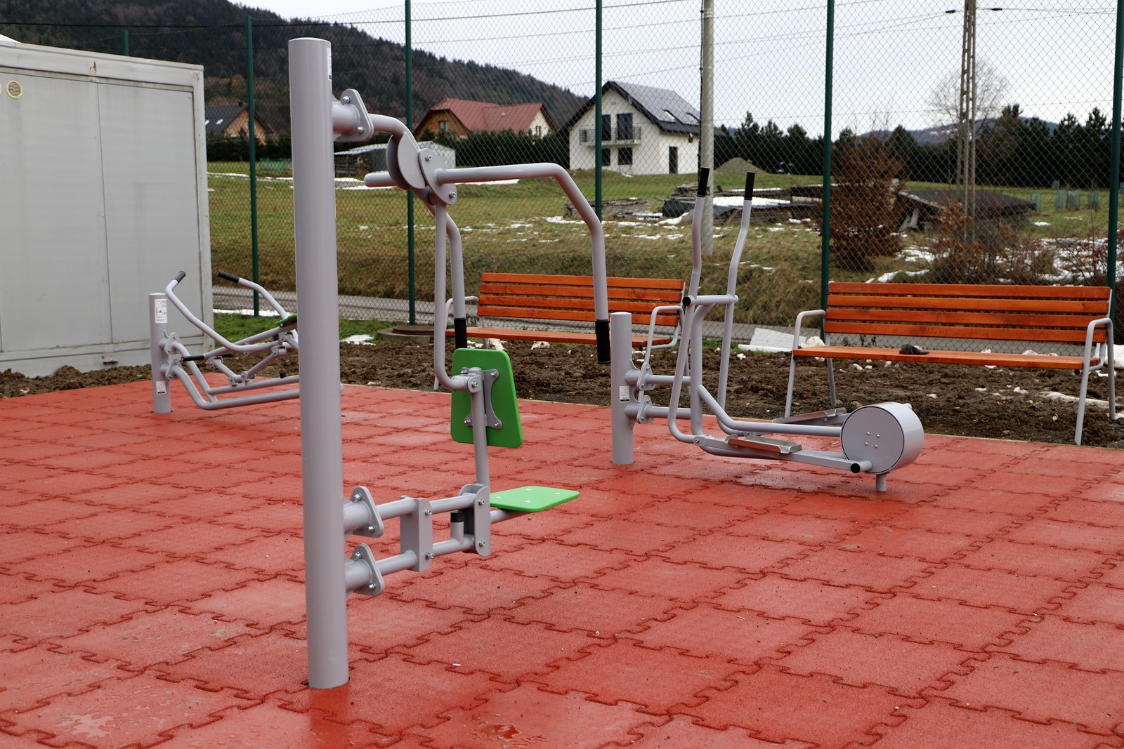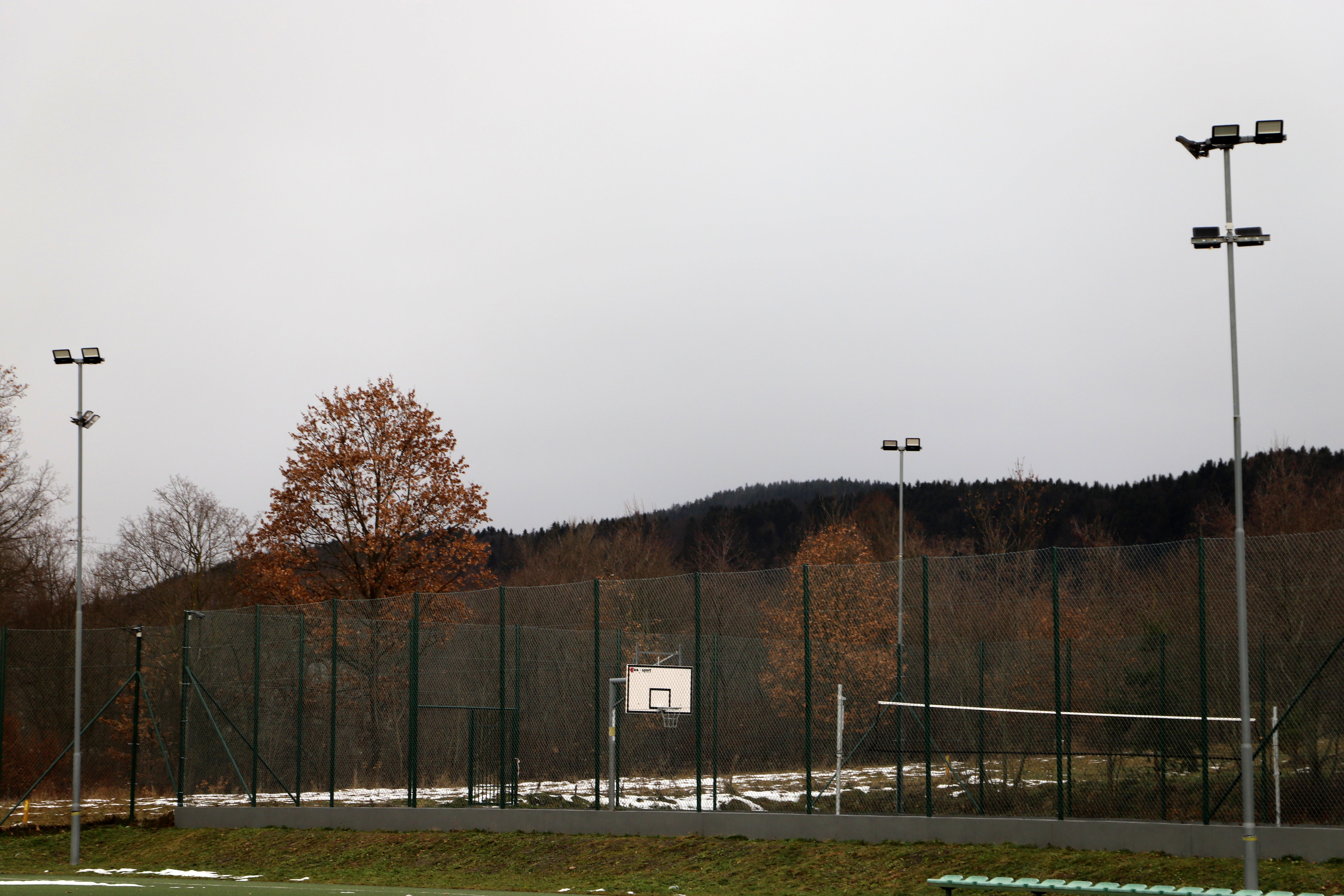 Inwestycja składała się z dwóch zadań częściowych. Część 1 dotyczyła wykonania placu zabaw z elementami siłowni zewnętrznej. Obiekt został wyposażony w bezpieczną nawierzchnię zapobiegającą urazom oraz urządzenia zabawowe i rekreacyjne. Część 2 obejmowała modernizację oświetlenia kompleksu boisk poprzez wymianę istniejących opraw na energooszczędne typu LED.