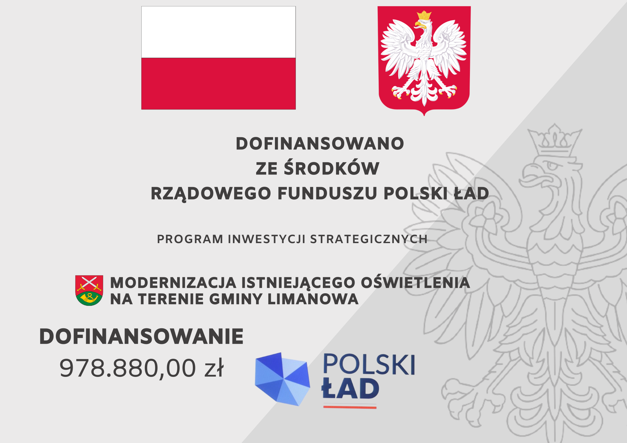 Rozstrzygnięto dziewiątą edycję rządowego Programu Inwestycji Strategicznych pod nazwą „Rozświetlamy Polskę” w ramach której samorządy mogły ubiegać się o dofinansowanie modernizacji oświetlenia ulicznego. Gmina Limanowa pozyskała na ten cel 978.880,00 zł.
