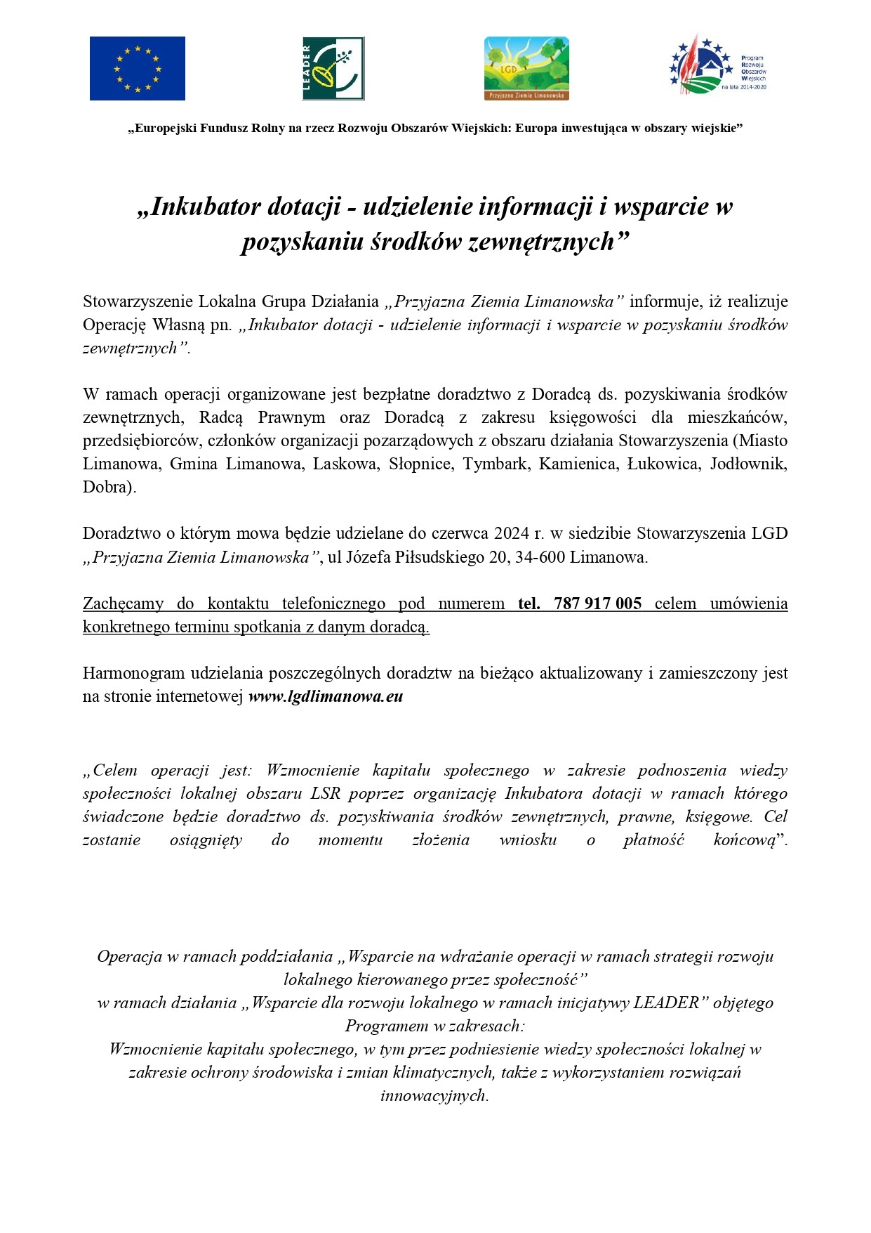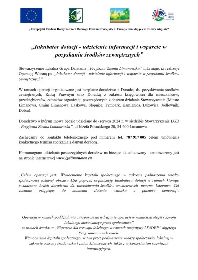 Inkubator dotacji - wsparcie i pomoc w pozyskaniu środków zewnętrznych