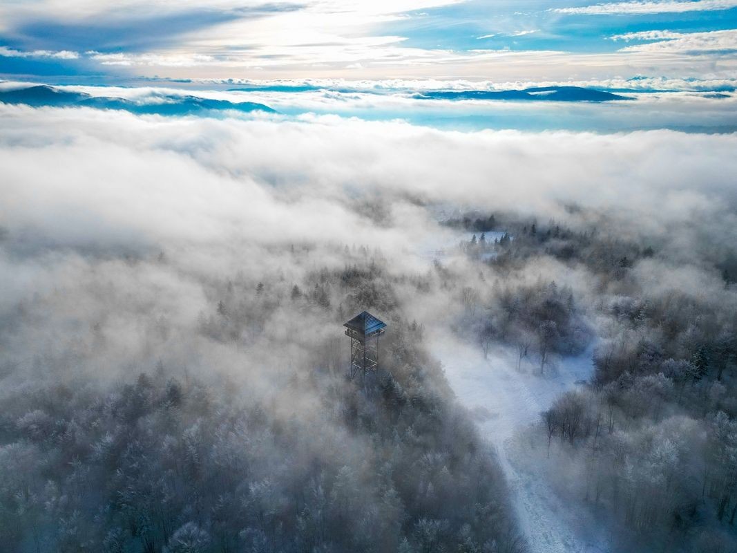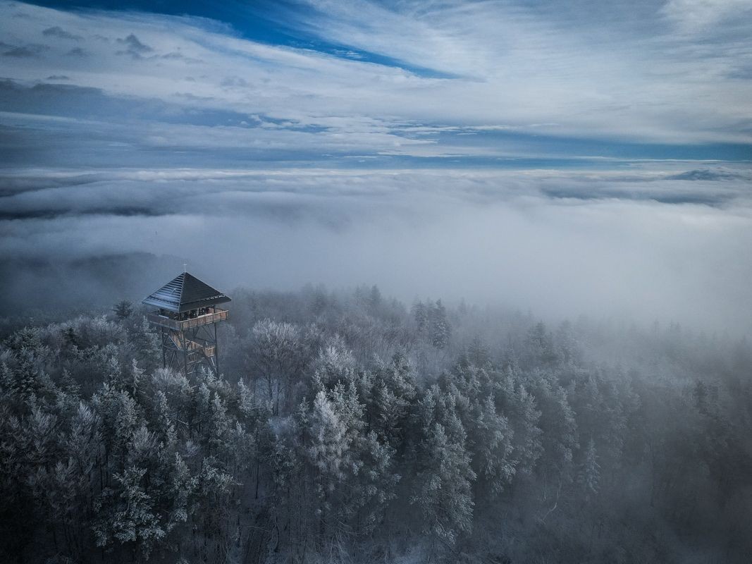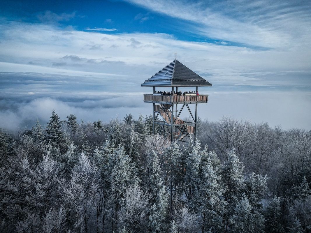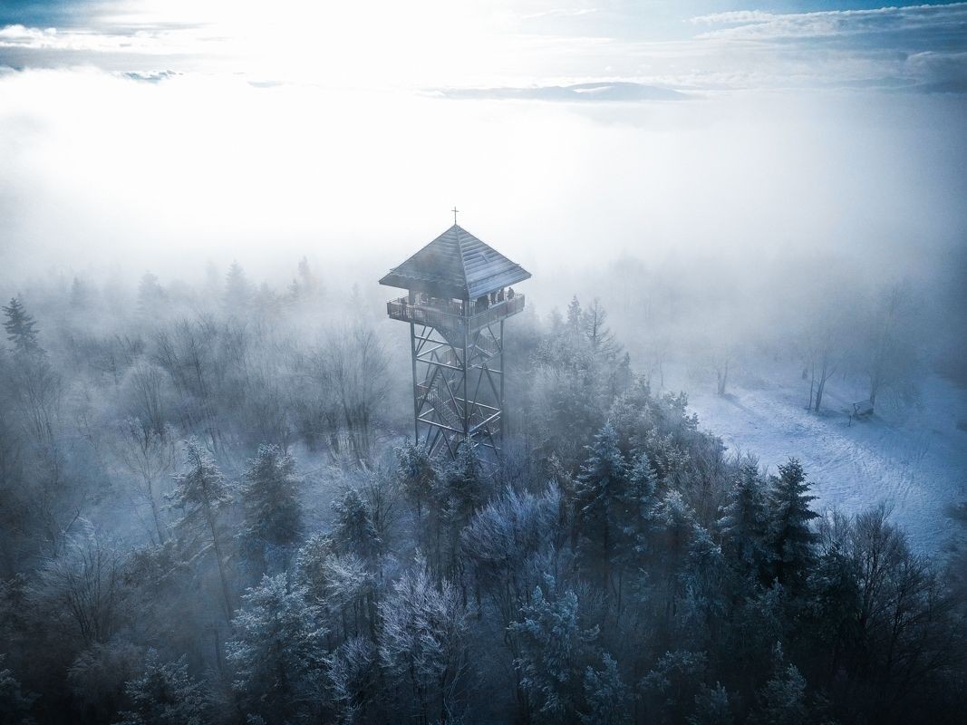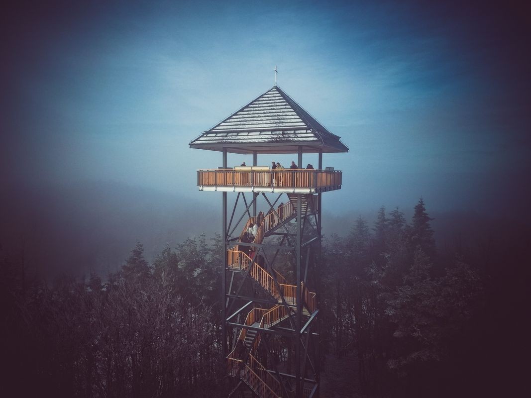 29-metrowa wieża zwieńczona zadaszonym tarasem o powierzchni 64 metrów kwadratowych umożliwia podziwianie krajobrazu, który dotąd przysłonięty był drzewami. Z tarasu rozpościera się pełna panorama, obejmująca Pogórze Wiśnickie, Pogórze Rożnowskie, Beskid Sądecki, Beskid Wyspowy, Gorce, Magurę Spiską, Tatry, Babią Górę z Pasmem Policy i Beskid Makowski, a nawet Kraków. Identyfikację poszczególnych punktów ułatwiają opisane i zamontowane na wieży tablice z panoramami widokowymi.