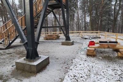 Prace przy budowie wieży widokowej trwały od kwietnia do listopada 2023. Wykonawca zadania: Spółka Ekobudstal z Chorzowa.