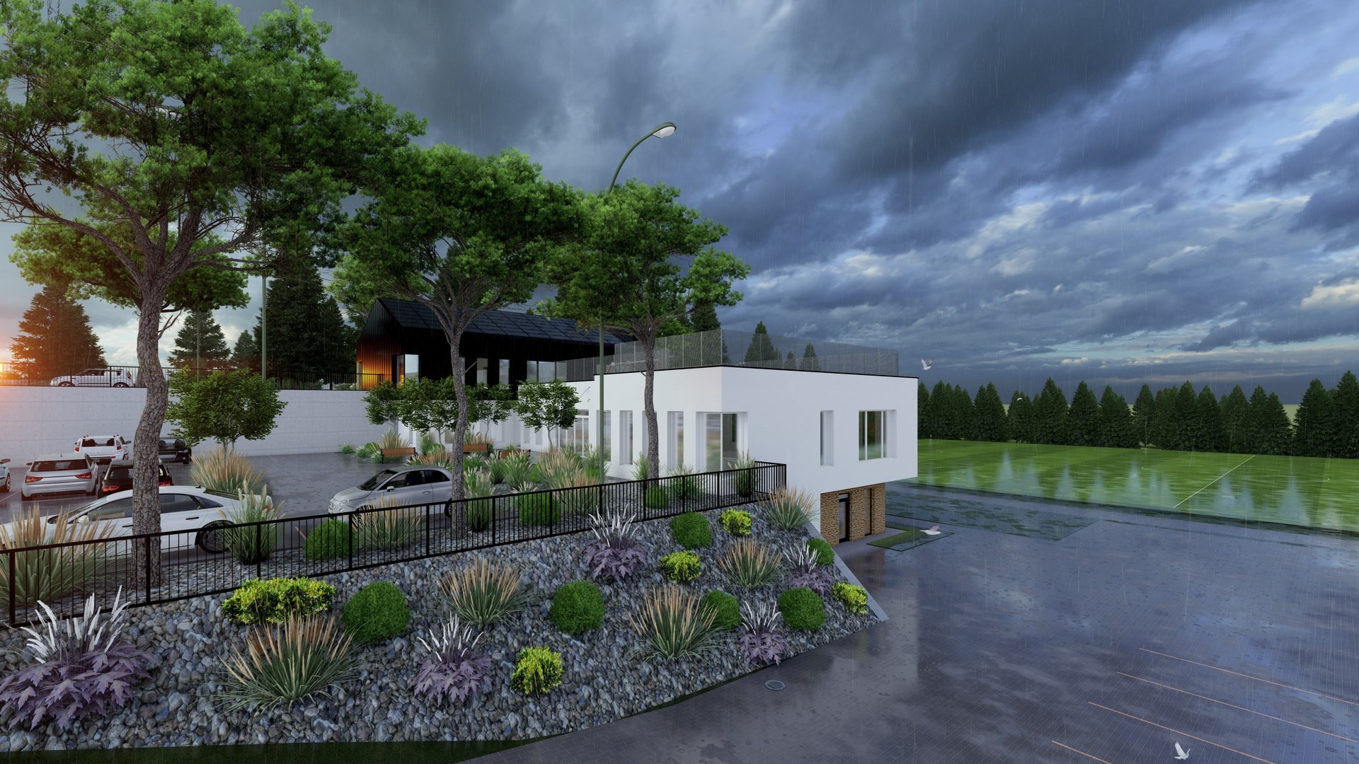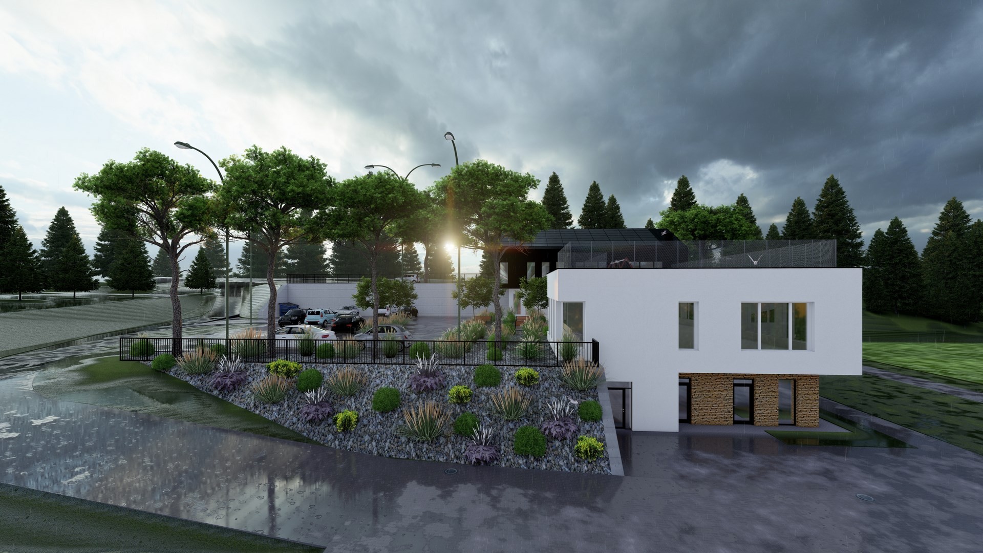 - wykonanie ogrodzenia terenu wokół budynku wraz z bramami przesuwnymi i furtkami według rysunku „pzt wykonawczy zmiana” (częściowa rezygnacja z balustrady przewidzianej w projekcie technicznym budynku na rzecz przedmiotowego ogrodzenia)