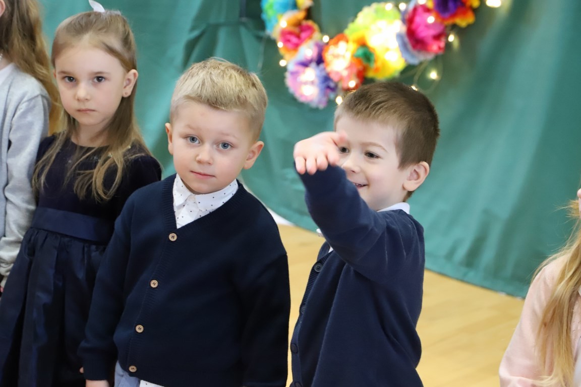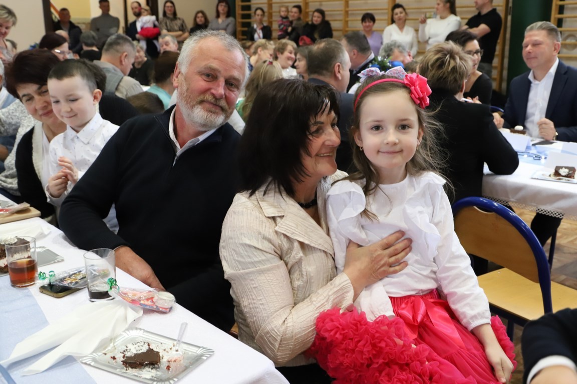 Dzieci, aby wyrazić swoją wdzięczność, obdarowały Babcie i Dziadków symbolicznymi prezentami. W zamian otrzymały tysiąc uścisków i całusów. W tym dniu pełnym wzruszeń i serdeczności nie zabrakło miejsca na wspólne kolędowanie, a także słodkiego poczęstunku przygotowanego przez Rodziców. Spotkanie upłynęło w miłej i serdecznej atmosferze.