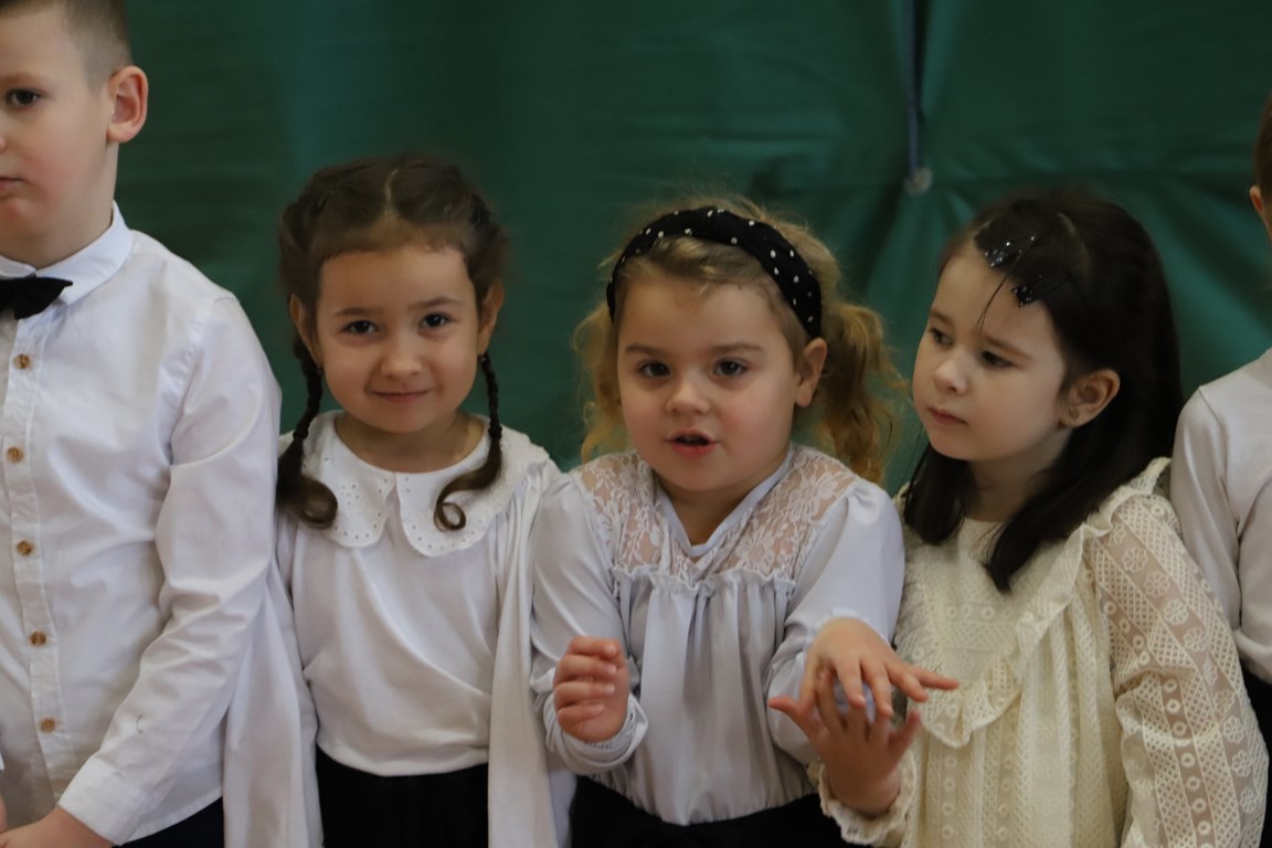 Wnuczęta poprzez wzruszające wierszyki, wesołe piosenki i pokazy taneczne starały się wyrazić miłość, szacunek i wdzięczność Kochanym Babciom i Dziadkom za trud włożony w ich wychowanie. Mali artyści z przejęciem wczuwali się w role, a czcigodni goście ze wzruszeniem odbierali czułe słowa. Program artystyczny przygotowany przez przedszkolaków pod kierunkiem wychowawczyń uzyskał uznanie i został nagrodzony gromkimi brawami.
