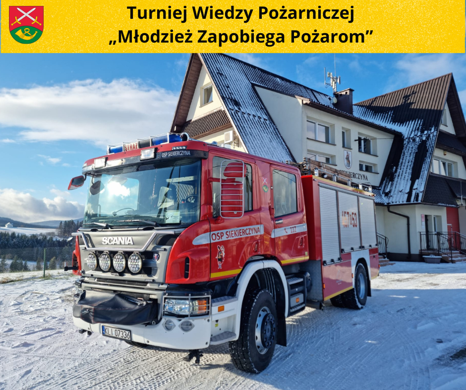 Zarząd Oddziału Miejsko - Gminnego Związku OSP RP w Limanowej informuje, że  Miejsko - Gminne eliminacje konkursu „Młodzież Zapobiega Pożarom” odbędą się w dniu 14 marca 2024 roku o godzinie 10-tej w świetlicy Remizy Ochotniczej Straży Pożarnej w Siekierczynie.