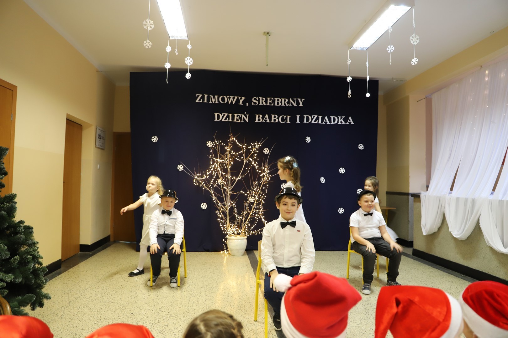 Na udekorowanej w zimowej szacie sali przedszkolaki oraz uczniowie klas 1-8 przygotowali piękny program artystyczny, w którym wyraziły swą wielką miłość do babć i dziadków. Były wiersze, scenki odgrywane przez młodzież przeplatane wzruszającym śpiewem, gra na instrumentach. Oprócz montażu słowno – muzycznego na temat miłości, szanowni goście obejrzeli także pokazy taneczne w wykonaniu swoich wnuczek i wnuczków. Mali artyści z przejęciem odtwarzali swoje role, a czcigodni goście ze wzruszeniem odbierali czułe słowa, kierowane pod ich adresem.