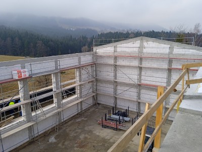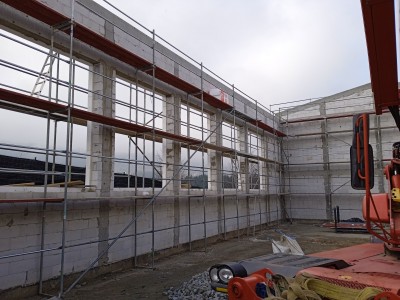 Zbliża się czas zakończenia kolejnego etapu prac realizowanego zadania pn. "Rozbudowa i modernizacja bazy oświatowej na terenie Gminy Limanowa w tym wykonanie instalacji odnawialnych źródeł energii", w ramach którego miedzy innymi rozbudowywana jest Szkoła Podstawowa nr 2 w Siekierczynie. Wykonawca robót wykonał już wszystkie ściany i płyty części łączącej istniejącą szkołę z budowaną salą gimnastyczną w której znajdować się będzie : jadalnia z kuchnią, lokal dwuoddziałowego przedszkola oraz dodatkowe sale lekcyjne. Gotowa jest też większość ścian budowanej sali gimnastycznej a lada moment ma być montowana konstrukcja dachu.