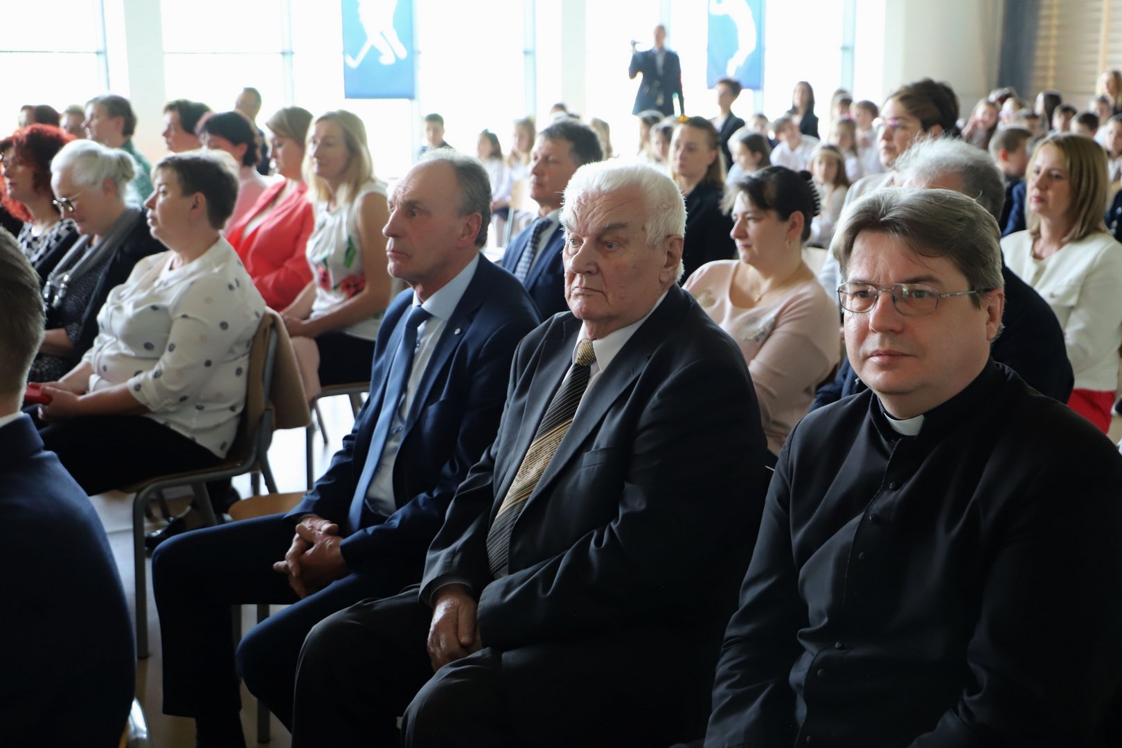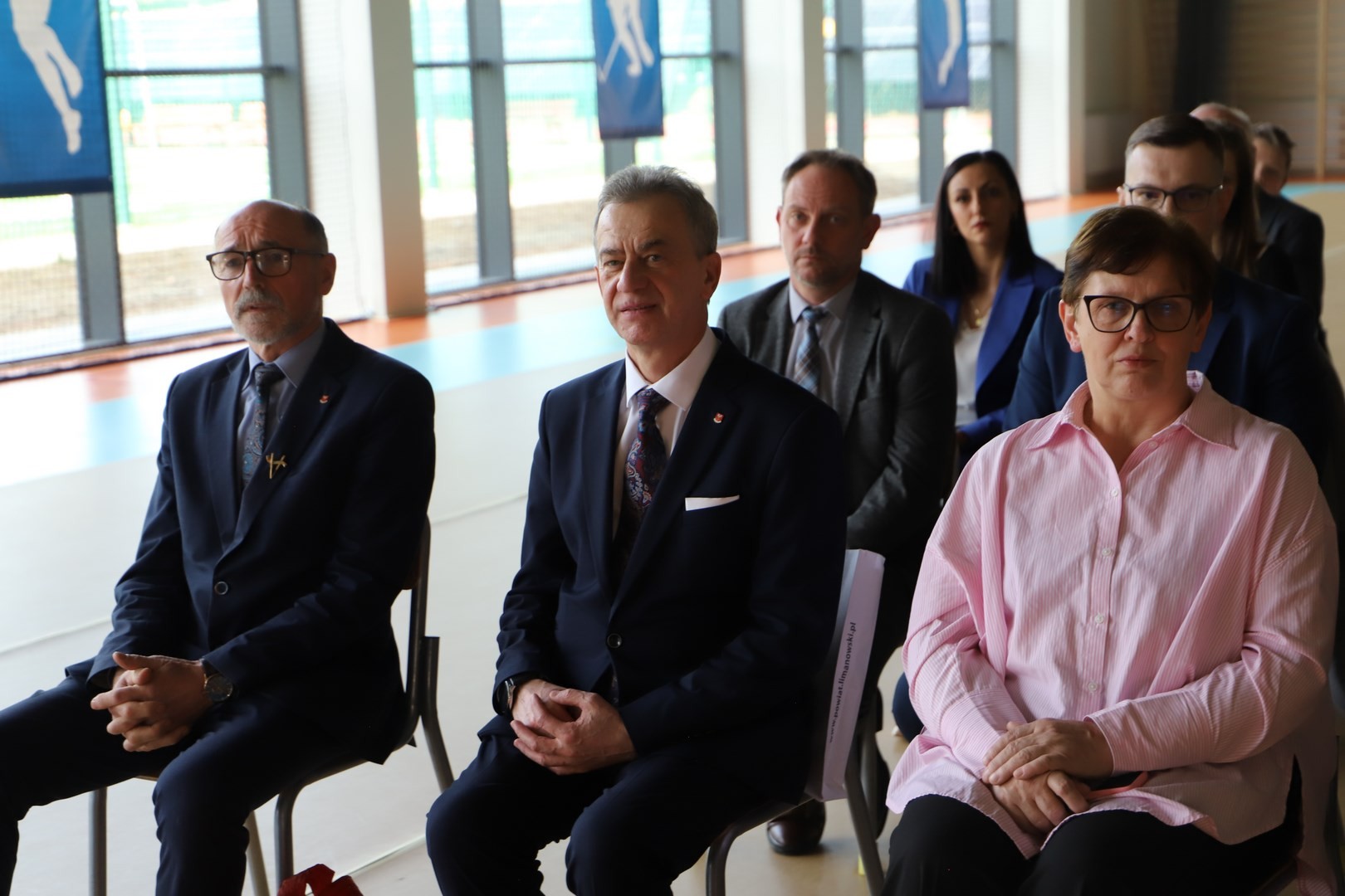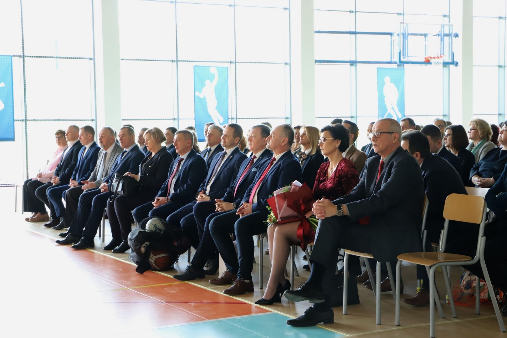 dyrektorzy szkół z terenu Gminy Limanowa, wykonawca inwestycji Jan Cabak oraz kierownik budowy Dawid Leśniak, projektantka hali Anna Stawiarska, wiceprezes ZNP Jadwiga Kowalczyk, przewodnicząca Rady Rodziców Aneta Oleksy-Gębczyk, emerytowani dyrektorzy Szkoły Podstawowej nr 1 w Męcinie Maria Lupa oraz Lubomir Piotrowski, prezes Spółki Wodno-Ściekowej Józef Oleksy, sołtys wsi Męcina Stanisław Smęda, przewodnicząca KGW w Męcinie Danuta Smoleń, przewodnicząca Klubu Seniora Stanisława Oleksy oraz członkowie Orkiestry Dętej pod batutą Władysława Michury.