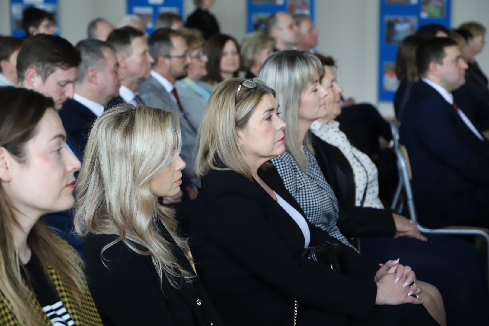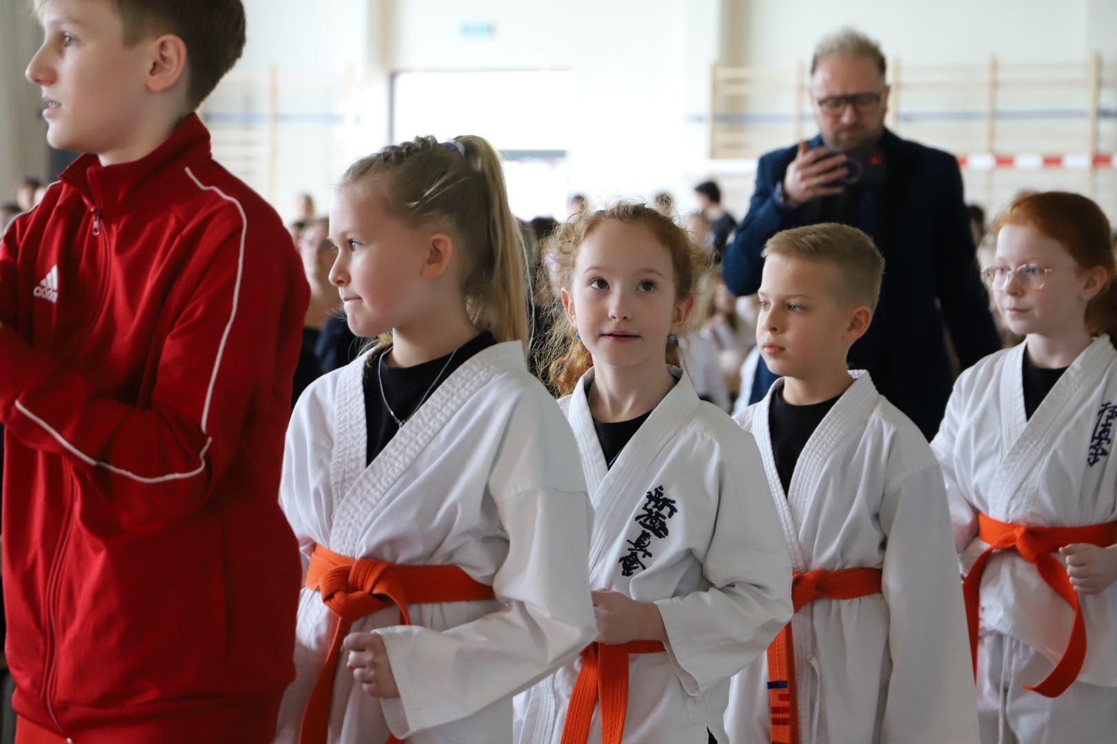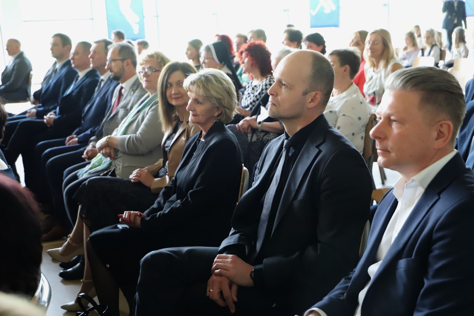 dyrektorzy szkół z terenu Gminy Limanowa, wykonawca inwestycji Jan Cabak oraz kierownik budowy Dawid Leśniak, projektantka hali Anna Stawiarska, wiceprezes ZNP Jadwiga Kowalczyk, przewodnicząca Rady Rodziców Aneta Oleksy-Gębczyk, emerytowani dyrektorzy Szkoły Podstawowej nr 1 w Męcinie Maria Lupa oraz Lubomir Piotrowski, prezes Spółki Wodno-Ściekowej Józef Oleksy, sołtys wsi Męcina Stanisław Smęda, przewodnicząca KGW w Męcinie Danuta Smoleń, przewodnicząca Klubu Seniora Stanisława Oleksy oraz członkowie Orkiestry Dętej pod batutą Władysława Michury.
