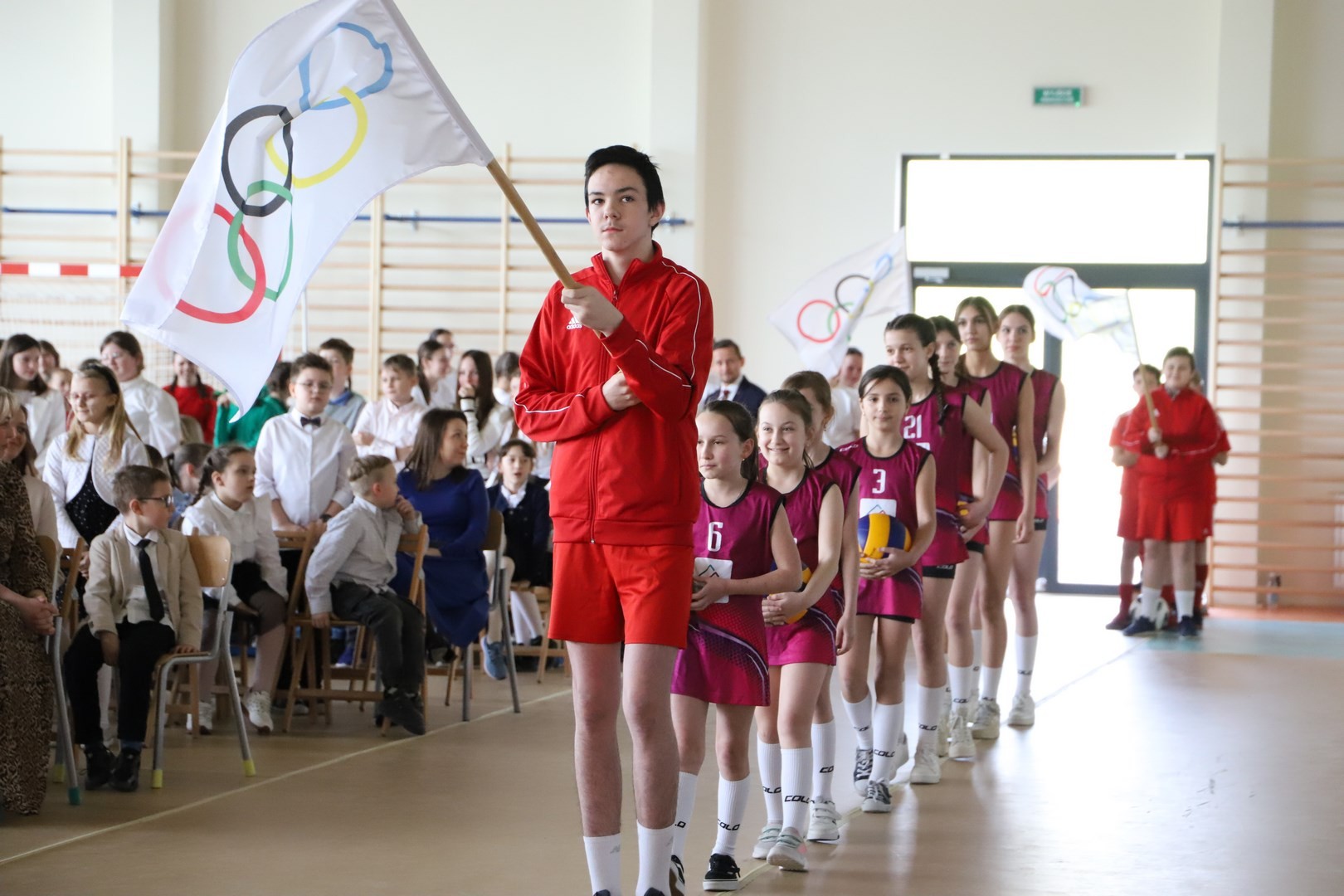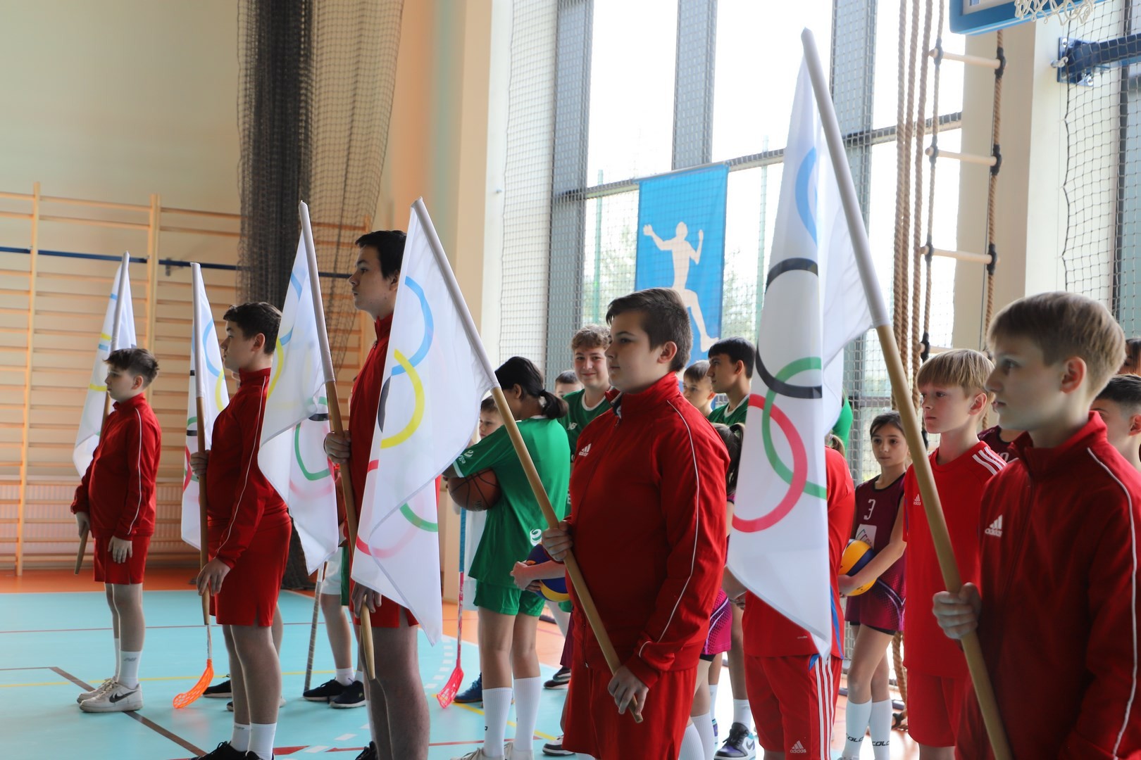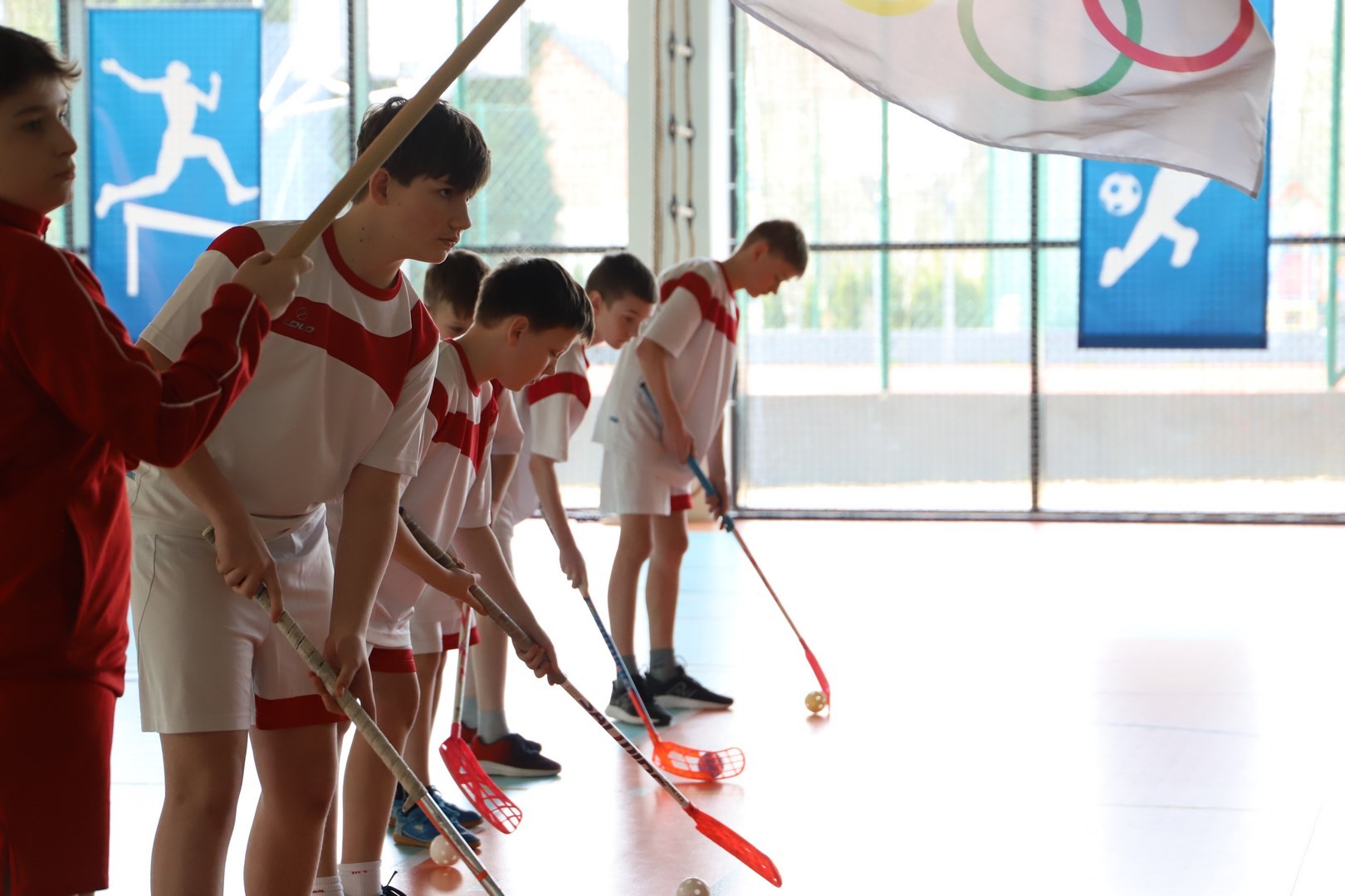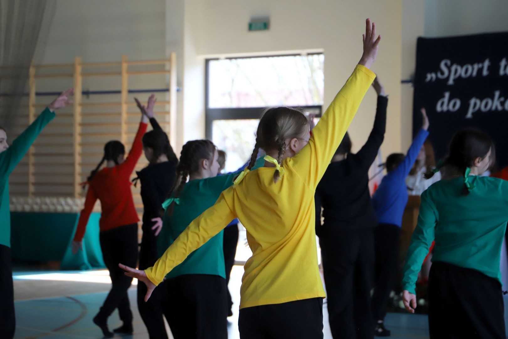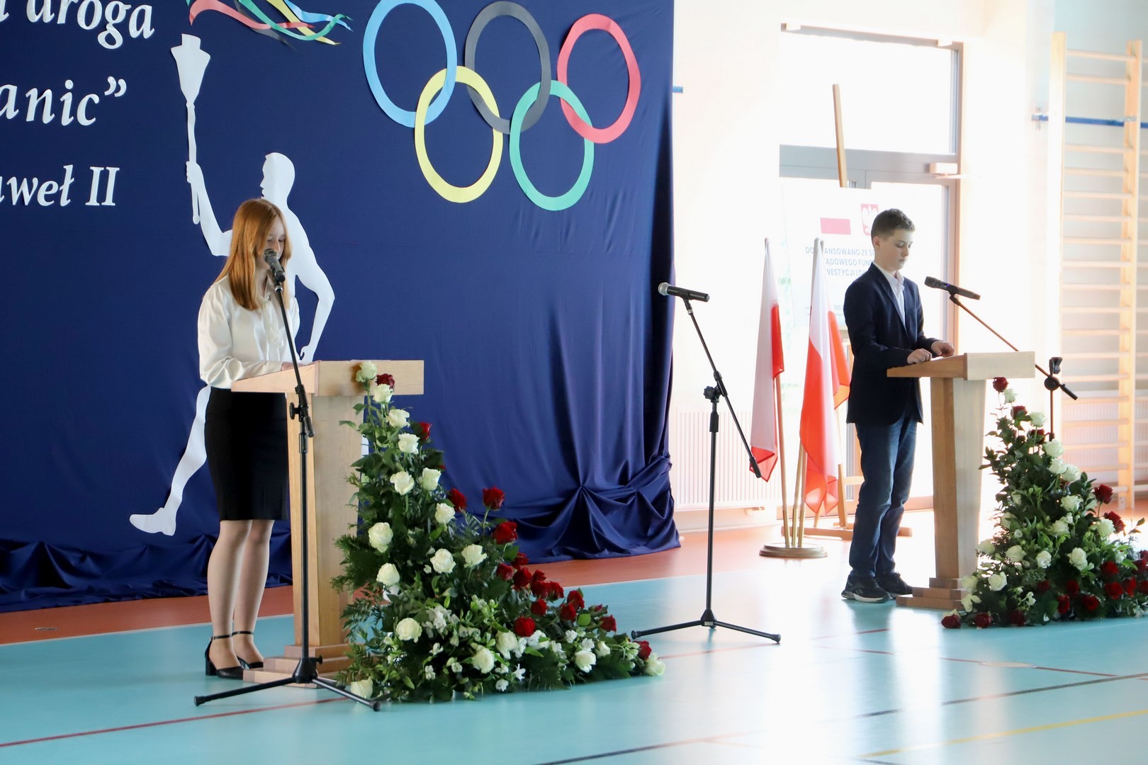 Uroczystość uświetnili również uczniowie, którzy swoim występem artystycznym nawiązali do idei olimpijskiej. Jako pierwsi pojawili się greccy bogowie, wzywając sportowców z całego globu do rywalizacji w zawodach, dodając im jednocześnie odwagi, męstwa oraz siły. Następnie na scenę wkroczyli przedstawiciele pięciu dyscyplin sportowych: hokeja, koszykówki, siatkówki, piłki nożnej oraz karate - uczniowie, którzy mogą poszczycić się licznymi sukcesami w zawodach sportowych na różnych szczeblach, reprezentując nie tylko szkołę, ale także kluby sportowe, w których są zrzeszeni. Jeden z nich, w imieniu wszystkich sportowców, złożył uroczystą obietnicę, że wszyscy zawodnicy będą godnie reprezentować swe drużyny podczas rywalizacji z poszanowaniem zasad fair play. Następnie krótko przedstawiono historię i symbolikę igrzysk, a dziewczęta zaprezentowały taniec z flagami w barwach olimpijskich. Podczas występu nie mogło zabraknąć również poezji. Jedna z uczennic wyrecytowała wiersz Kazimierza Wierzyńskiego, autora cyklu „Laur olimpijski”. Zaś finałowym punktem programu był taniec z elementami akrobatyki, nawiązujący do idei olimpijskiej poprzez swoją wymowę i symbolikę.
