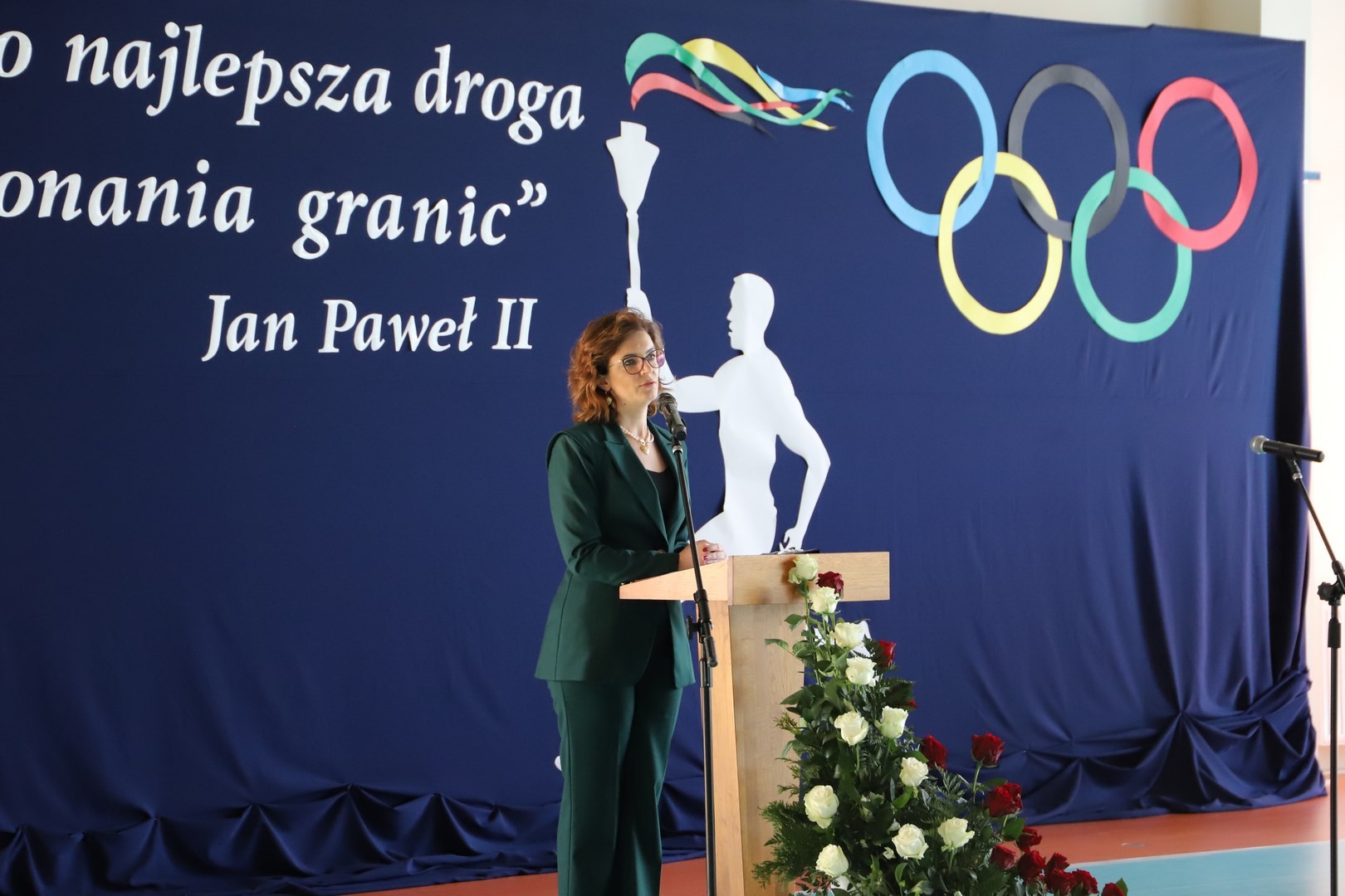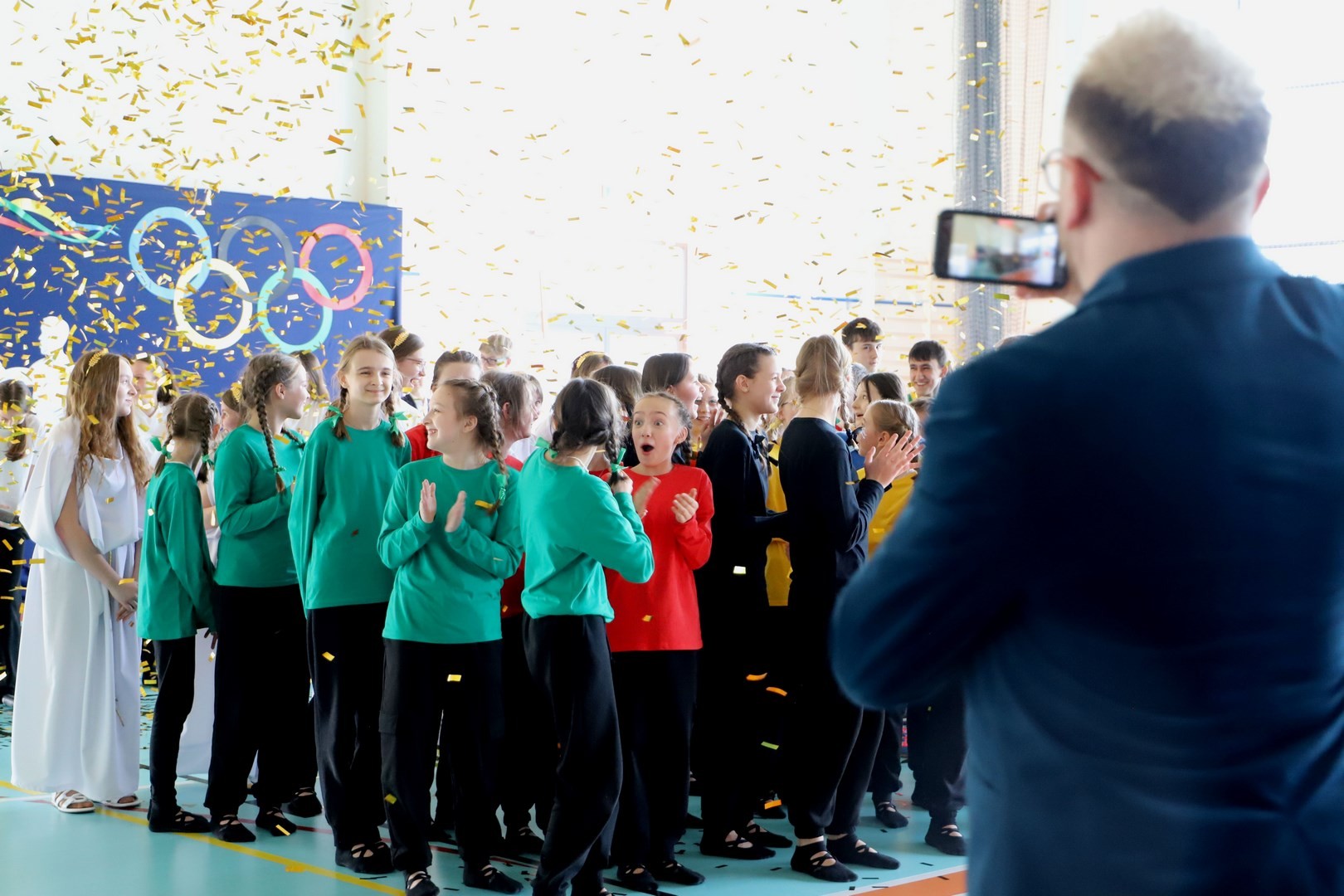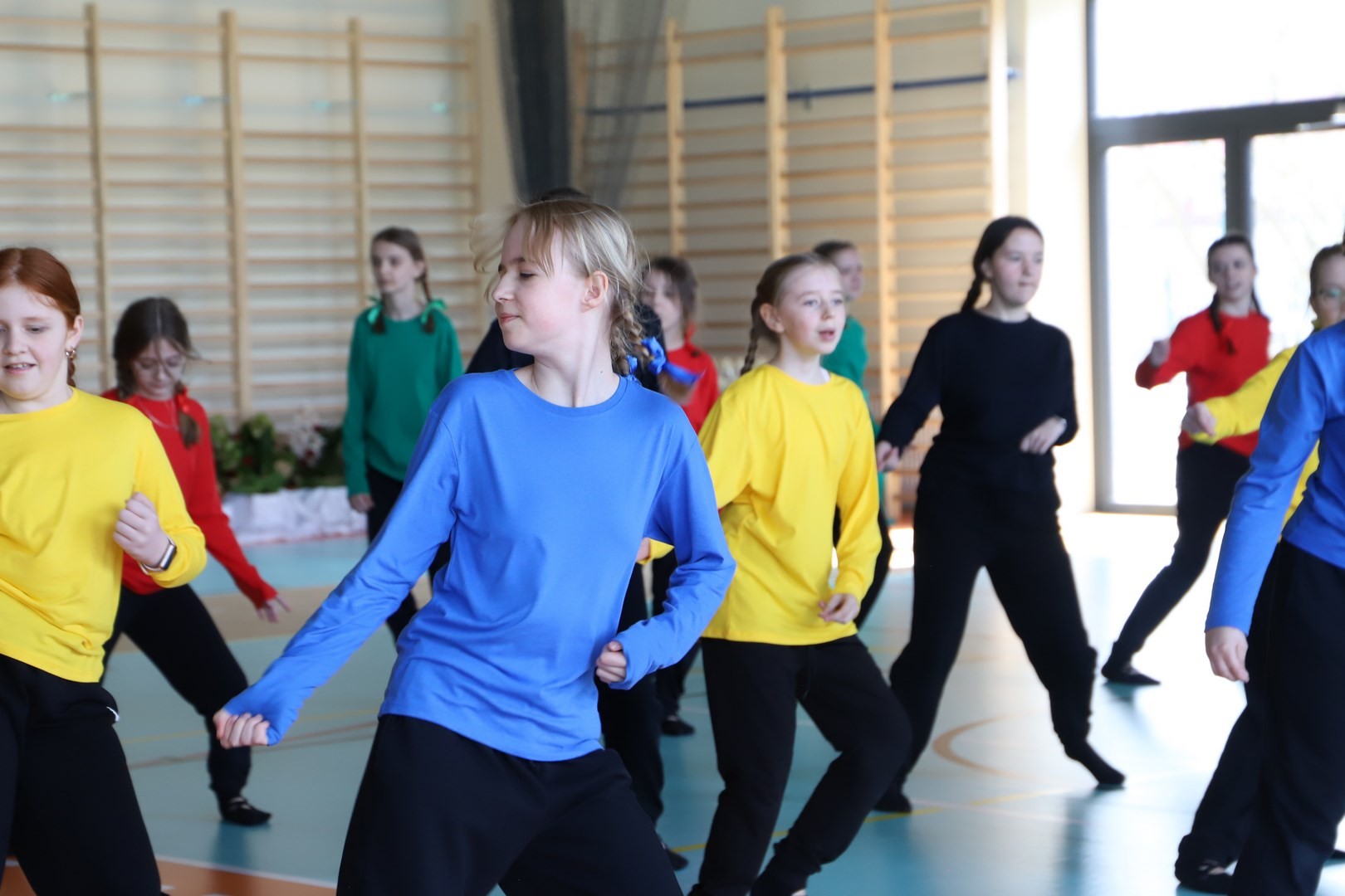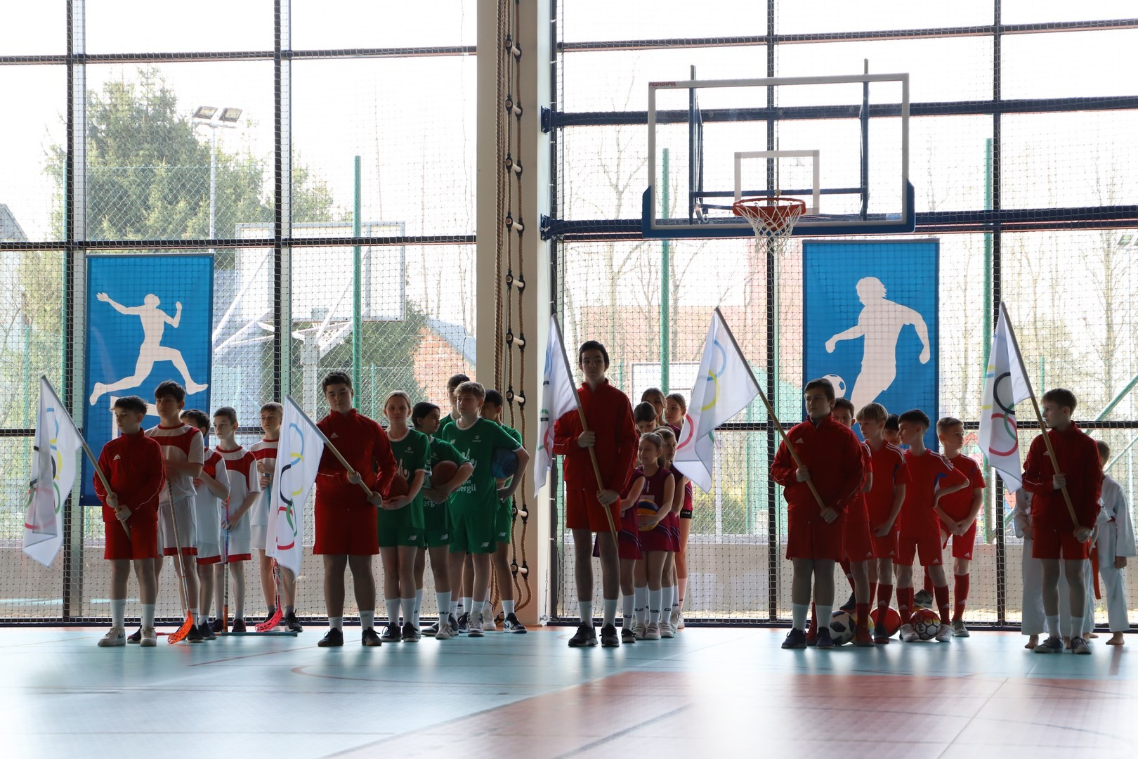 Uroczystość uświetnili również uczniowie, którzy swoim występem artystycznym nawiązali do idei olimpijskiej. Jako pierwsi pojawili się greccy bogowie, wzywając sportowców z całego globu do rywalizacji w zawodach, dodając im jednocześnie odwagi, męstwa oraz siły. Następnie na scenę wkroczyli przedstawiciele pięciu dyscyplin sportowych: hokeja, koszykówki, siatkówki, piłki nożnej oraz karate - uczniowie, którzy mogą poszczycić się licznymi sukcesami w zawodach sportowych na różnych szczeblach, reprezentując nie tylko szkołę, ale także kluby sportowe, w których są zrzeszeni. Jeden z nich, w imieniu wszystkich sportowców, złożył uroczystą obietnicę, że wszyscy zawodnicy będą godnie reprezentować swe drużyny podczas rywalizacji z poszanowaniem zasad fair play. Następnie krótko przedstawiono historię i symbolikę igrzysk, a dziewczęta zaprezentowały taniec z flagami w barwach olimpijskich. Podczas występu nie mogło zabraknąć również poezji. Jedna z uczennic wyrecytowała wiersz Kazimierza Wierzyńskiego, autora cyklu „Laur olimpijski”. Zaś finałowym punktem programu był taniec z elementami akrobatyki, nawiązujący do idei olimpijskiej poprzez swoją wymowę i symbolikę.
