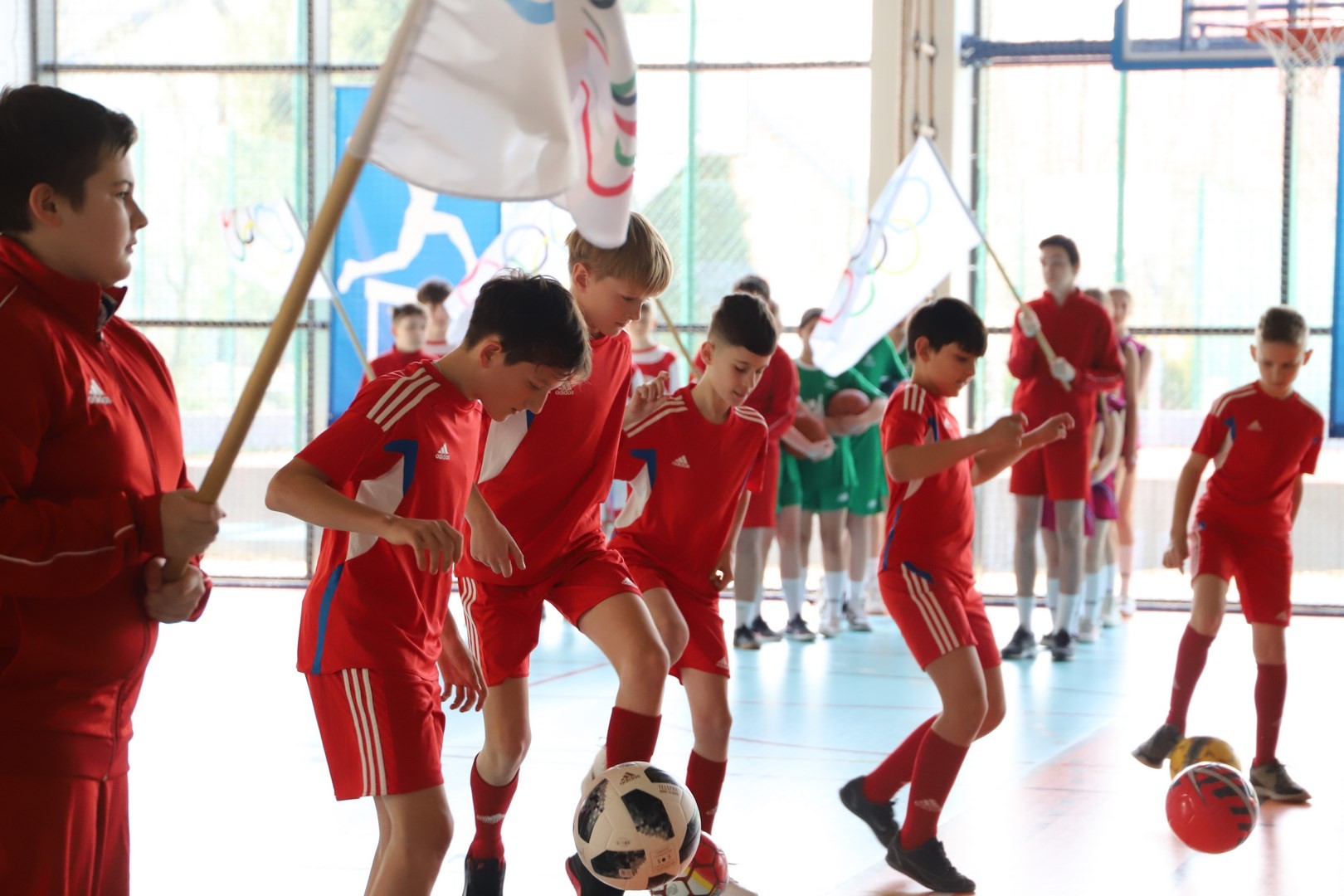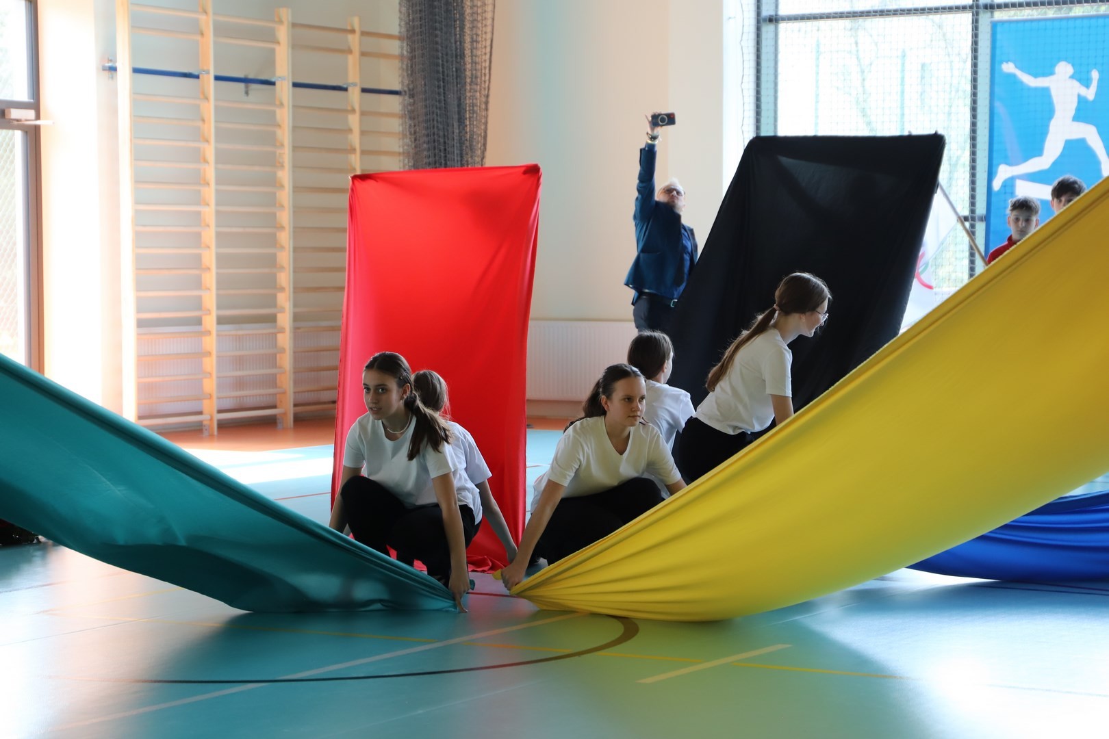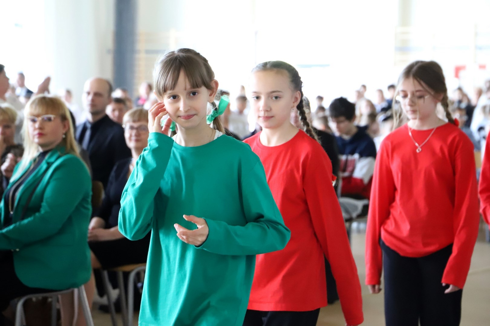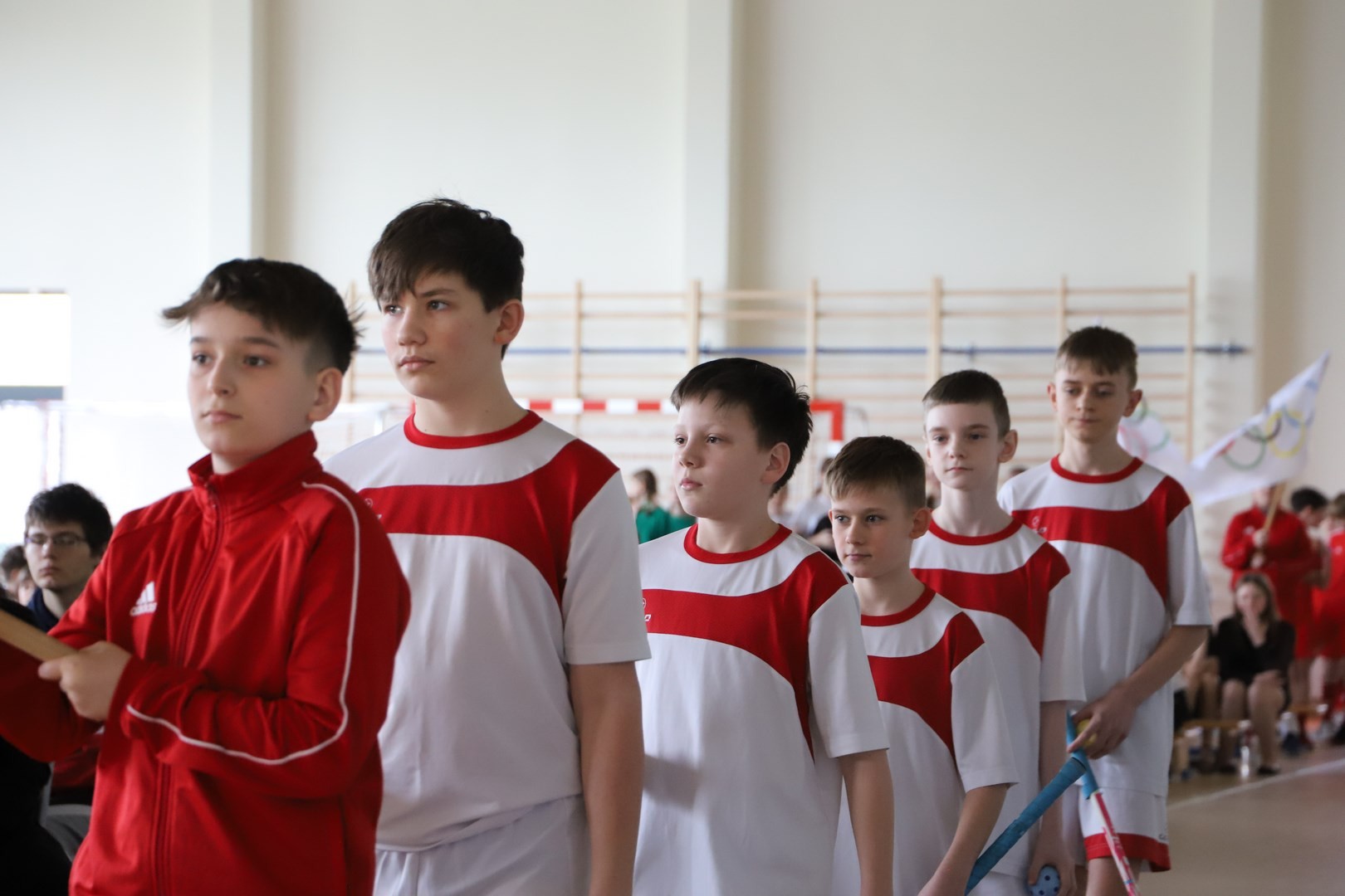 Uroczystość uświetnili również uczniowie, którzy swoim występem artystycznym nawiązali do idei olimpijskiej. Jako pierwsi pojawili się greccy bogowie, wzywając sportowców z całego globu do rywalizacji w zawodach, dodając im jednocześnie odwagi, męstwa oraz siły. Następnie na scenę wkroczyli przedstawiciele pięciu dyscyplin sportowych: hokeja, koszykówki, siatkówki, piłki nożnej oraz karate - uczniowie, którzy mogą poszczycić się licznymi sukcesami w zawodach sportowych na różnych szczeblach, reprezentując nie tylko szkołę, ale także kluby sportowe, w których są zrzeszeni. Jeden z nich, w imieniu wszystkich sportowców, złożył uroczystą obietnicę, że wszyscy zawodnicy będą godnie reprezentować swe drużyny podczas rywalizacji z poszanowaniem zasad fair play. Następnie krótko przedstawiono historię i symbolikę igrzysk, a dziewczęta zaprezentowały taniec z flagami w barwach olimpijskich. Podczas występu nie mogło zabraknąć również poezji. Jedna z uczennic wyrecytowała wiersz Kazimierza Wierzyńskiego, autora cyklu „Laur olimpijski”. Zaś finałowym punktem programu był taniec z elementami akrobatyki, nawiązujący do idei olimpijskiej poprzez swoją wymowę i symbolikę.
