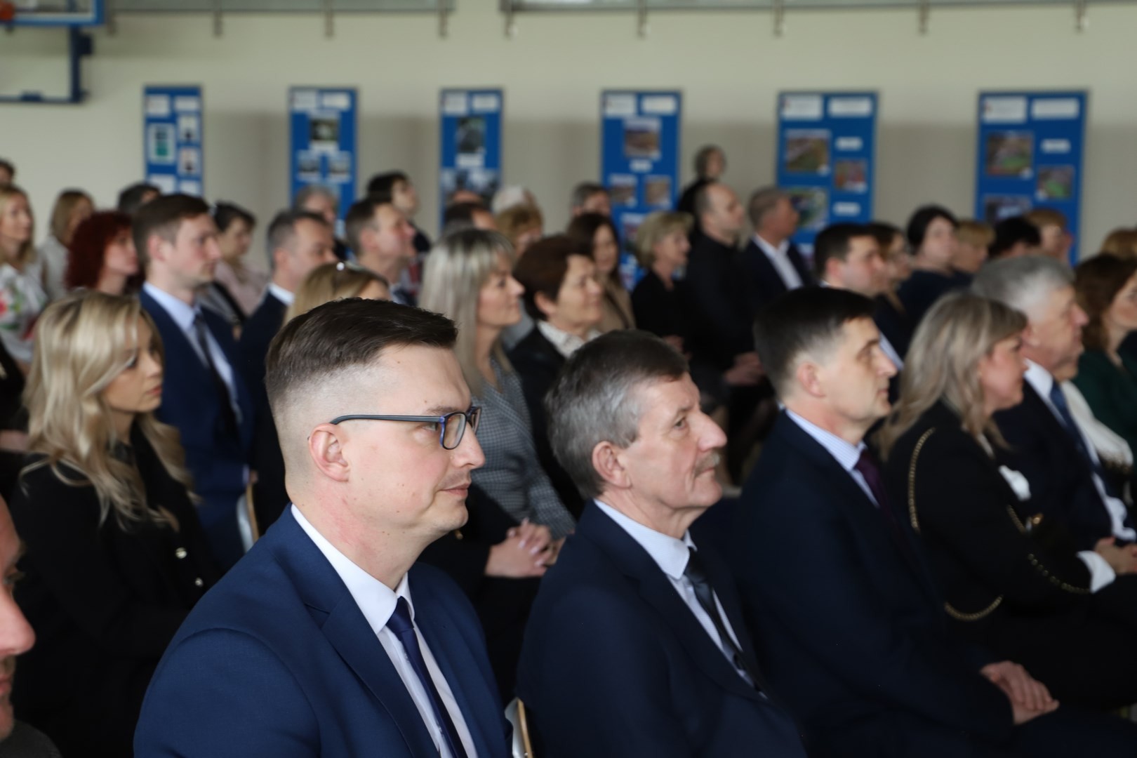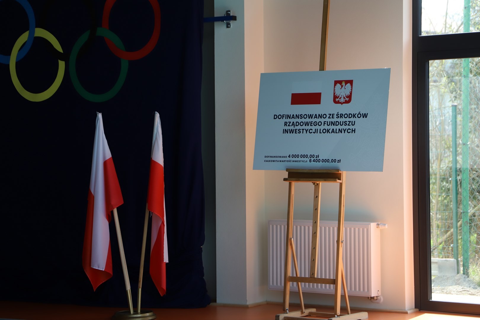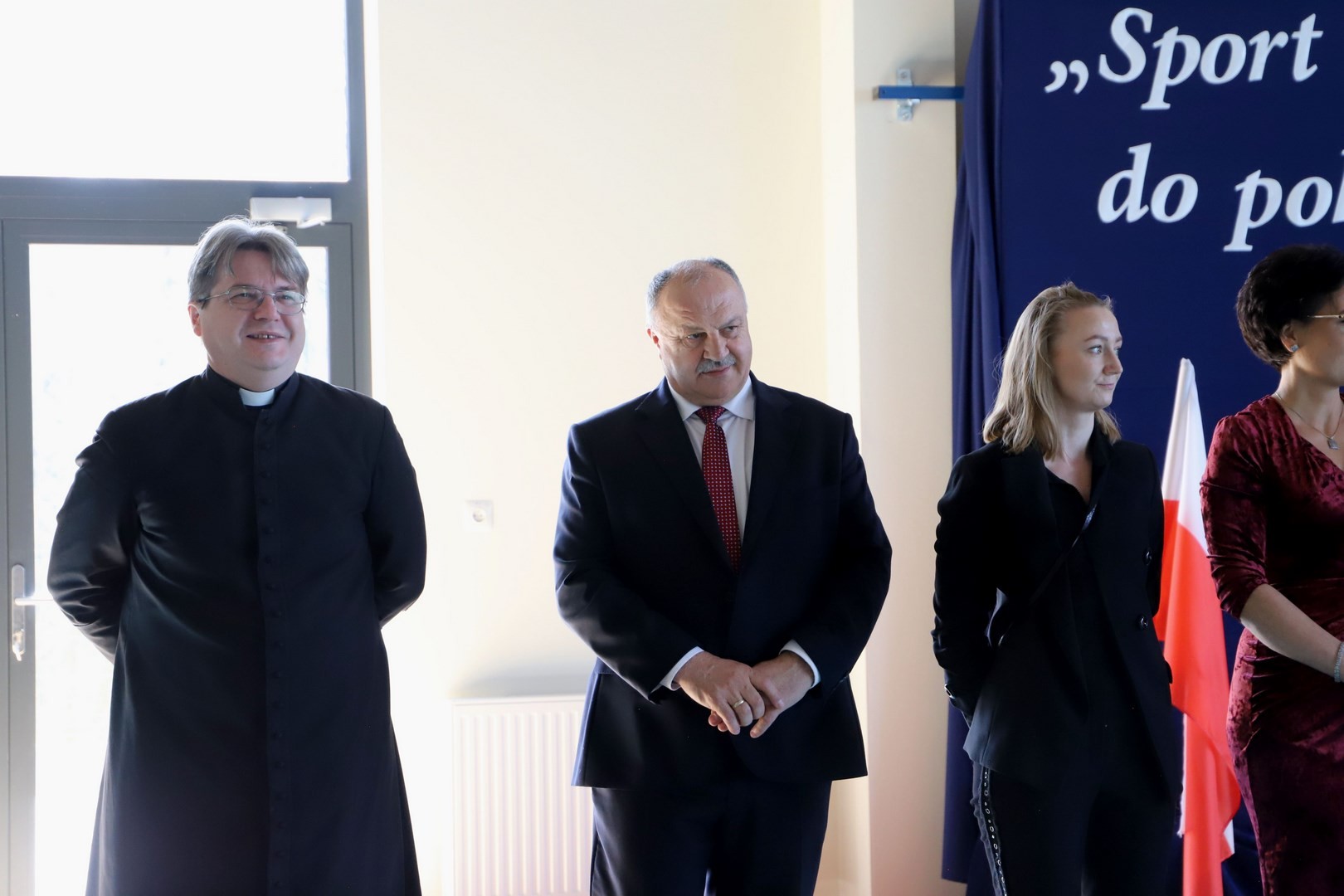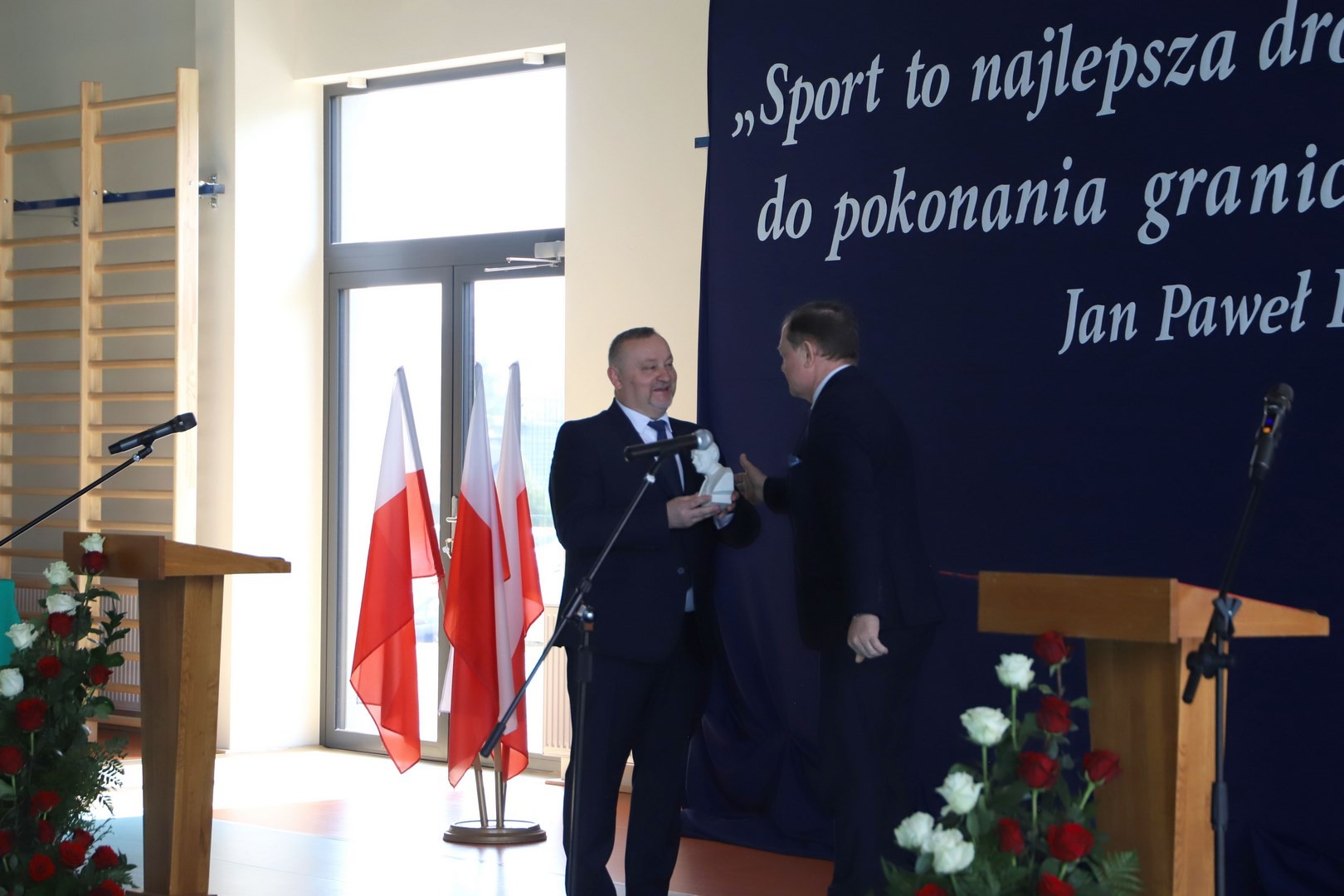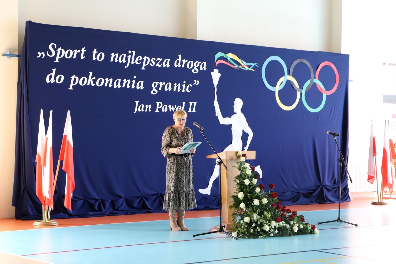 Następnie miało miejsce wprowadzenie pocztu sztandarowego i odśpiewanie hymnu państwowego przy akompaniamencie orkiestry. Stanowiło to preludium do kolejnego punktu uroczystości, jakim było symboliczne przecięcie wstęgi na znak oficjalnego oddania nowo wybudowanego obiektu do użytku publicznego. Ceremonia ta dopełniona została poprzez akt poświęcenia, którego dokonał ks. proboszcz Witold Machalski. W dalszej części programu imprezy głos zabrał Dyrektor Grzegorz Krzak, prezentując pokrótce historię zamysłu, planowania oraz powstawania inwestycji. Wyraził również nadzieję, że być może na tym obiekcie swoje pierwsze kroki będą stawiać przyszłe gwiazdy sportu, aby później odnosić sukcesy na arenie krajowej i międzynarodowej.