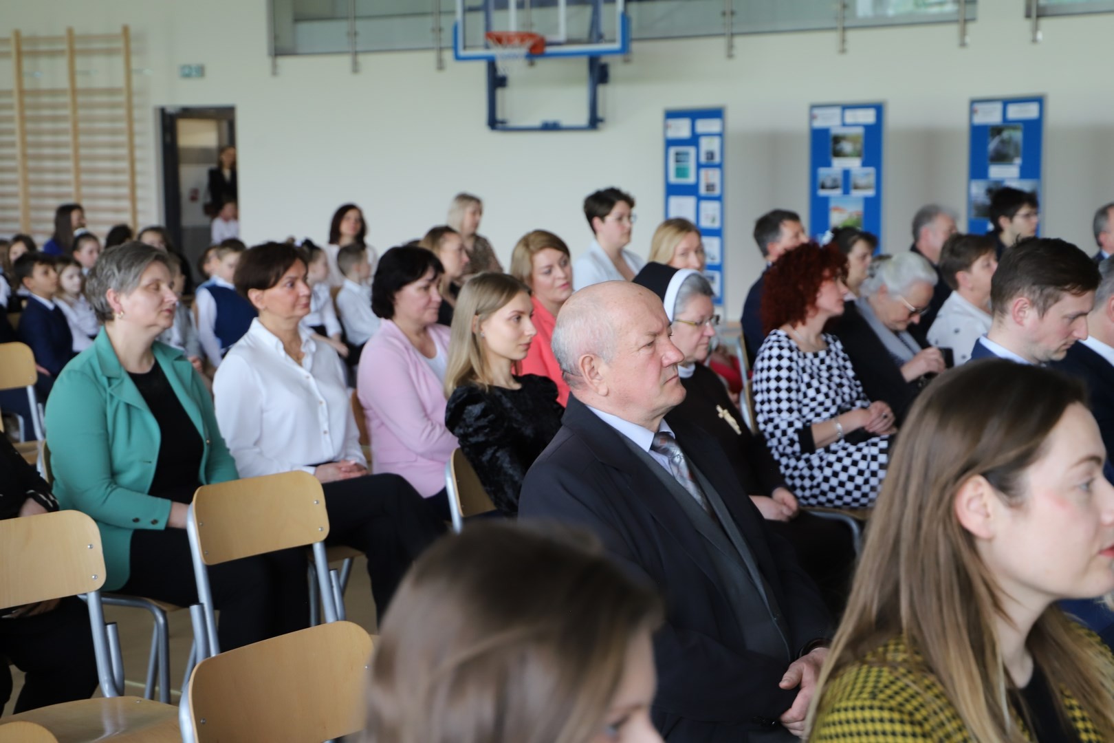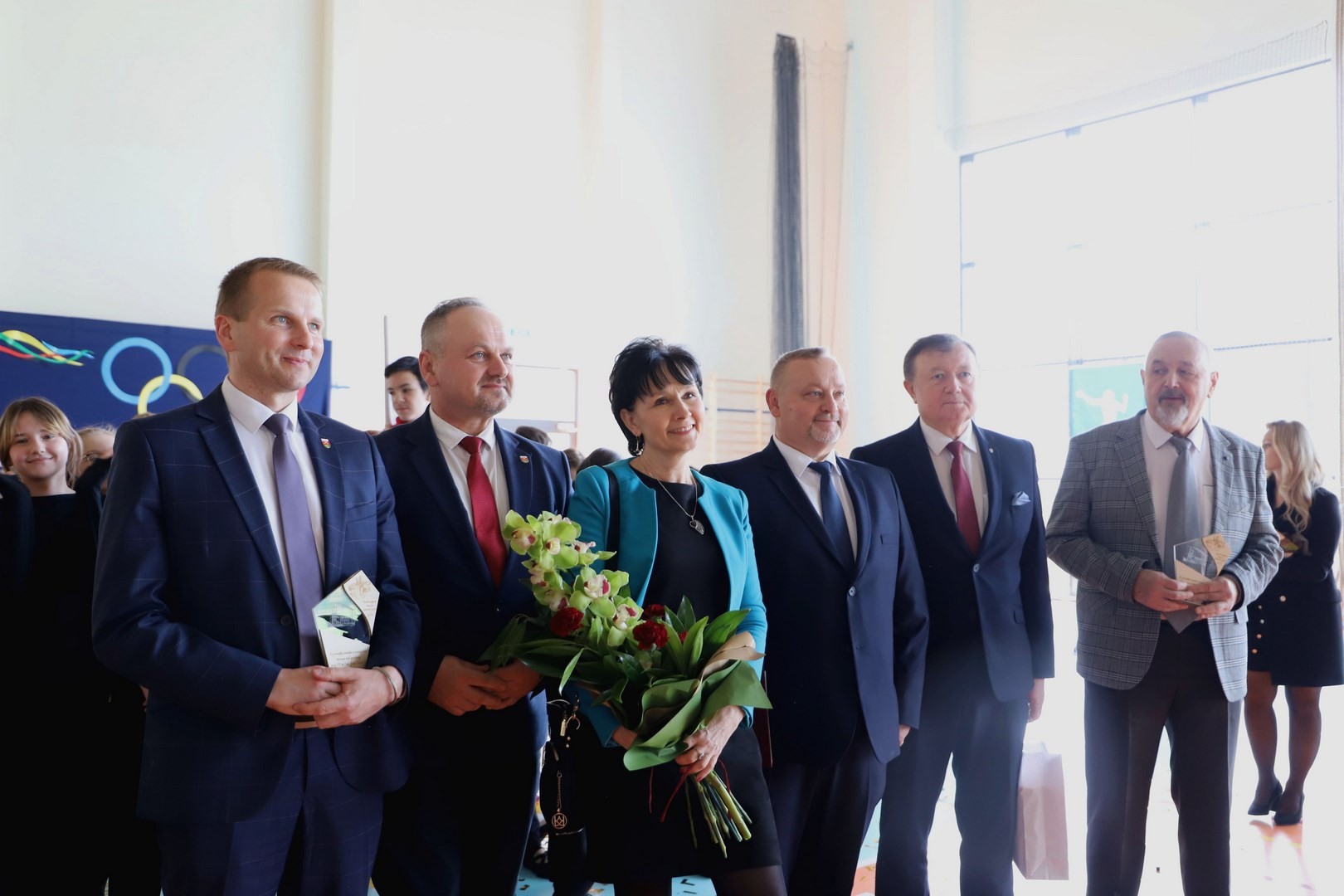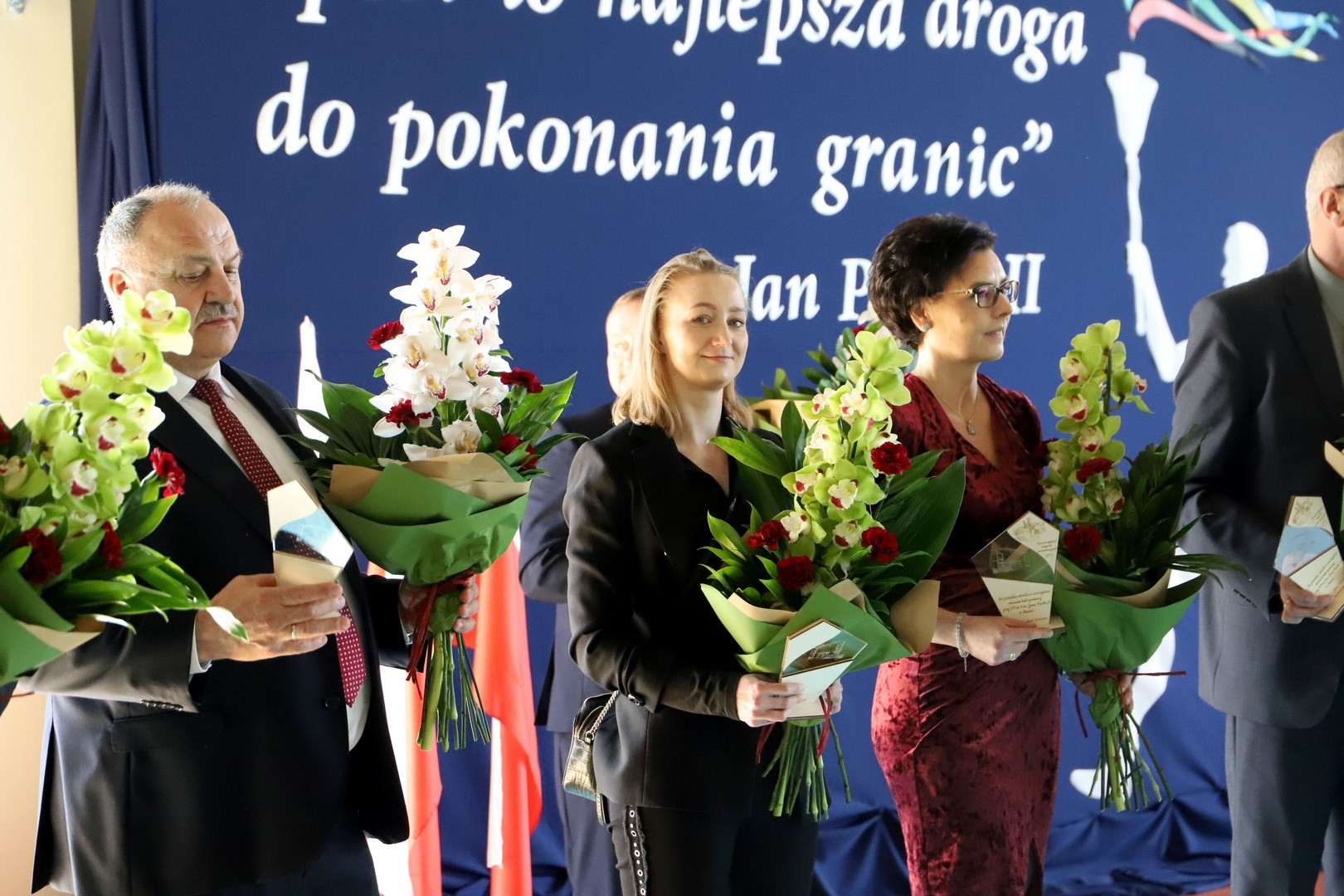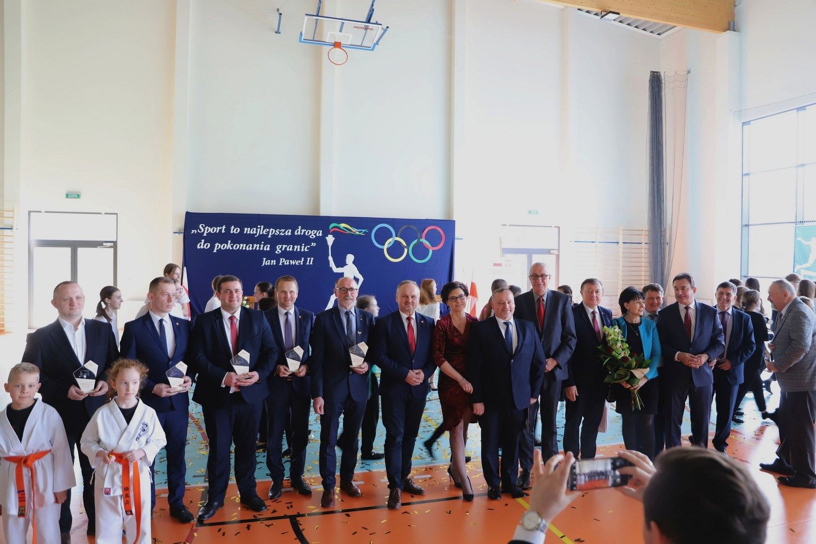 Zwieńczeniem uroczystości były podziękowania, wręczenie kwiatów oraz pamiątkowych statuetek zaproszonym gościom. Na scenie pojawili się również wszyscy uczniowie, biorący udział w występie artystycznym, którzy przy dźwiękach fanfar i wśród wirujących płatków confetti wydali triumfalny okrzyk, po czym na widowni rozbrzmiały gromkie brawa.