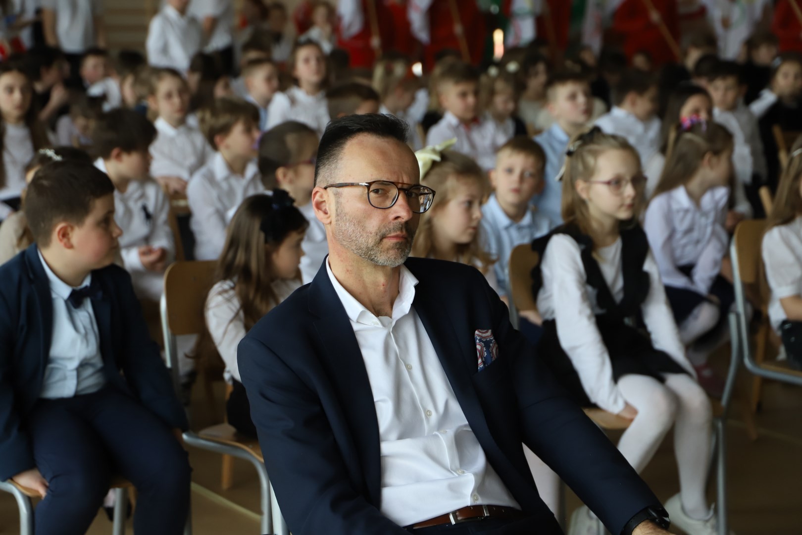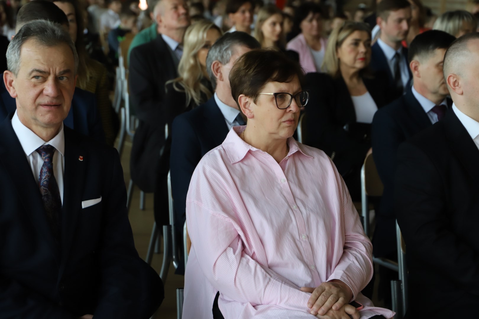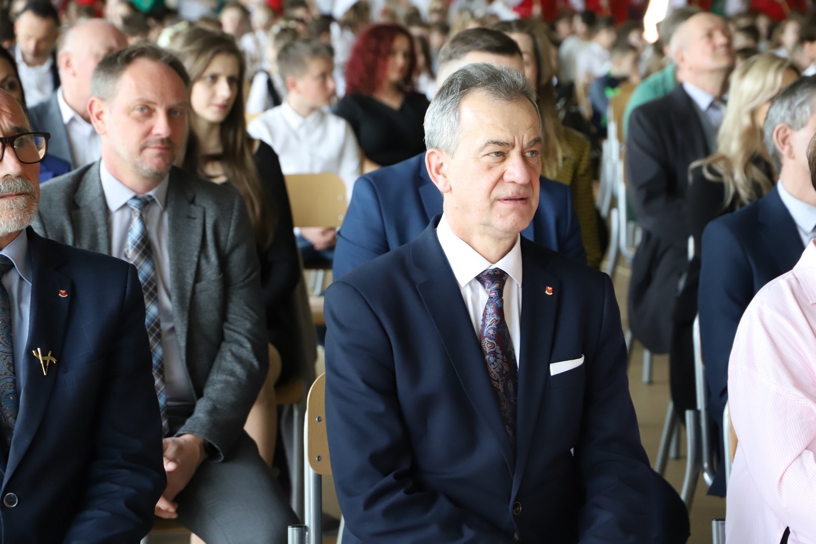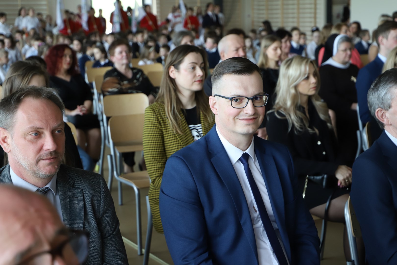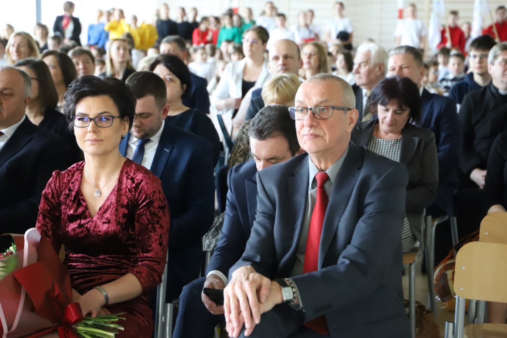 Uroczystość zainaugurował Dyrektor Grzegorz Krzak, który powitał przybyłych gości w osobach: Wójta Gminy Limanowa Jana Skrzekuta, Ministra Wiesława Janczyka, przedstawiciela Kuratorium Oświaty Adama Skwarły, Starosty Powiatu Limanowskiego Mieczysława Urygi, członka zarządu Powiatu Limanowskiego Wojciecha Włodarczyka, zastępcy Państwowego Powiatowego Inspektora Sanitarnego Renaty Krzysztof, Wójtów Gminy Laskowa Piotra Stacha i Gminy Niedźwiedź Rafała Rusnaka, radnych Gminy Limanowa na czele z przewodniczącym Stanisławem Młyńskim. Swoją obecnością zaszczycili nas również radni pochodzący z Męciny Jerzy Jabłoński i Rafał Woźniak, proboszcz parafii Męcina ksiądz Witold Machalski, wicewójt Gminy Limanowa Wojciech Pazdan, Dyrektor Zespołu Obsługi Szkół Edyta Król, kierownik Wydziału Gospodarki Komunalnej, Mieszkaniowej i Komunikacji Adam Górszczyk, kierownik Wydziału Inwestycji Stanisław Piegza, kierownik Wydziału Kultury i Promocji Wojciech Korabik,