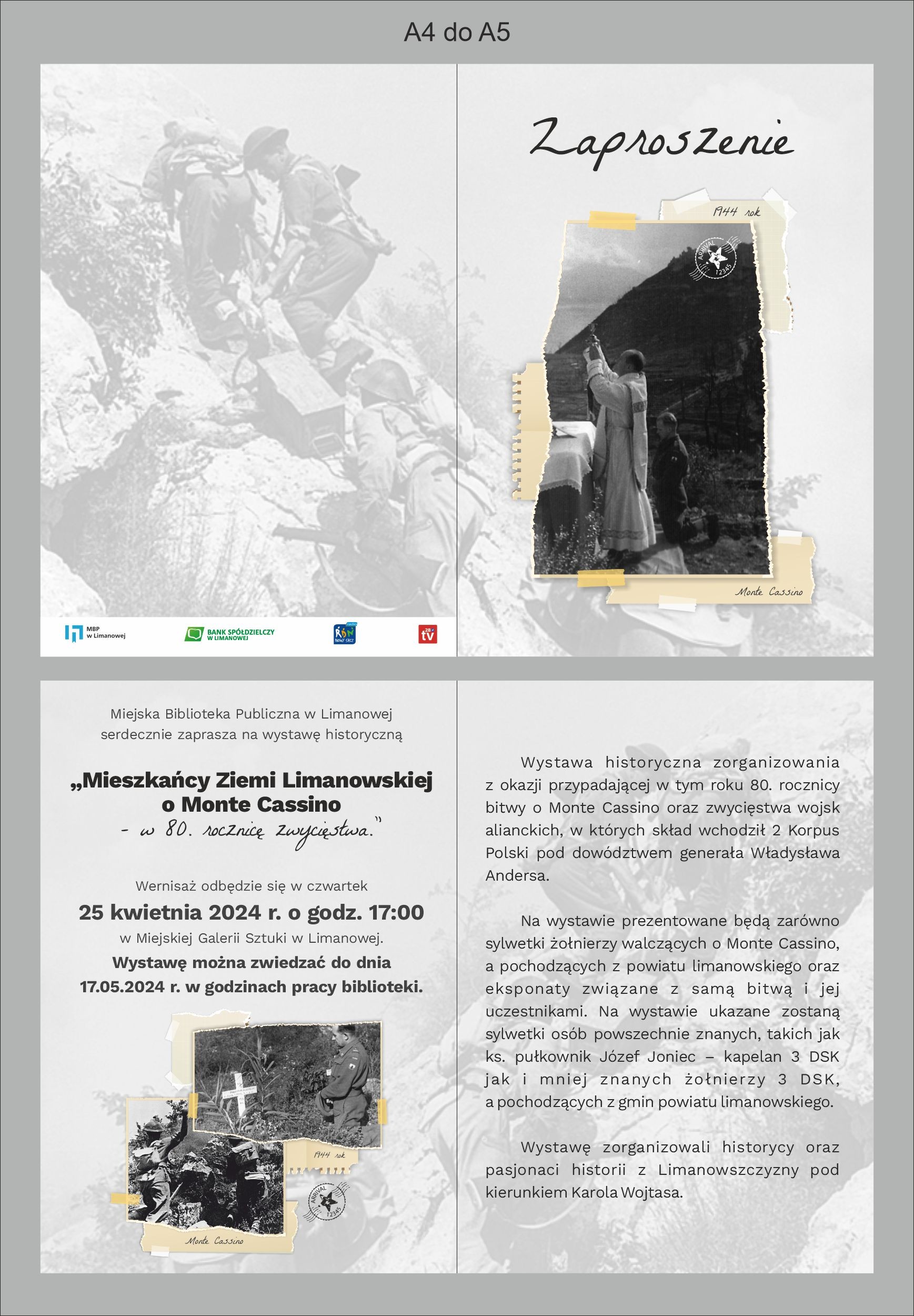 Miejska Biblioteka Publiczna zaprasza na wystawę Mieszkańcy Ziemi Limanowskiej o Monte Cassino