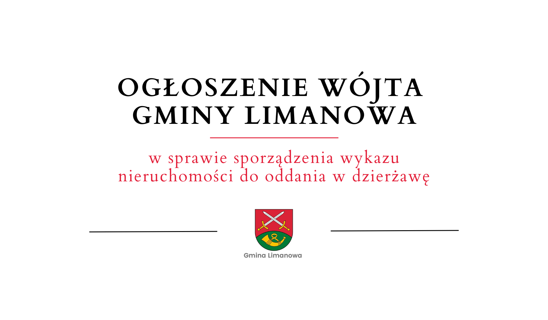 - Minimalną stawkę za 1 m2 wydzierżawianej powierzchni określa zarządzenie nr 8/2024 Wójta Gminy Limanowa z dnia 17.01.2024 r. w sprawie określenia wysokości minimalnych stawek czynszu za dzierżawę i wynajem nieruchomości stanowiących własność Gminy Limanowa po ich zwaloryzowaniu.