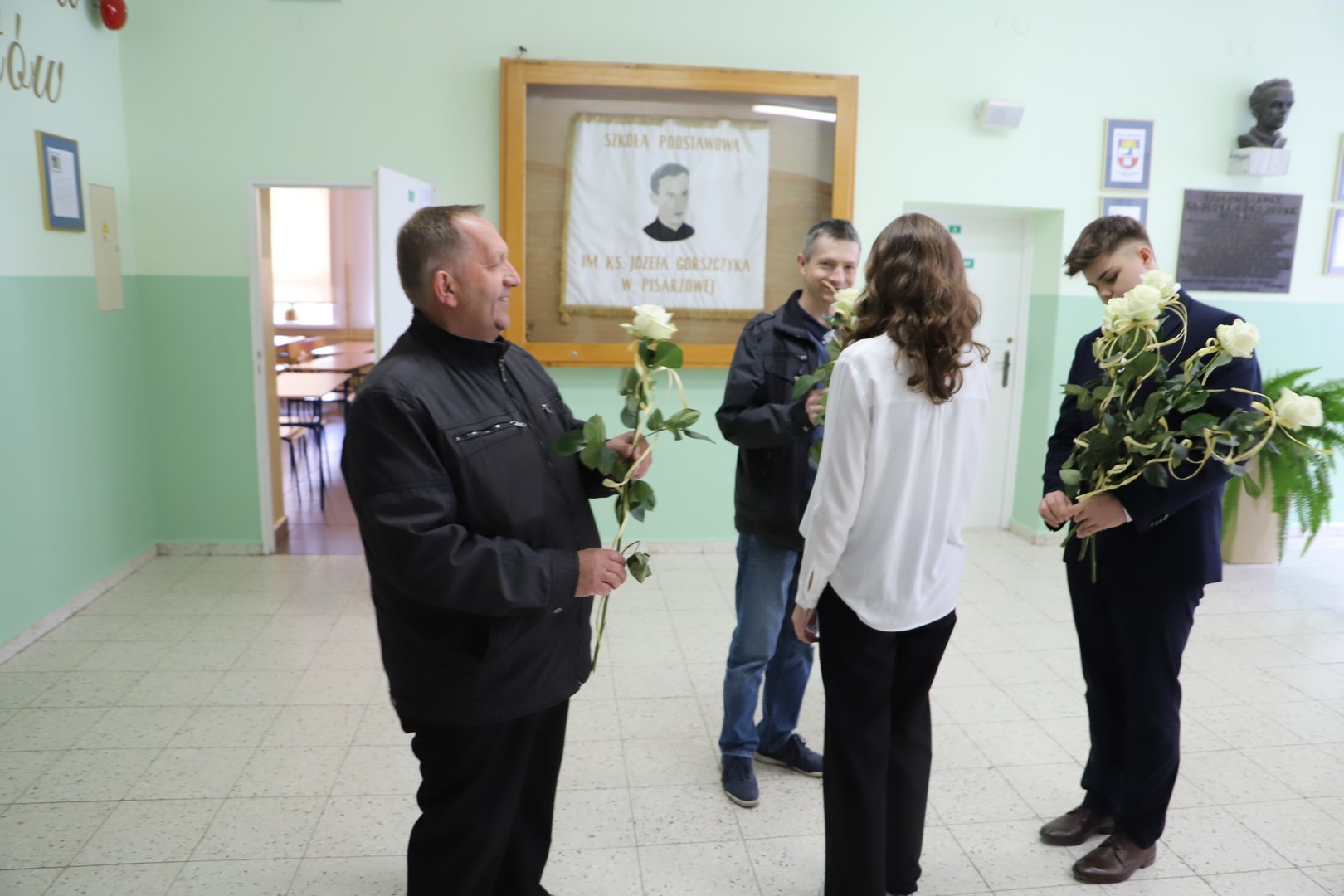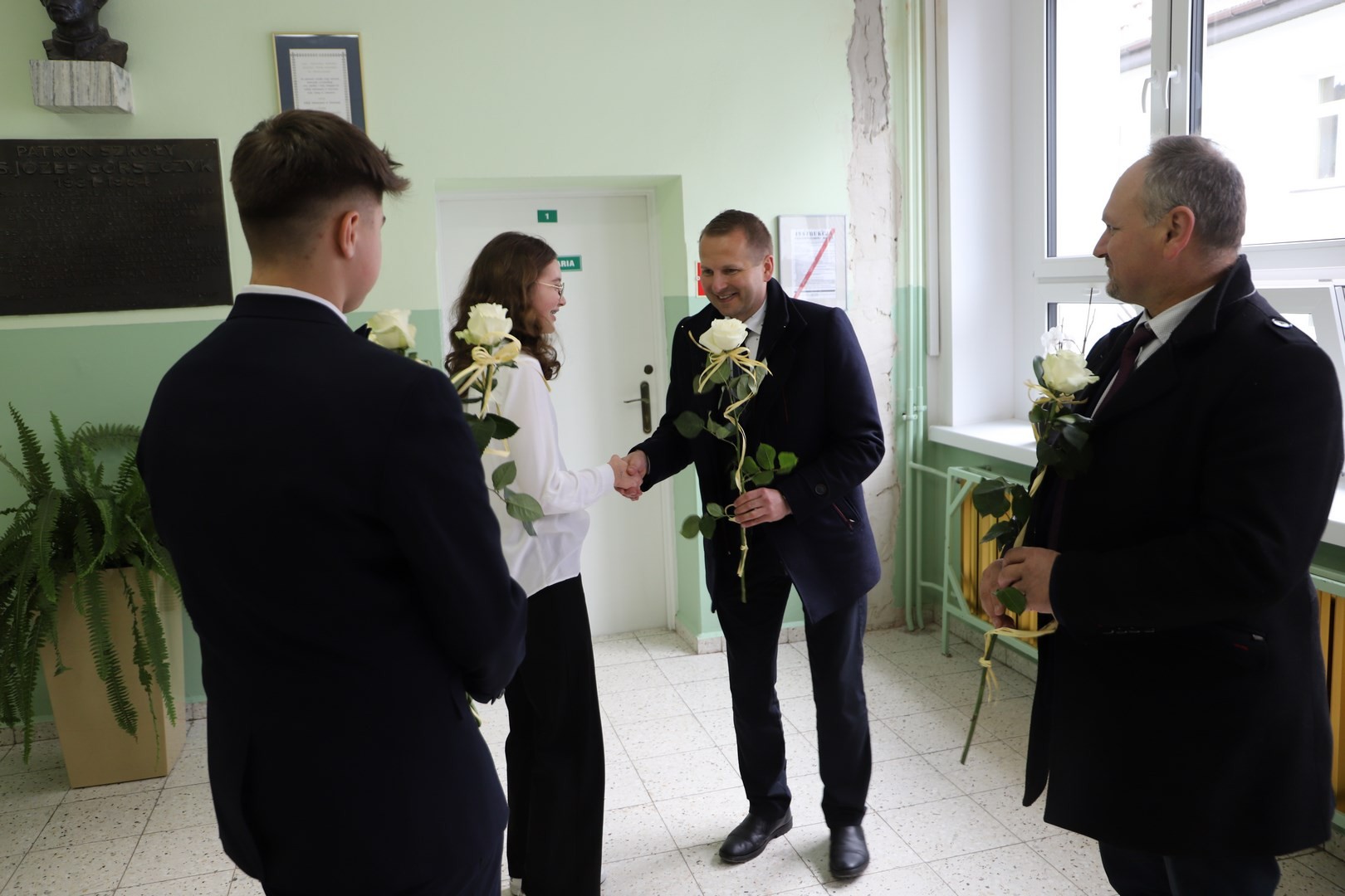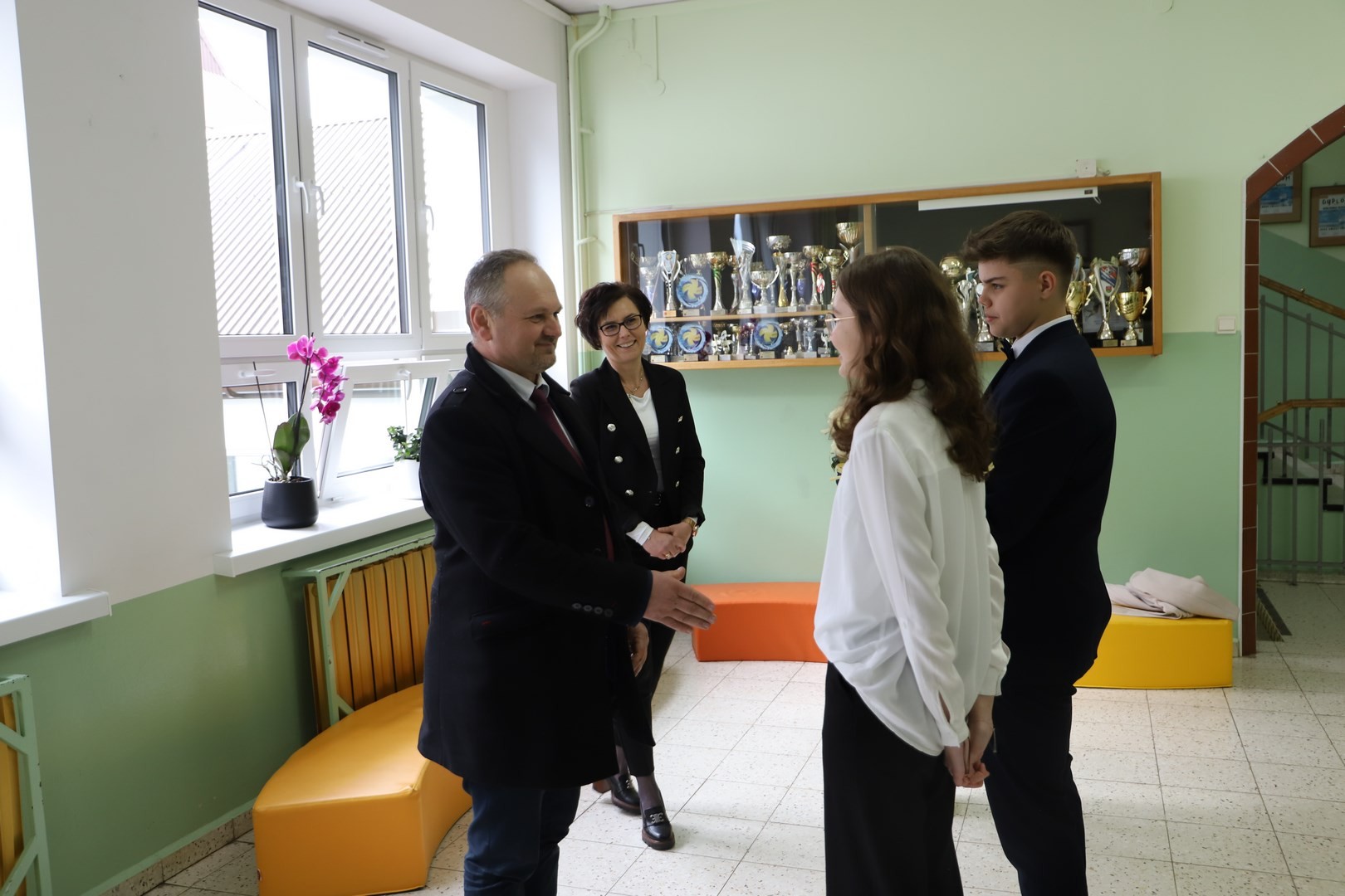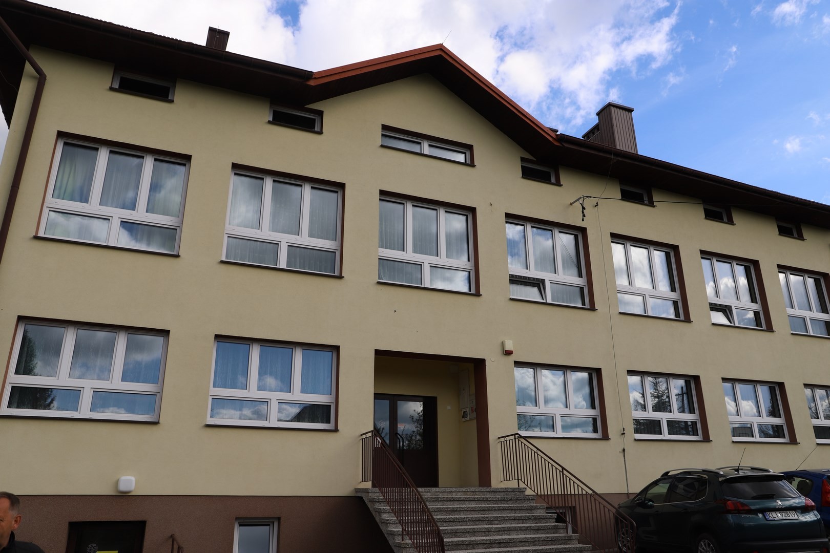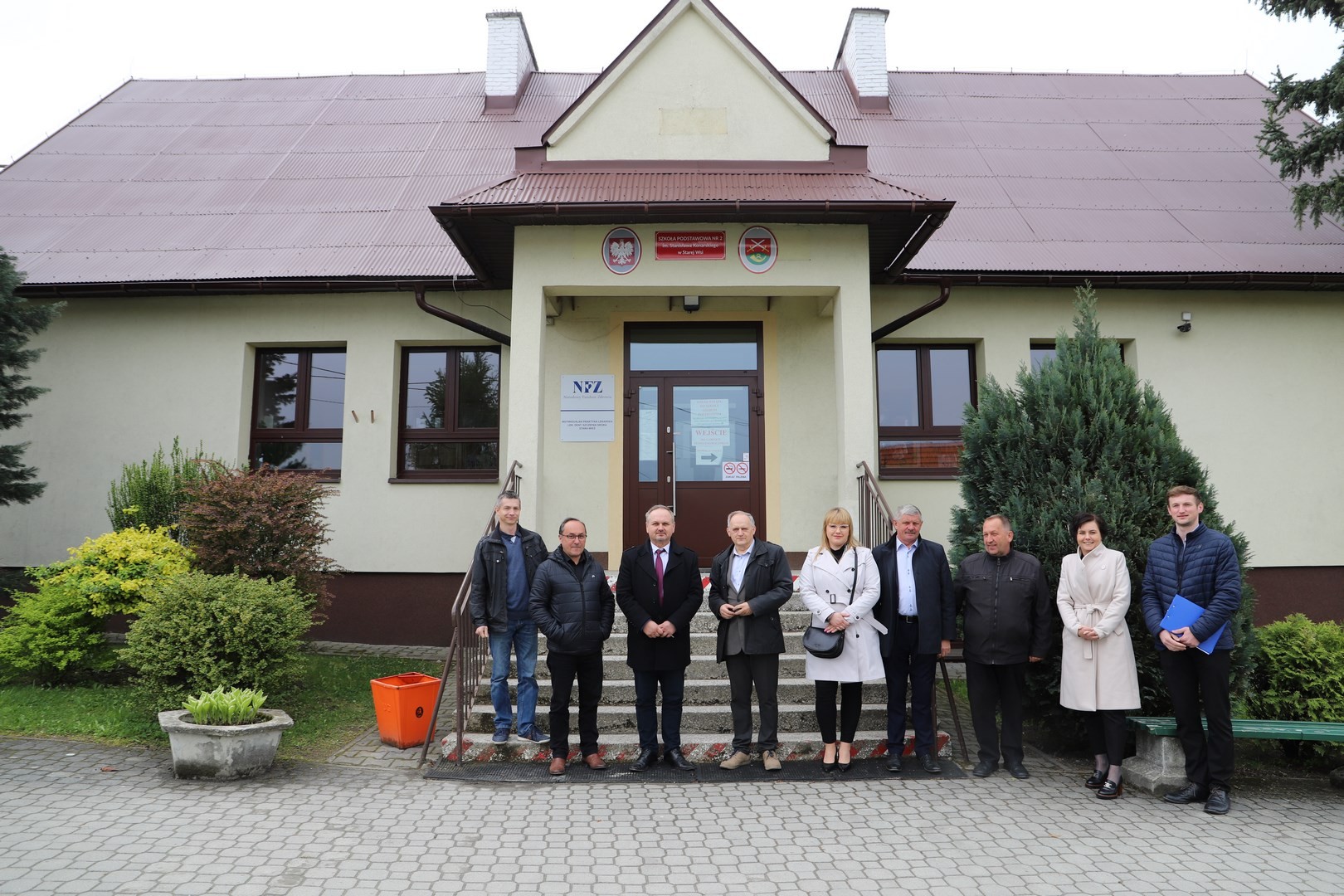 Druga część odbiorów dotyczyła zadania obejmującego swoim zakresem wymianę zewnętrznej stolarki okiennej i drzwiowej w następujących szkołach: Szkole Podstawowej Nr 2 im. Stanisława Konarskiego w Starej Wsi, Szkole Podstawowej im. Stanisława Wyspiańskiego w Mordarce, Szkole Podstawowej Nr 1 im. Jana Pawła II w Męcinie, Szkole Podstawowej im. Stanisława Wyspiańskiego w Rupniowie, Szkole Podstawowej Nr 1 im. Tadeusza Kościuszki w Siekierczynie, Szkole Podstawowej im. Juliana Tuwima w Kaninie, Szkole Podstawowej im. Marii Konopnickiej w Nowym Rybiu, Szkole Podstawowej im. Królowej Korony Polskiej w Kłodnem oraz wykonanie termoizolacji ścian zewnętrznych wraz z elewacją, obicia podsufitki, obłożenie schodów wejściowych granitem, wymianie zewnętrznej stolarki okiennej i drzwiowej w Szkole Podstawowej im. ks. Józefa Górszczyka w Pisarzowej.