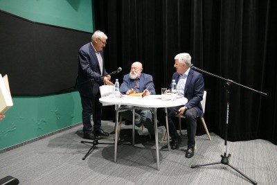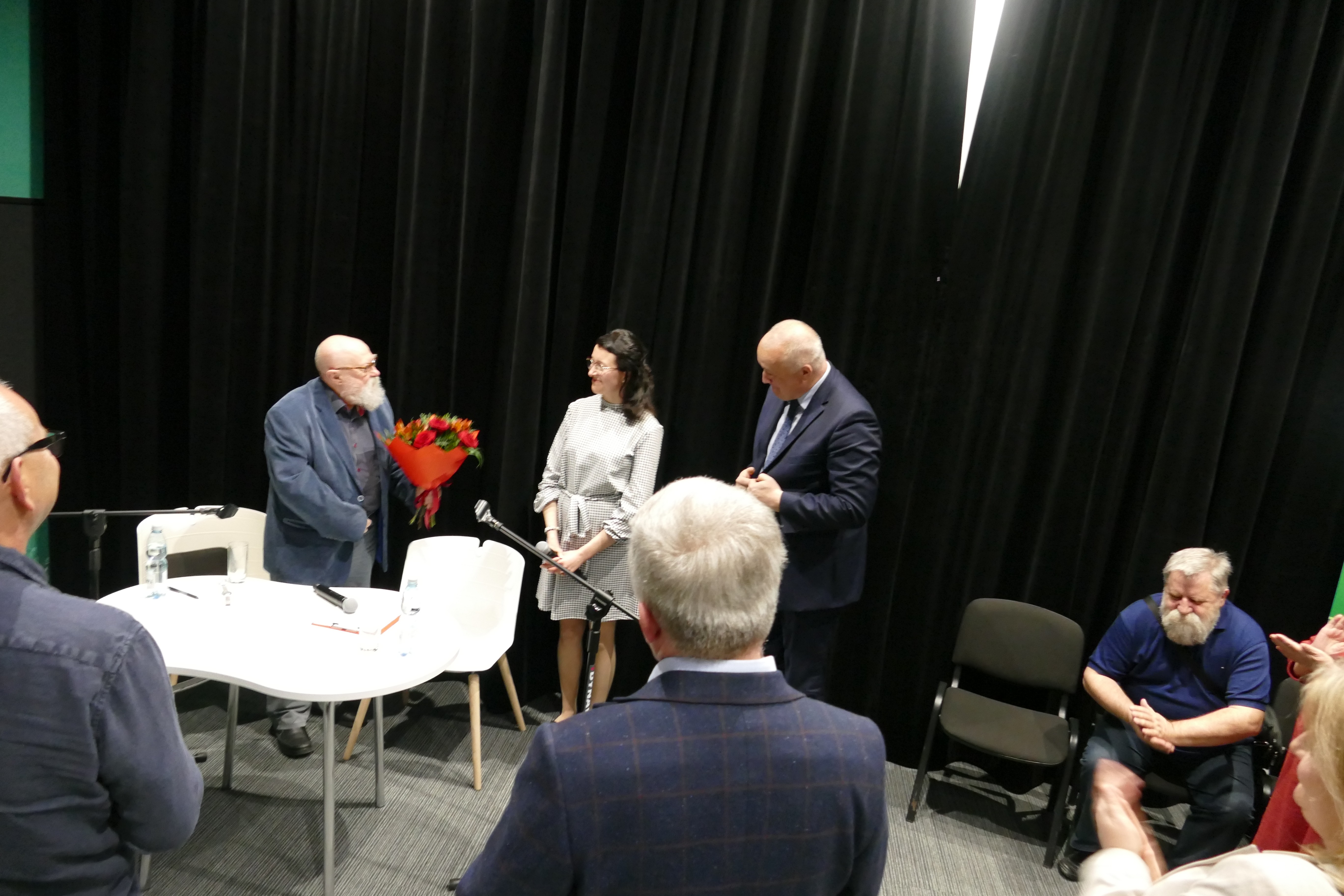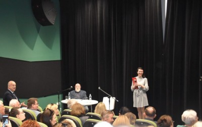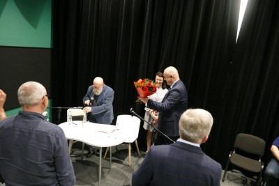 Jerzy Bralczyk to postać z niesłychaną erudycją, rozkładał na czynniki pierwsze wszelkie zawiłości języka polskiego. Typowe dla niego poczucie humoru i dystans do siebie wywoływało raz po raz salwy śmiechu z widowni. Rozmawialiśmy „O języku i nie tylko". Profesor zaczął „od nie tylko", by następnie rozwinąć w pełni swoją wypowiedź na właściwy temat czyli języka właśnie. Jak sam mówi, mówić lubi i sprawia mu to dużą przyjemność. Śmiało można jednak stwierdzić, że publiczność, która wypełniła po brzegi salę kameralną z tego wystąpienia czerpała jeszcze większą przyjemność. Profesora słucha się nadzwyczaj dobrze. Już po pierwszych słowach wypowiedzi wiadomo było, że słuchaczy czeka fascynująca przygoda ze specjalistą w swojej dziedzinie.Na zakończenie, po dyskusji i pytaniach z widowni, Pan Prezes Zarządu Banku Spółdzielczego – Marcin Kozdroń podziękował w imieniu Organizatorów Jerzemu Bralczykowi za przyjęcie zaproszenia i pełne wrażeń spotkanie, wokół języka ojczystego i nie tylko.