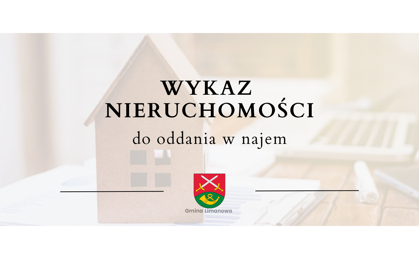 Na podstawie art. 35 ust. 1 i ust. 2 ustawy z dnia 21 sierpnia 1997 r. o gospodarce nieruchomościami (Dz. U. z 2023 r. poz. 344 ze zm.) Wójt Gminy Limanowa podaje do publicznej wiadomości wykaz nieruchomości przeznaczonej do oddania w najem: